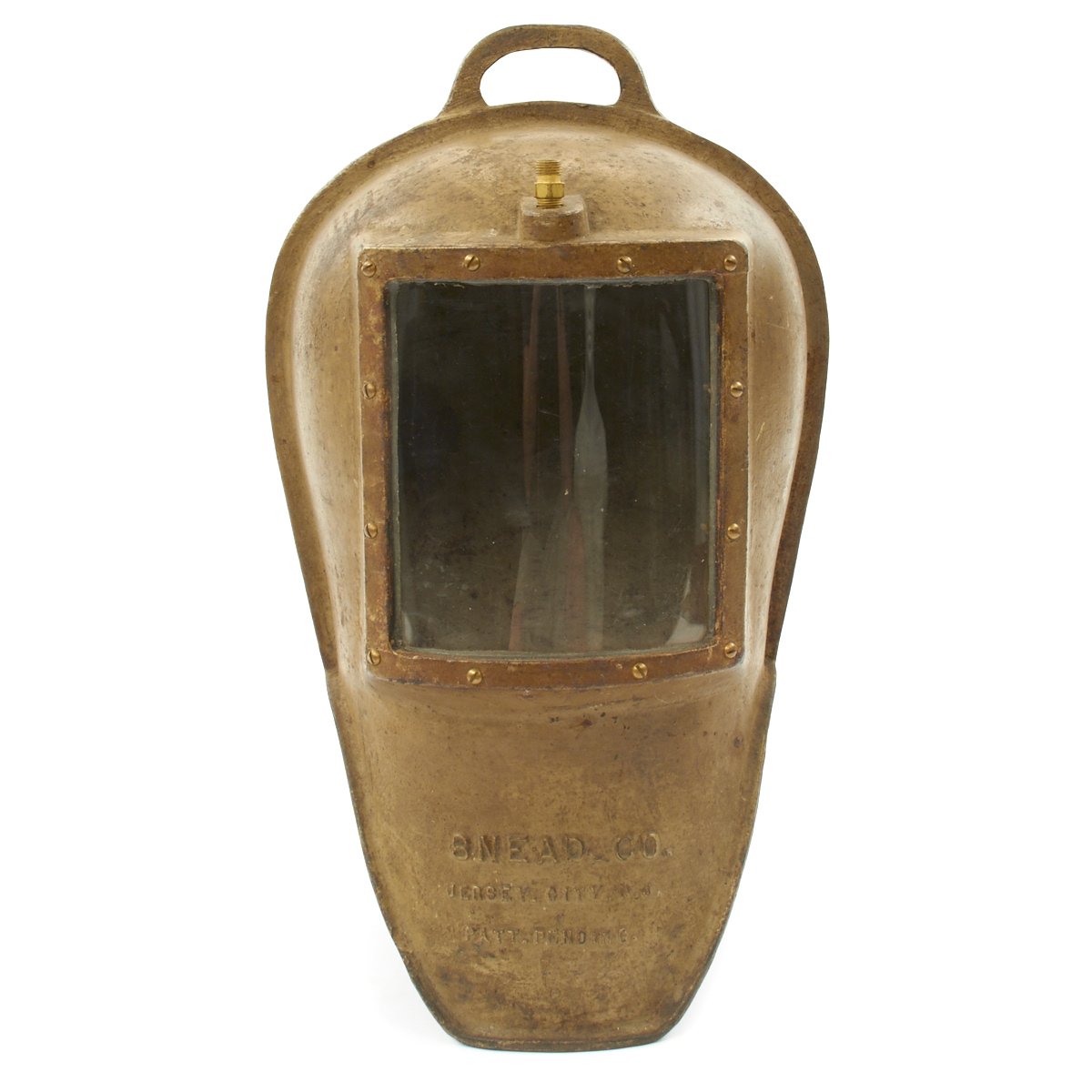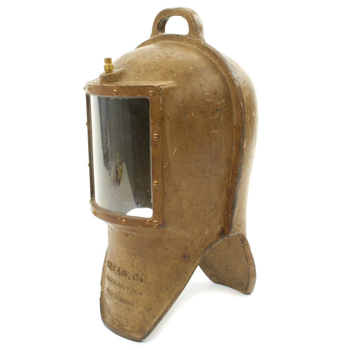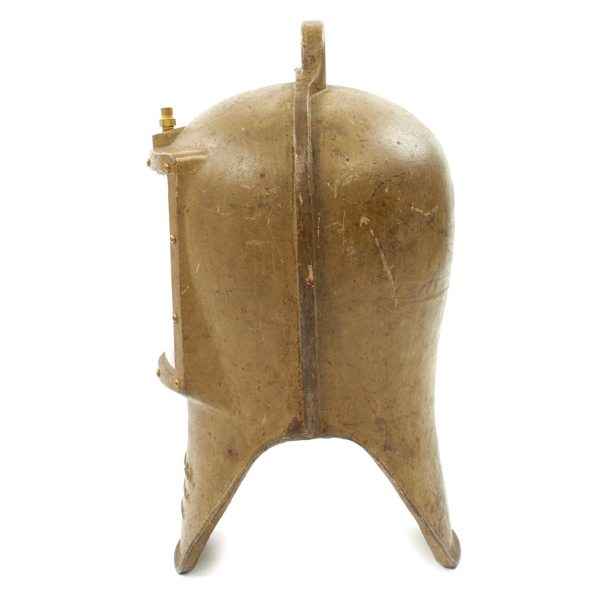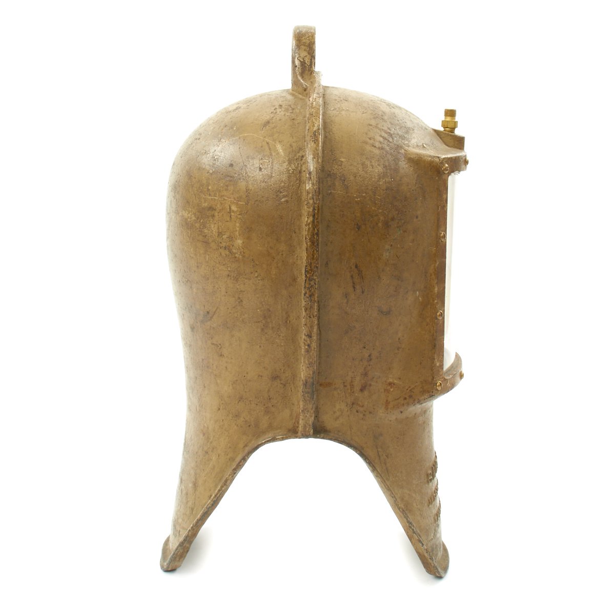 The original 1st Version helmet was cast in two pieces, which were then caulked and bolted together. This had a tendency to leak, so the 2nd version was cast in one piece.