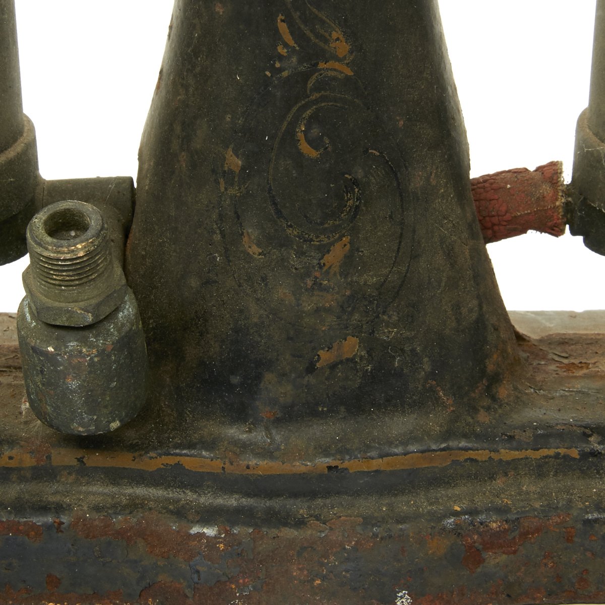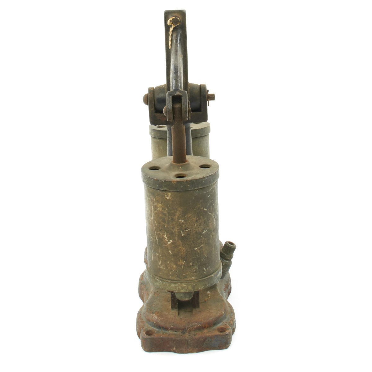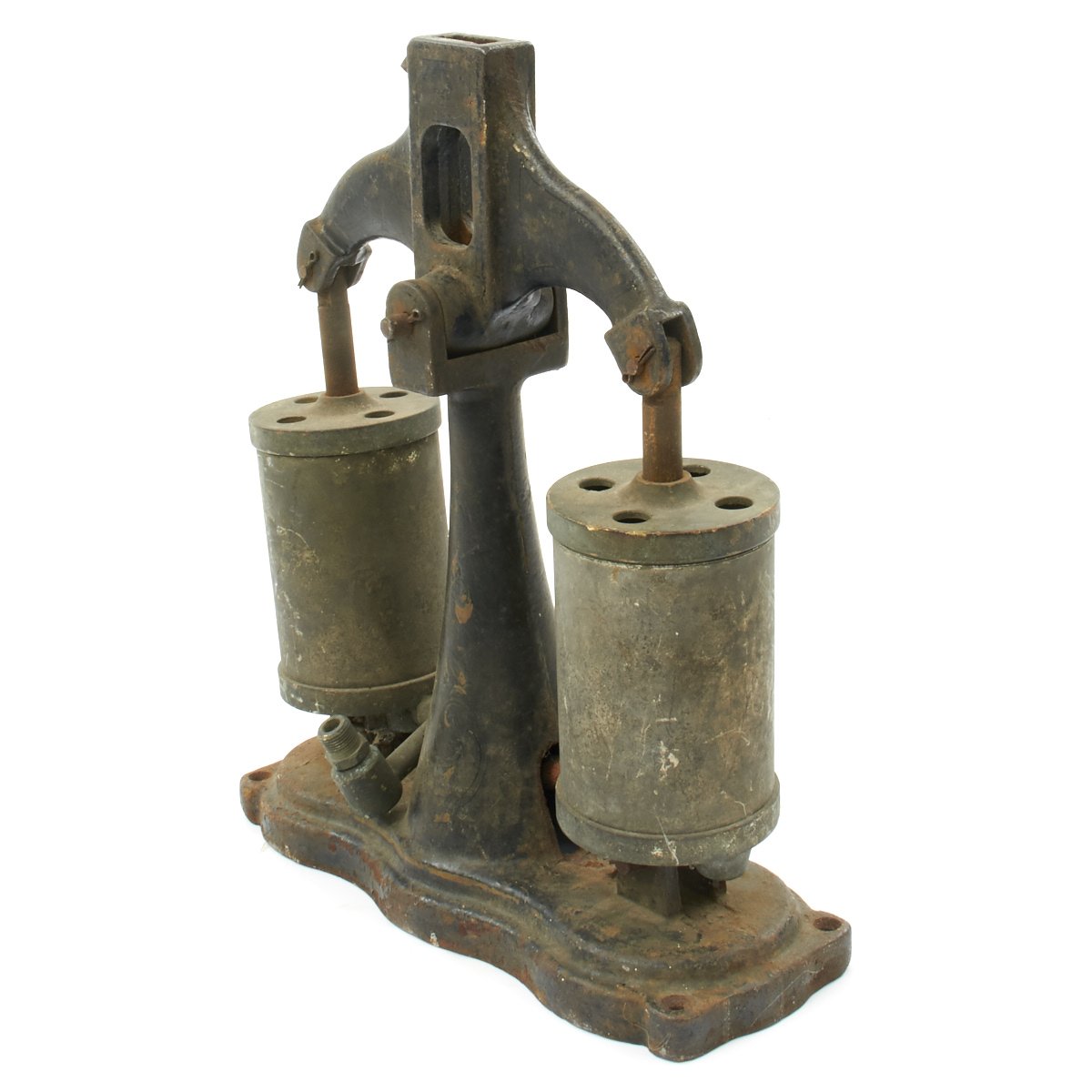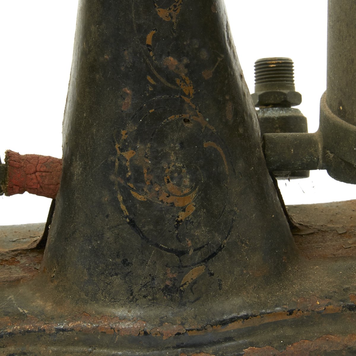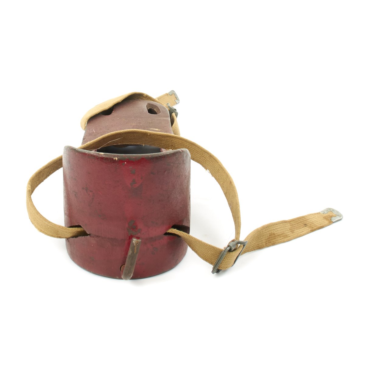 Straight our of storage from a Military Installation, obsolete by WWII this set was perhaps one of the first steps on the ladder to successful under water exploration be it Military or just to find Treasure. Nearly 100 years old technology has come a very long way since then. Ready to display, early Diving Helmet, hand operated bellows/compressor and diving shoes.