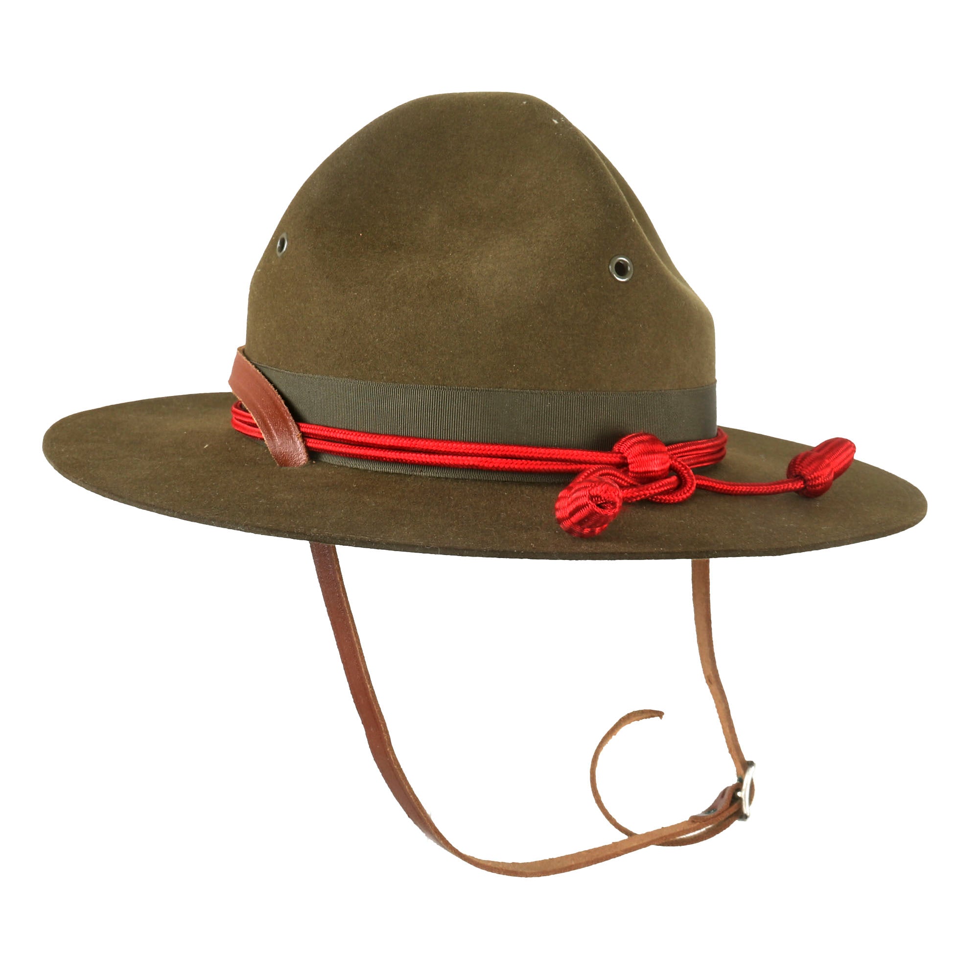 The origins of the hat can be traced to the 1840s when U.S. Army mounted troops posted to the far-west sometimes wore wide-brimmed civilian hats, which were more practical than the regulation shakos and forage caps then issued. The crease was influenced by the designs of the sombreros worn by the Mexican Vaqueros. The name started to be used after the 1872–1876 regulations, which introduced a black felt hat—which could be drab after 1883—for fatigue use derived from the types popularized during the American Civil War. Some were worn with campaign cords, mainly as a form of decoration.