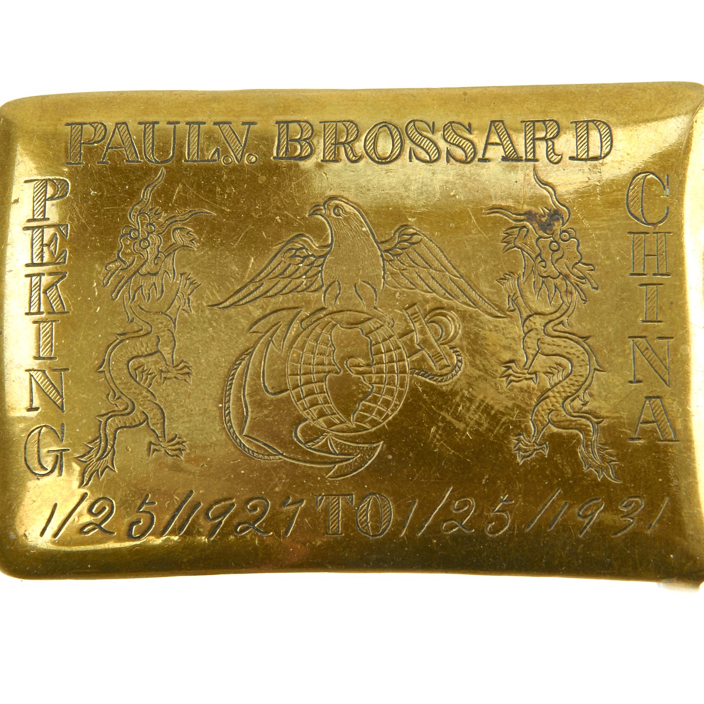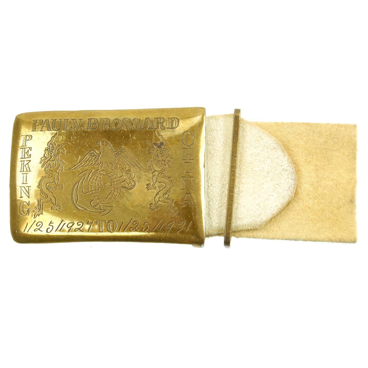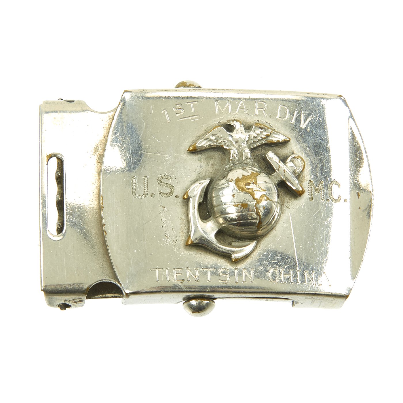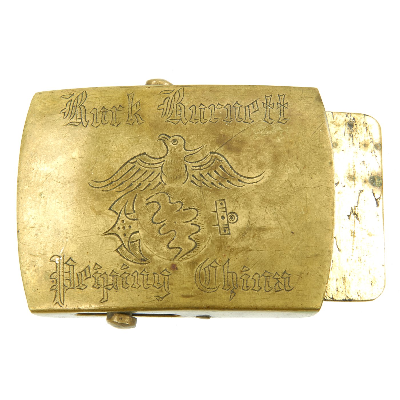 - Silver Belt buckle in high relief with Chinese Dragoons and EGA and U.S.M.C 1947 TSINGTAO CHINA