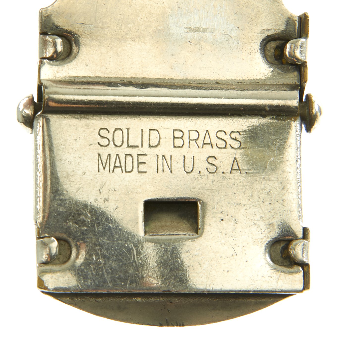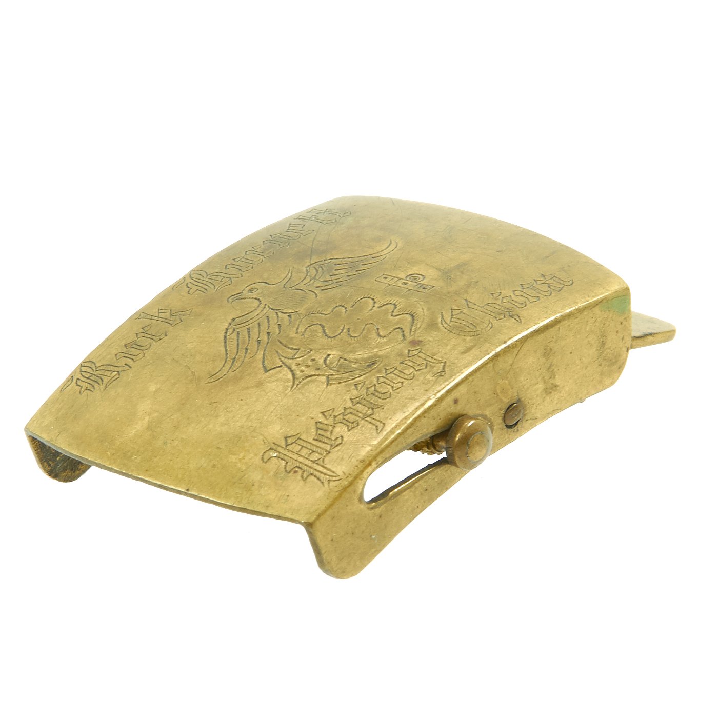 - Brass Belt buckle that is engraved with an EGA and reads: