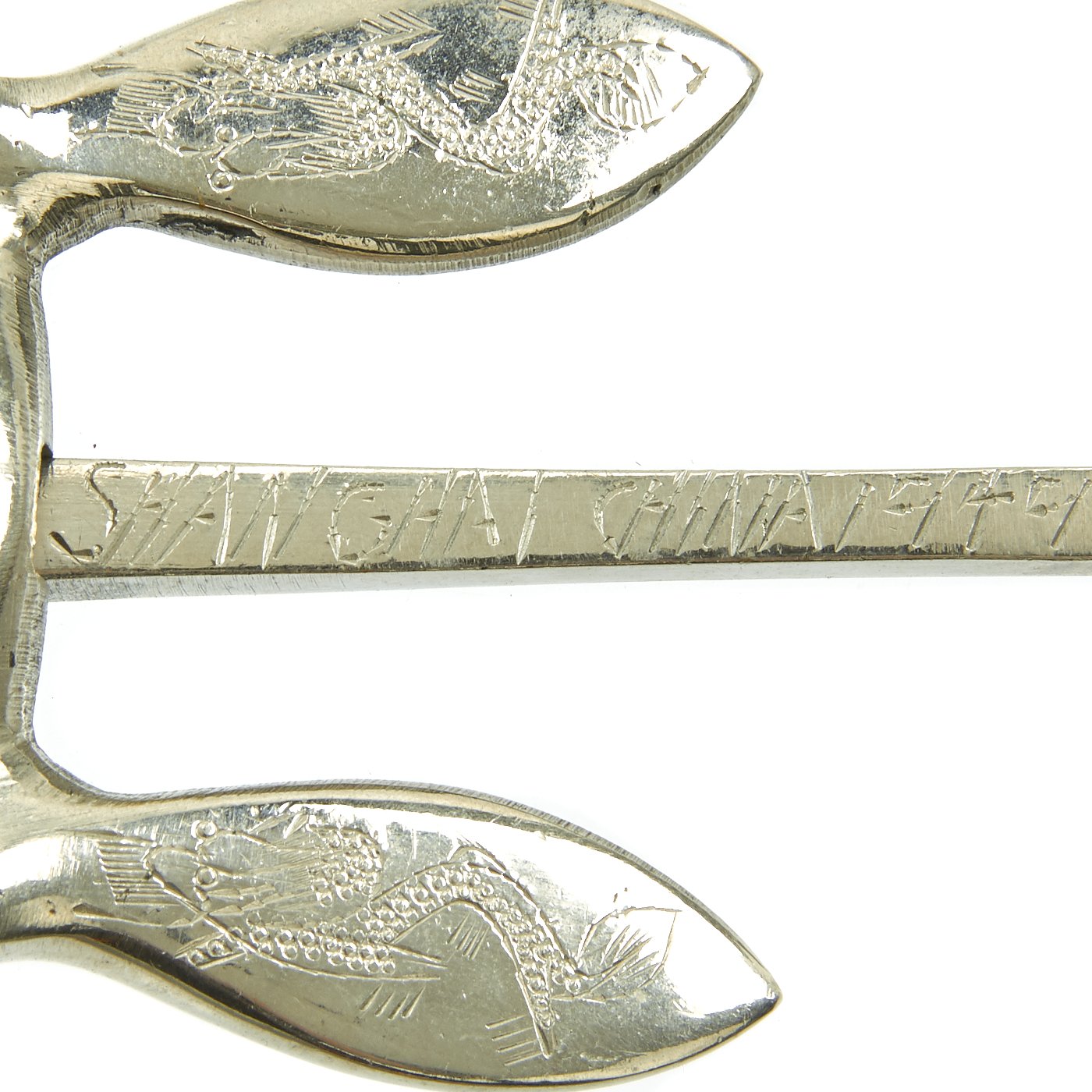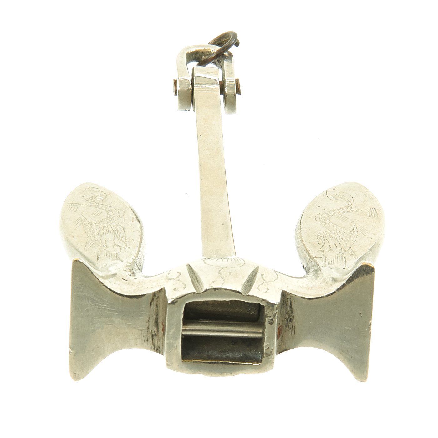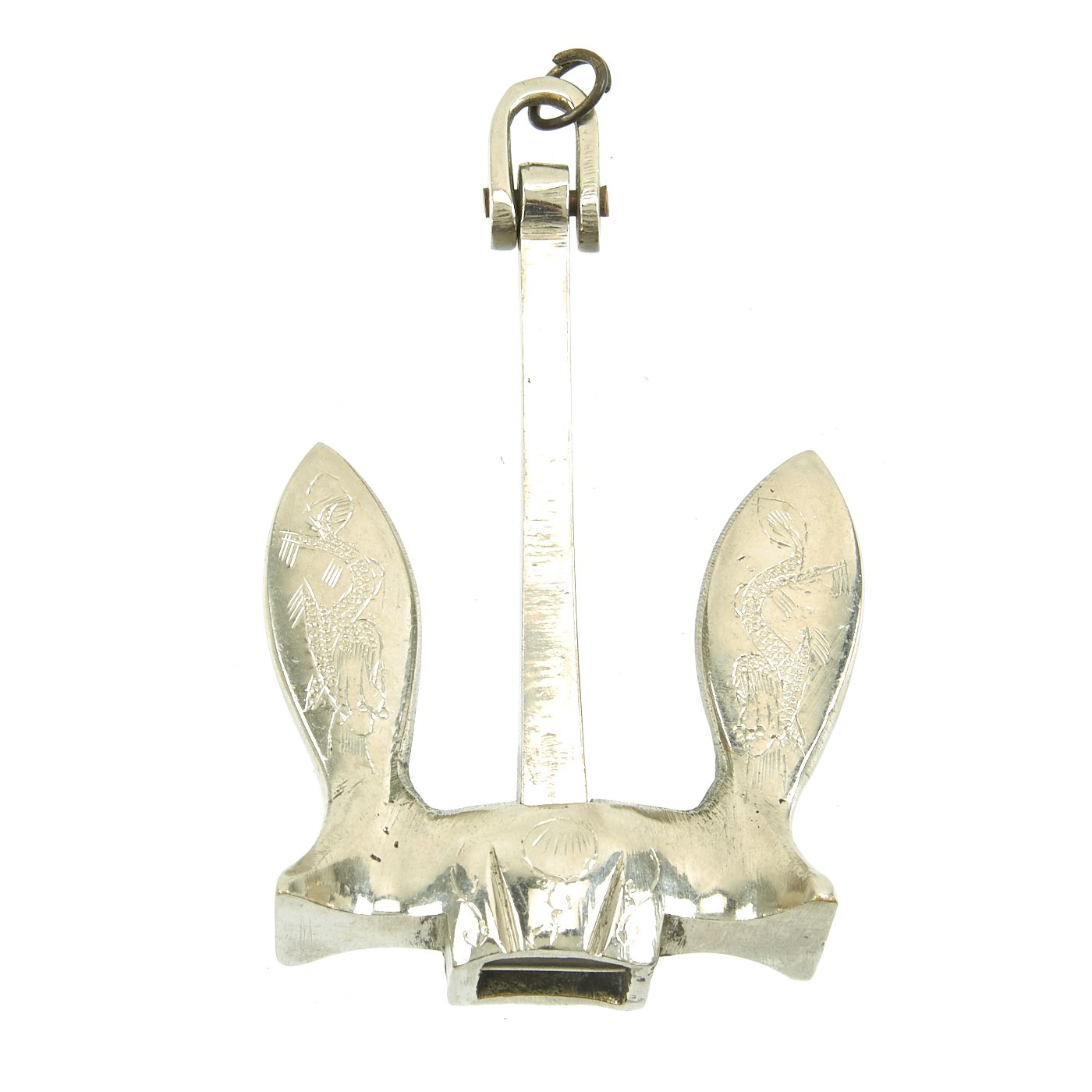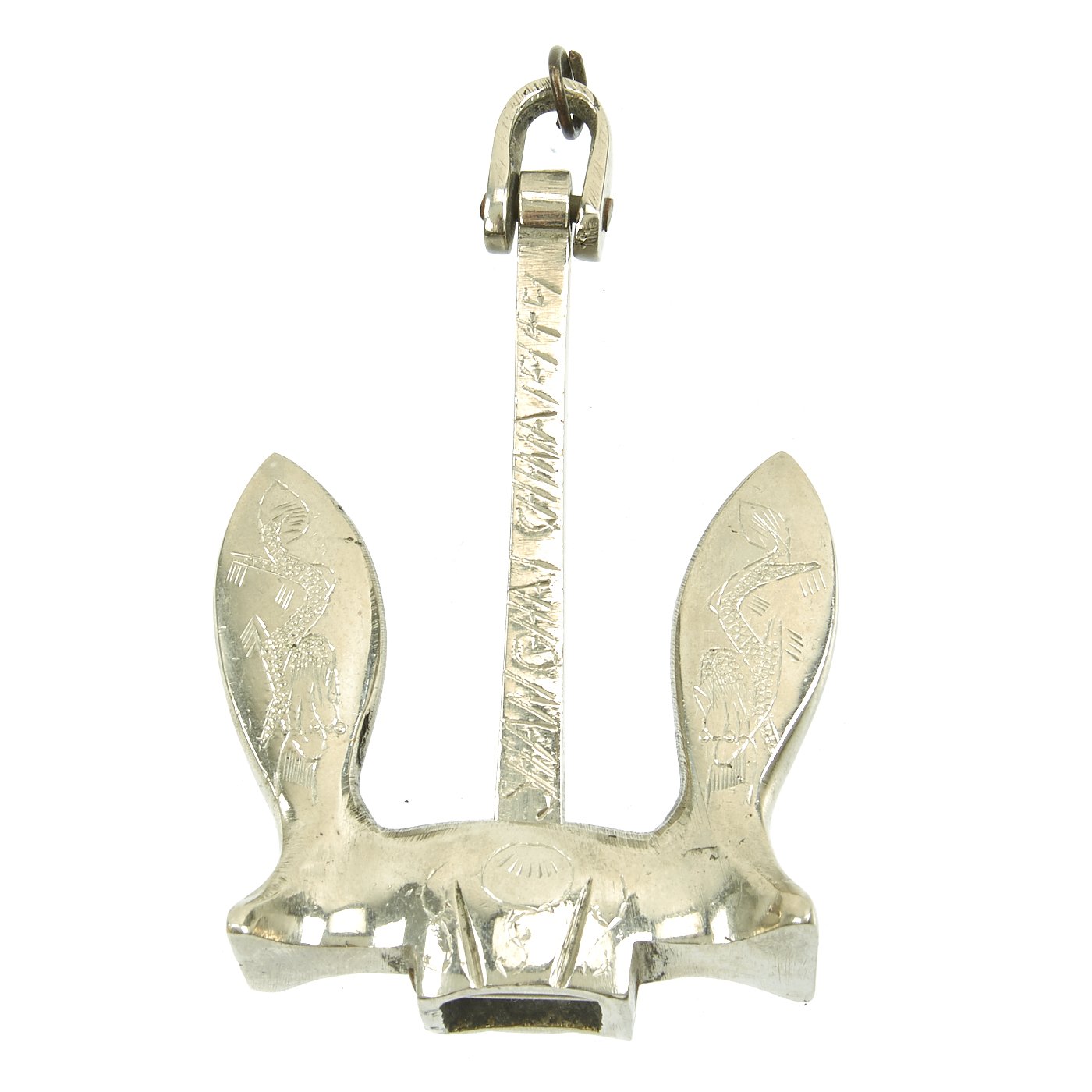 - Polished Steel Anchor paper weight that is engraved with traditional Chinese dragons and engraved SHANGHAI CHINA. Anchor measures 4" x 3".