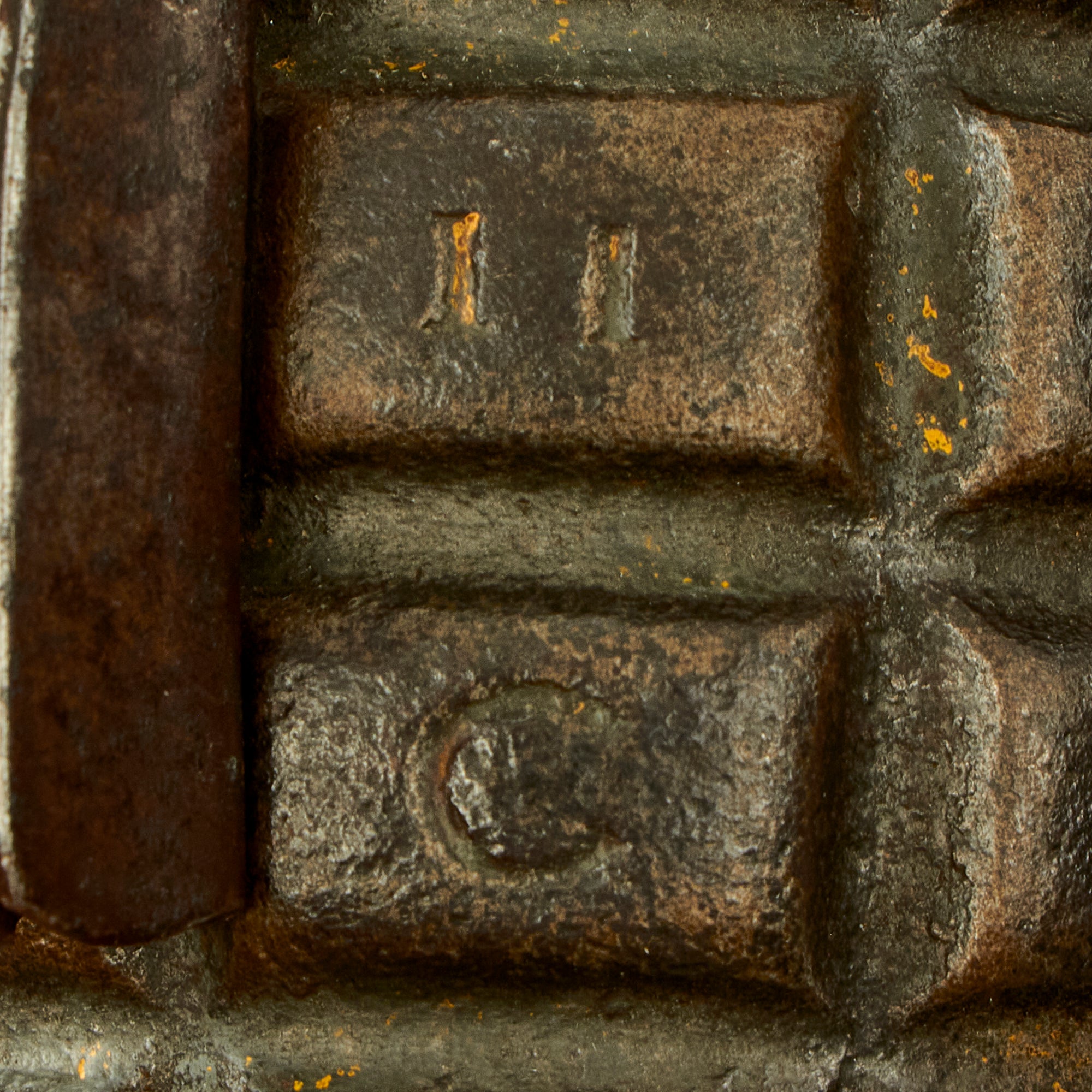 This is an iconic U.S. fragmentation pineapple grenade issued during WWII. The Mk II was standardized in 1920 replacing the Mk I of 1917. It was phased out gradually, the U.S. Navy being the last users, on 2 April 1945 the Mk II and Mk IIA1 were re-designated the Mk 2 and Mk 2A1.