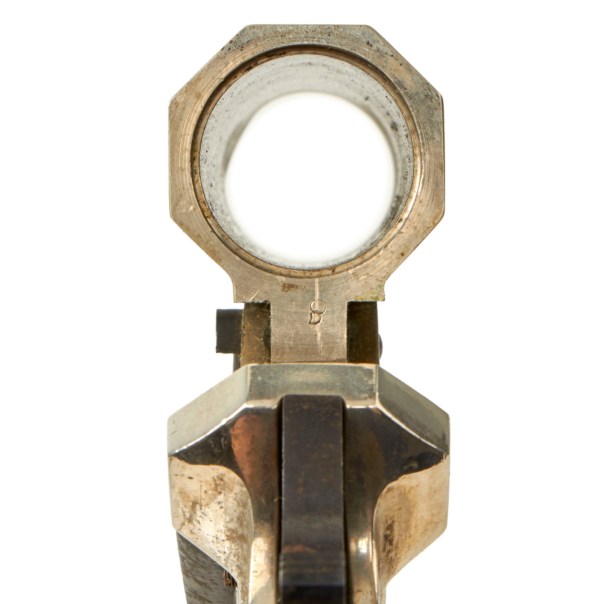 There are also U.S. Army Ordnance Dept. "Flaming Bomb" marks on the breech face of the frame, and on the end of the barrel by the latch. We believe this means it was Arsenal enlarged from the original 25mm to the more standard 26.5mm used in WWII later.