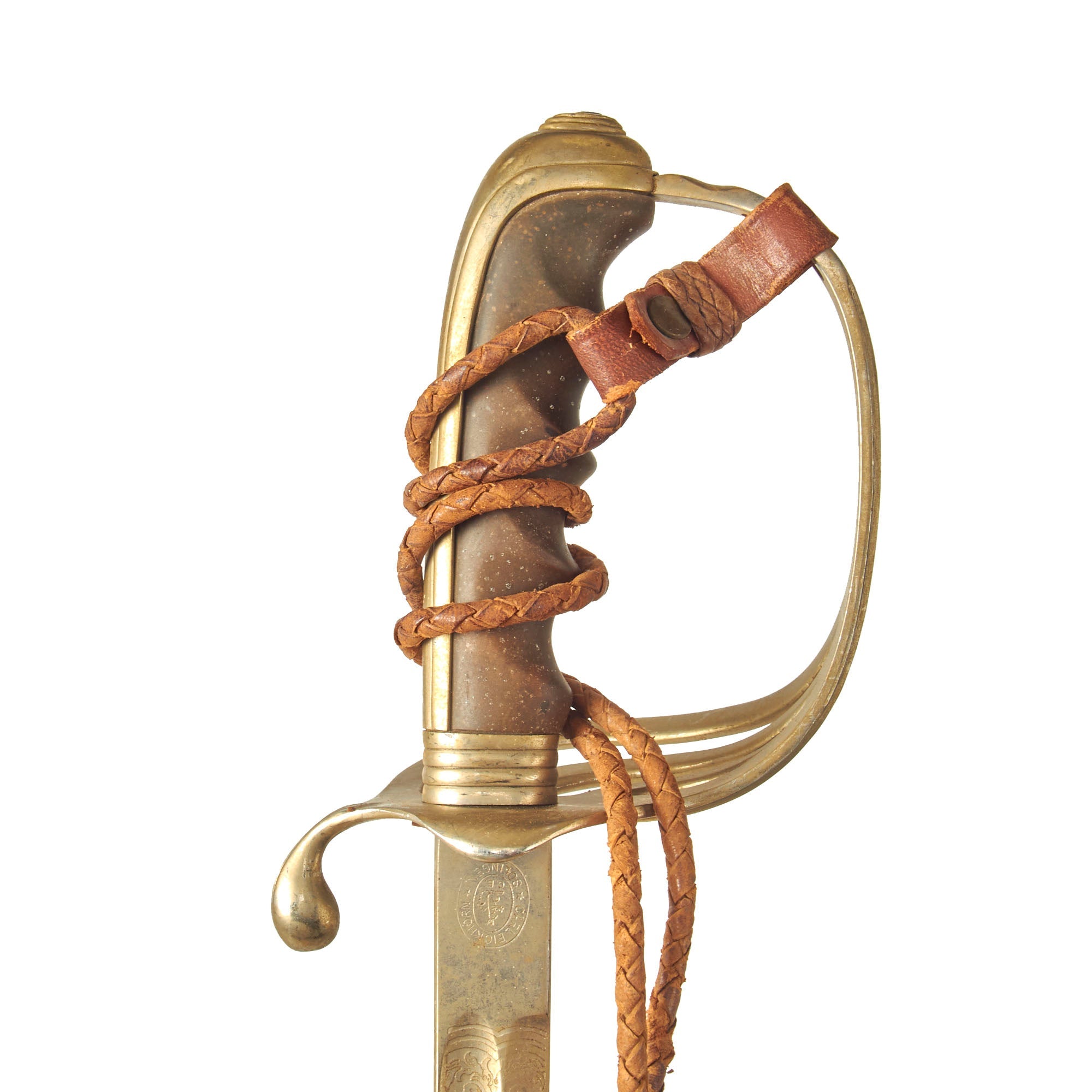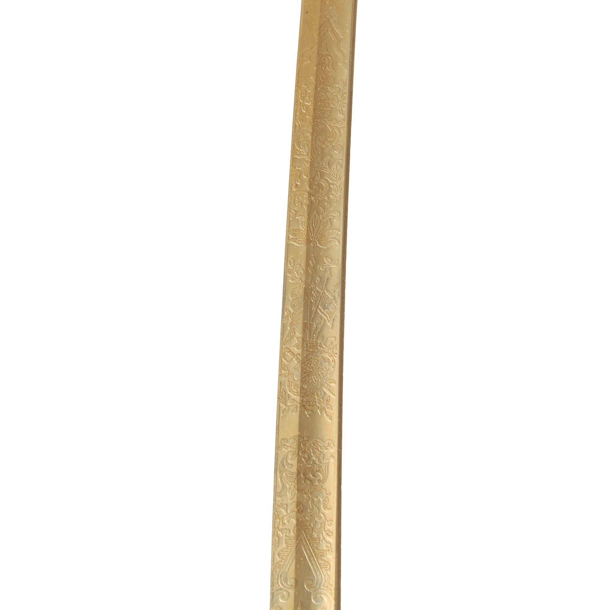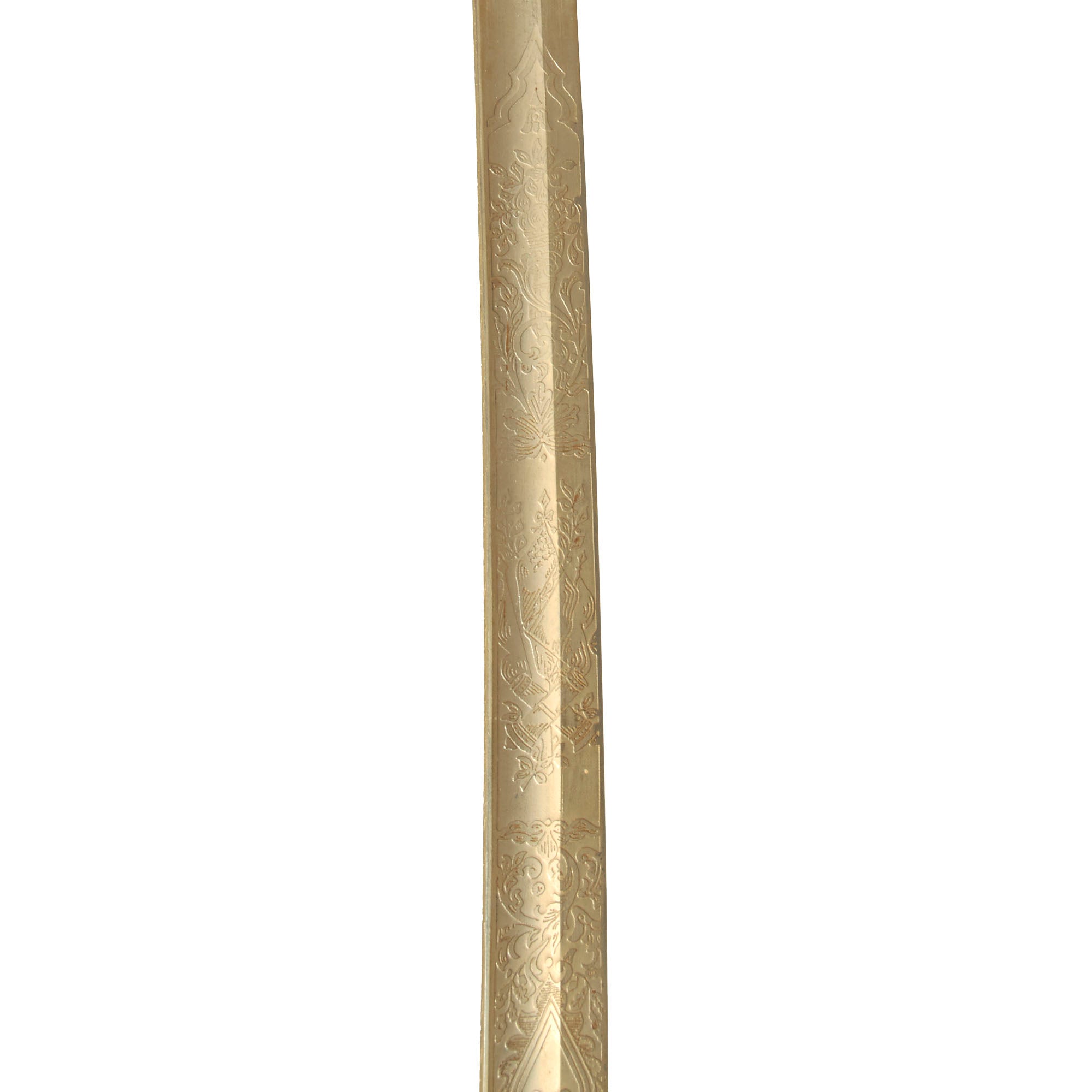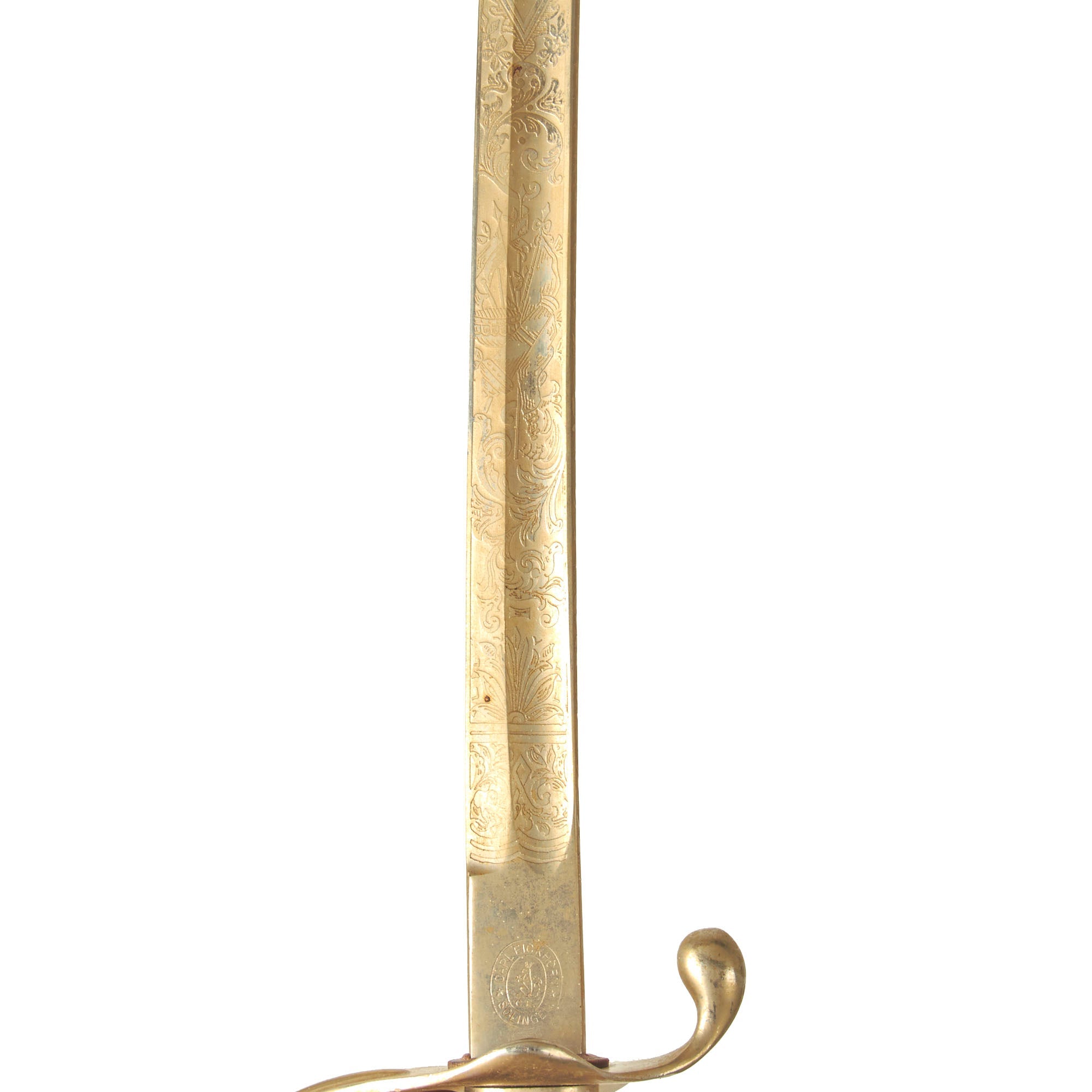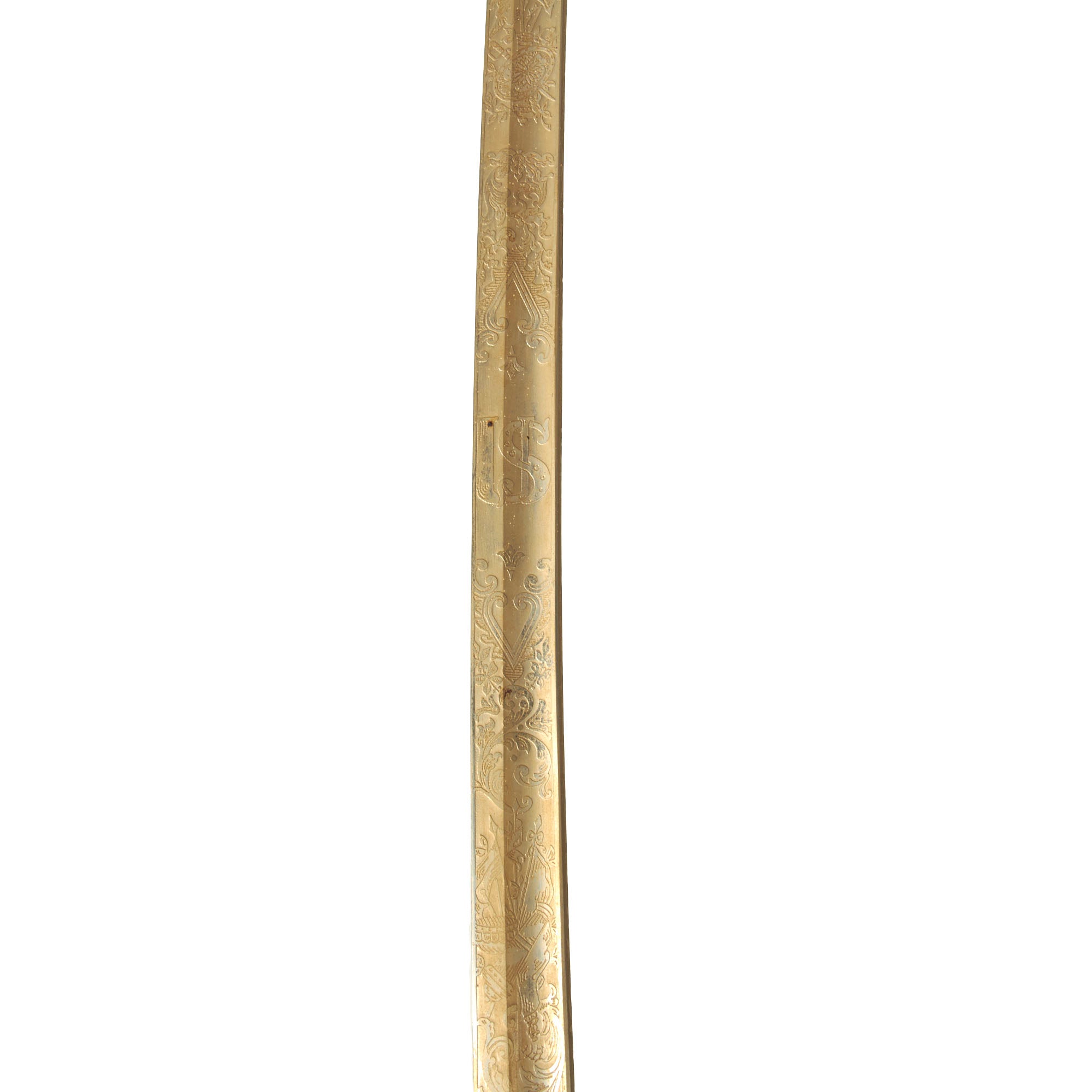 The sword is 37 1/2 inches in overall length, with a 32 1/2 inch blade. Condition is very good, with almost all of the nickel plating intact, and comes complete with its matching Scabbard. There is some oxidation speckling in places, to be expected on a sword of this age.