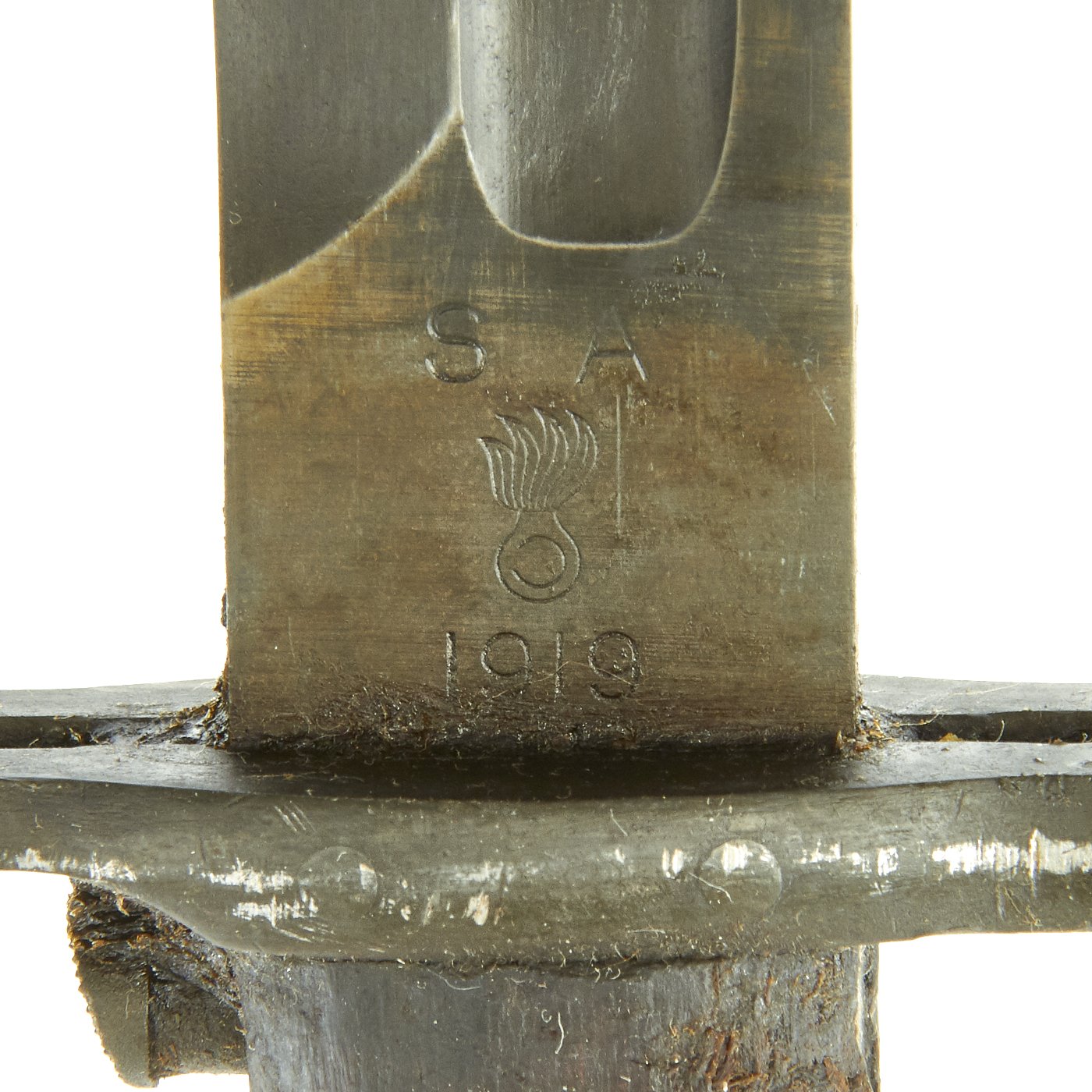 The blade ricasso is marked with SA for the Springfield Armory in Springfield Mass, the primary center for the manufacture of United States military firearms from 1777 until its closing in 1968. Below this is the Ordnance flaming bomb and date of manufacture 1919. The other side of the ricasso is marked with U.S. above serial number 1098903. The blade is in excellent condition, with a great finish and minimal sharpening. The original grips are also quite good, still showing a good deal of the original factory "Ribbed" texture.