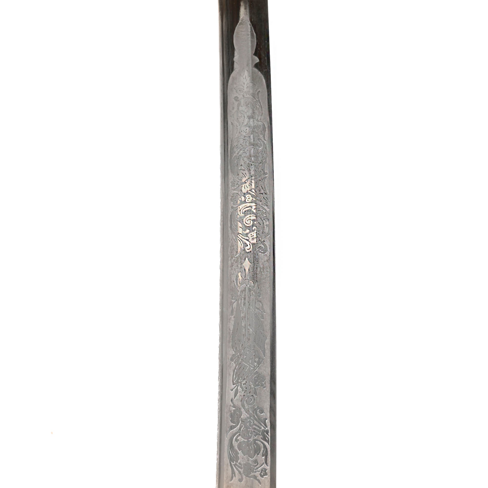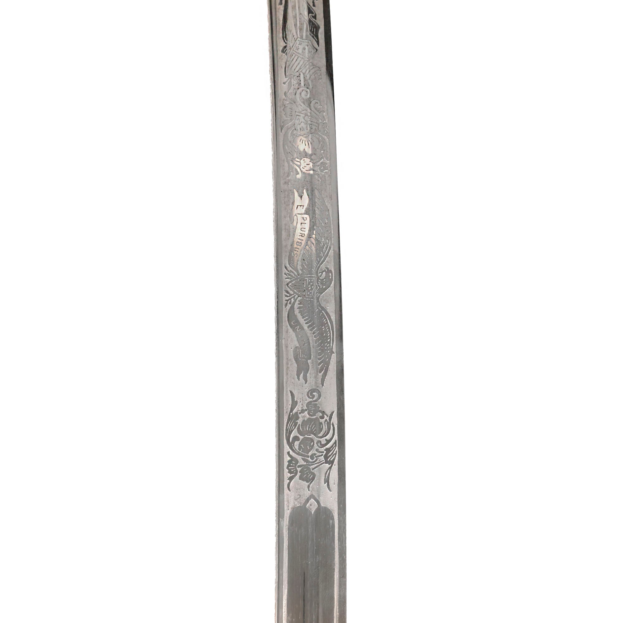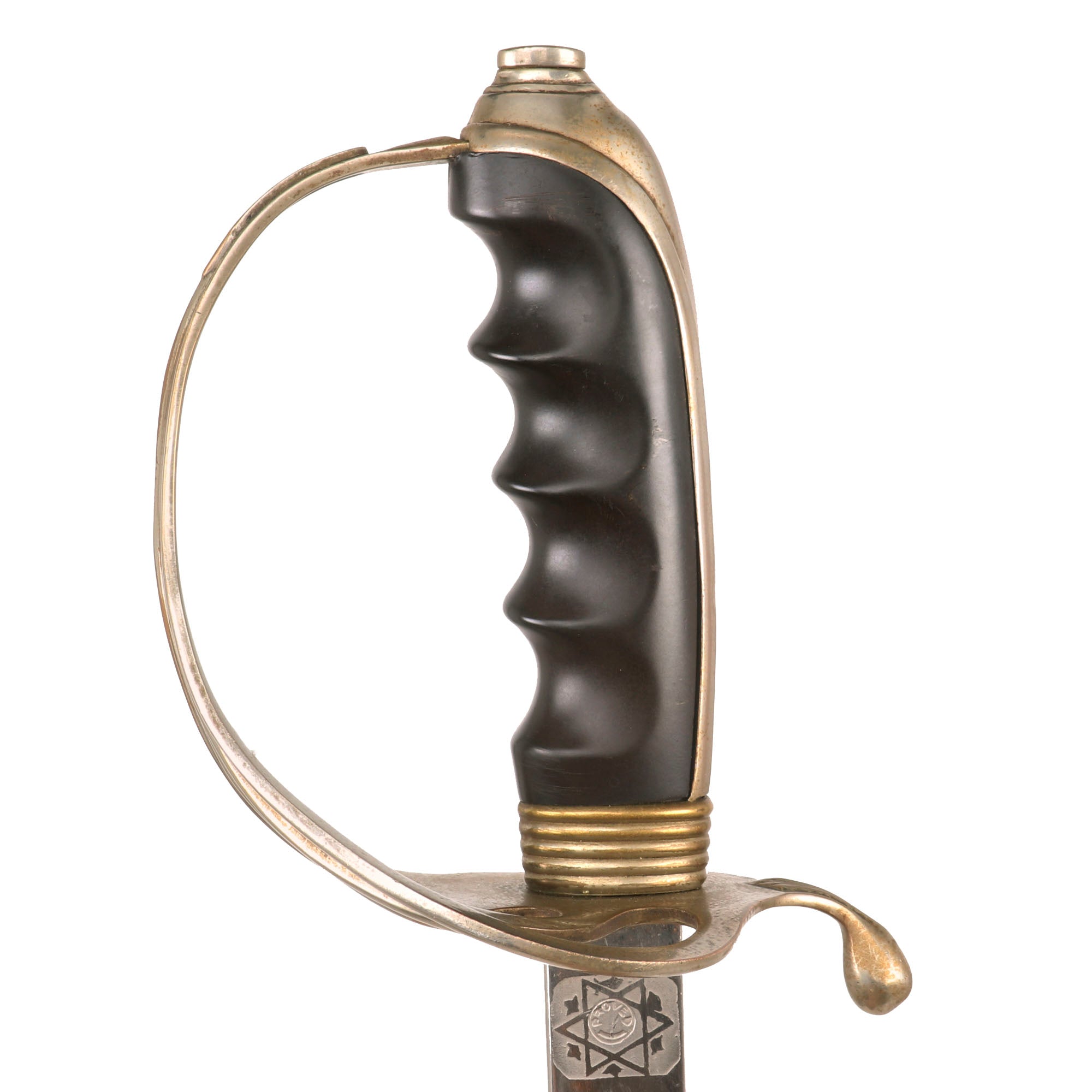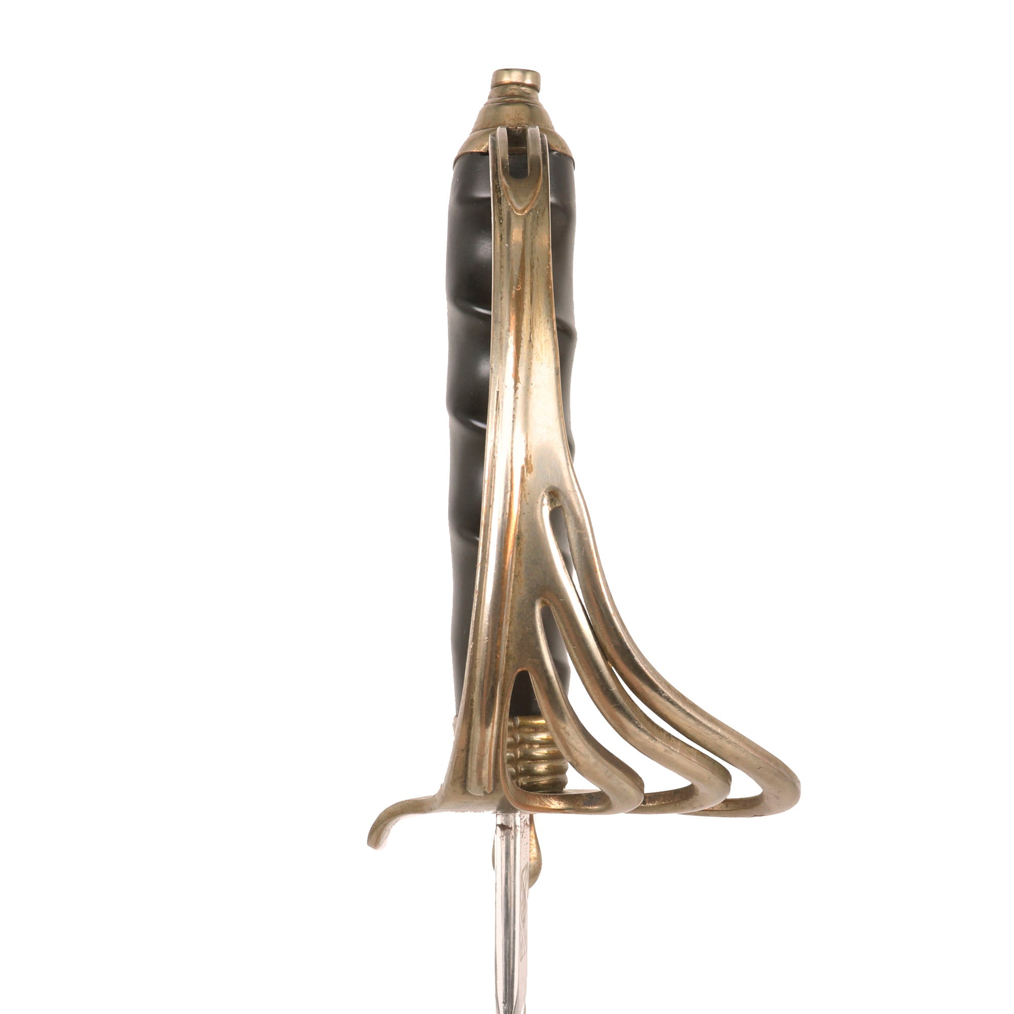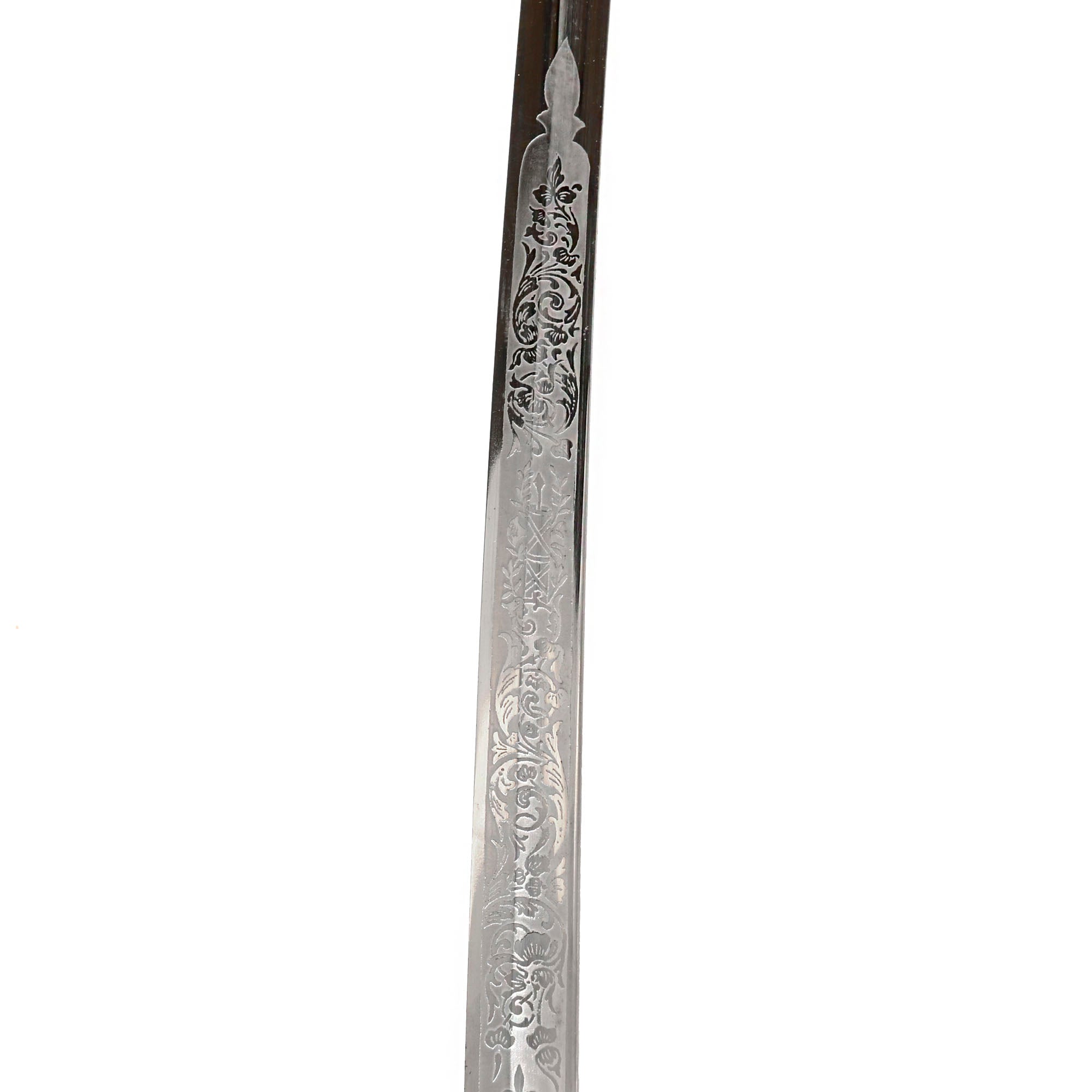 Original Item: Only One Available. The Model 1902 Army Officers' Saber is the current sword used by officers of the United States Army. The official nomenclature for the current regulation U.S. Army saber is “saber for all officers, Model 1902”. It was adopted on July 17, 1902 by authority of General Order No. 81. The M1902 saber was authorized for all officers, both infantry and cavalry, with the exception of Chaplains. The lightly curved blade measures between 30-34 inches long with weights initially specified by the U.S. Army to be between 20.2 and 22.8 ounces (573 to 647 grams) and a point of balance of 3.25 inches from the hilt as specified for infantry sabers.