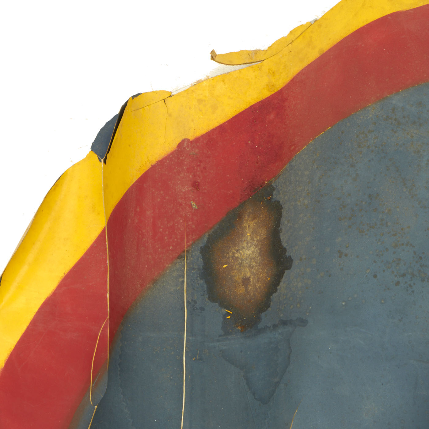 Unfortunately, the section of canvas has been rolled up for many years and the paint is cracking throughout, leaving visible lines where the roll marks are. This is a strong canvas type material which stood the test of time, just not the paint. The wings were mostly made of a wooden frame and this material was stretched and fitted around the frame, which is also why its single sided.