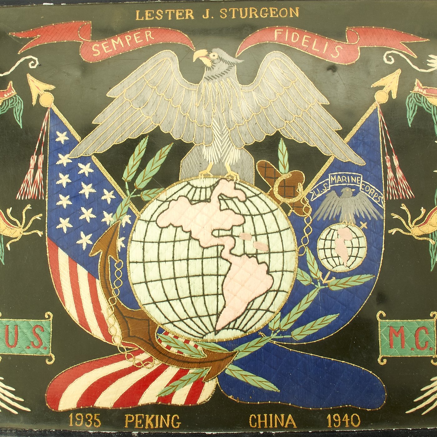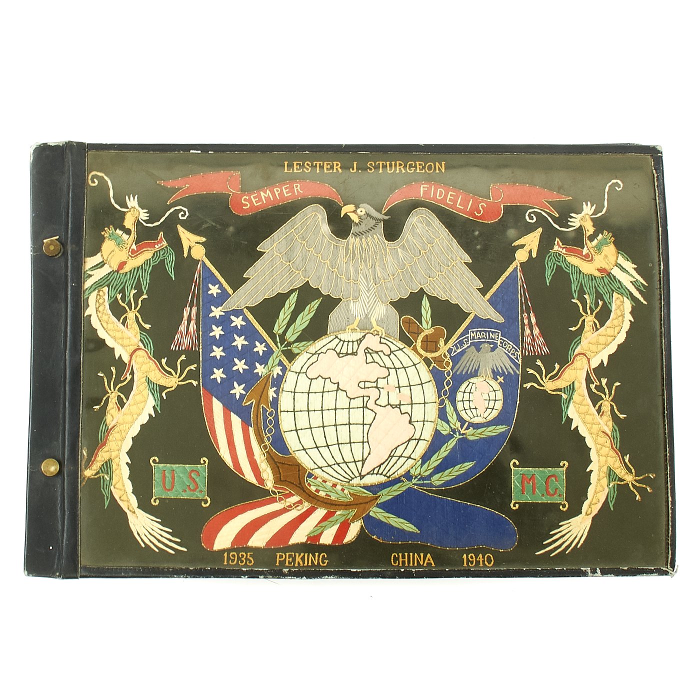 Original Items: One-of-a-kind set. This is a set of two fantastic 1935-1940 photo album and scrap book named to United States Marine Corps Cook Lester J. Sturgeon. The photo album features and incredible custom made cover of embroidered Chinese dragons and EGA with his name across the top. Inside it has hundreds of high quality period photos of his service in China