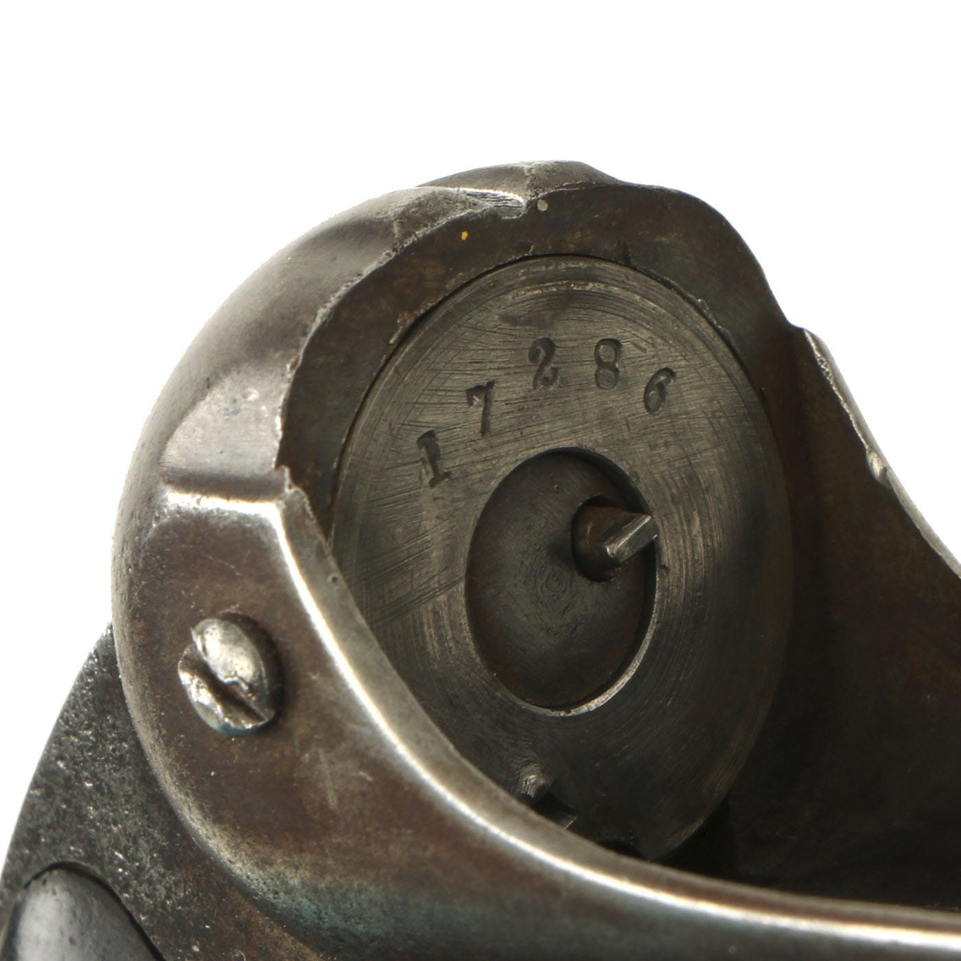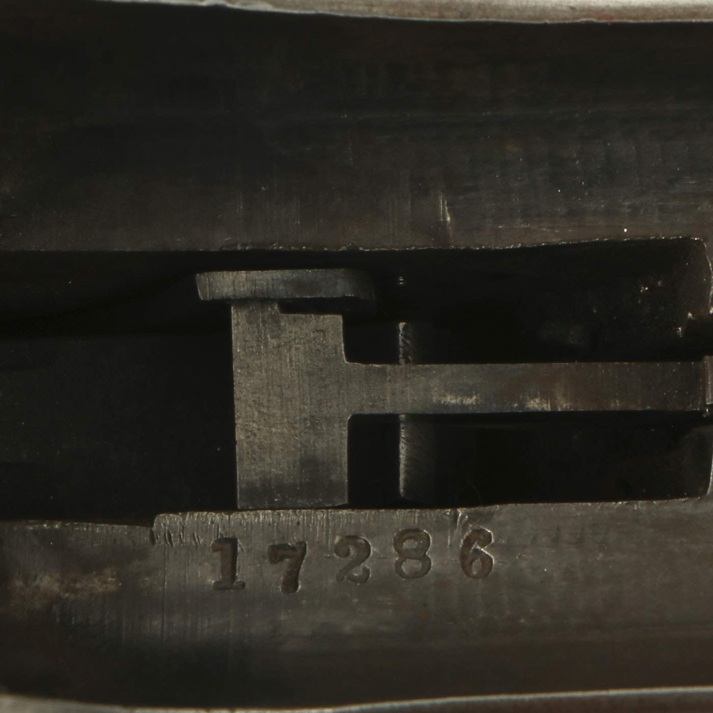 The pistol is well marked, with serial number 17286 marked on the bottom of the barrel, on the frame inside the breech, and on the rotating firing pin assembly. The full Remington name and address down one side of the barrel cluster: