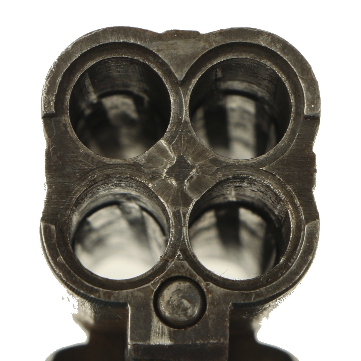 Unlike many other pepperbox pistols, this design does not have a rotating barrel cluster. Instead, the rear of the action has a rotating breech block, which moves the rimfire firing pin 90 degrees each time the trigger is pulled. The barrel cluster also "tips up" when unlocked by the small catch on the underside of the barrel, which is how the gun is reloaded. This design does not have any type of built in ejector.