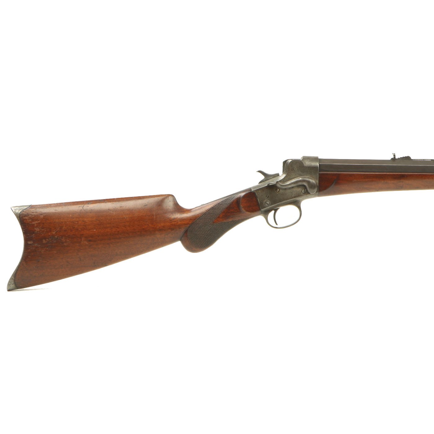 Original Item: One Only. The "Remington-Hepburn" falling block single shot rifles were designed by Lewis Hepburn, who had patented the action in 1879. These were manufactured manufactured during the late 19th century with approximately 10,000 in total production. As these were sporting rifles, they could be ordered with a multitude of options, calibers, and trim levels. This is the standard sporting rifle, with a heavy octagonal barrel in .25-20.