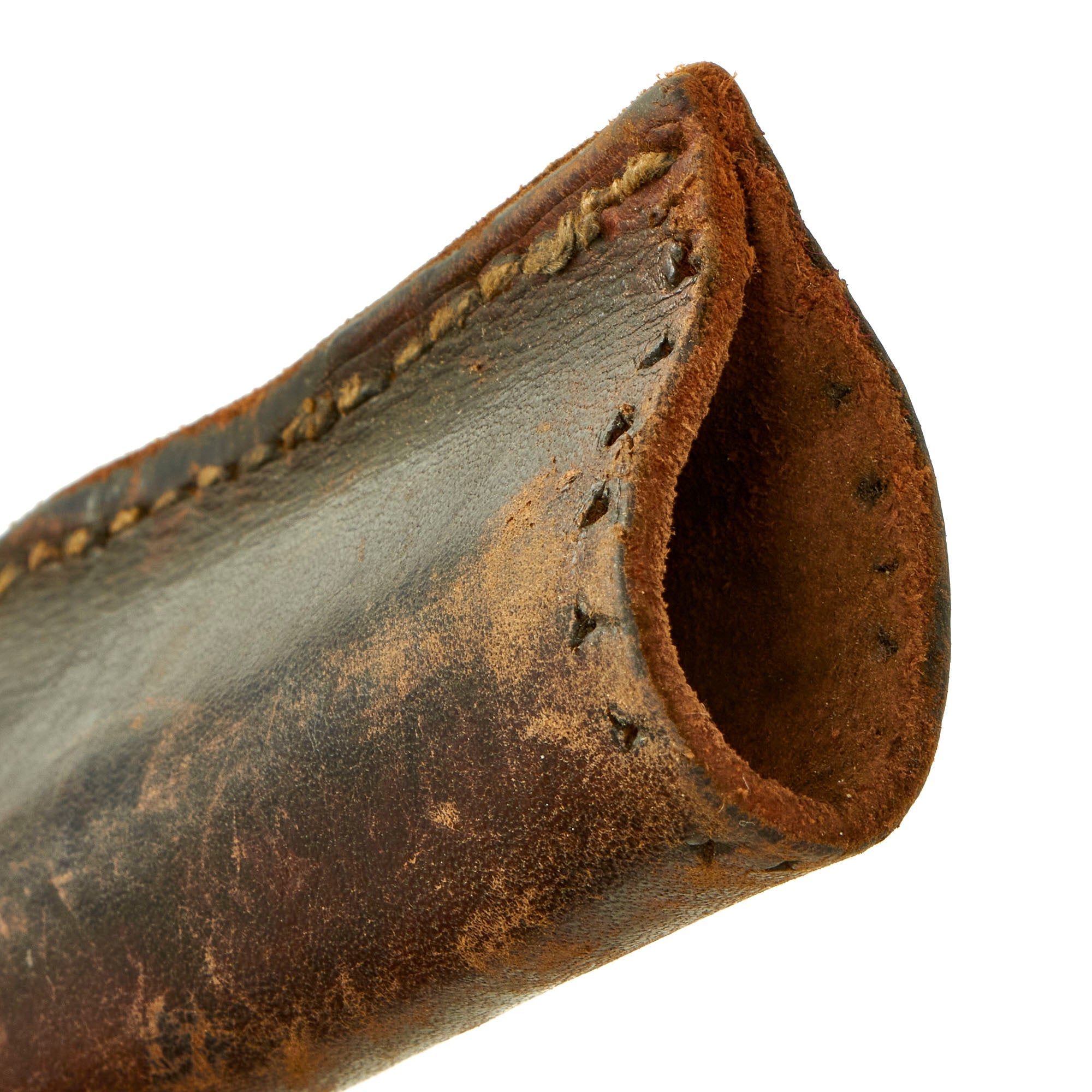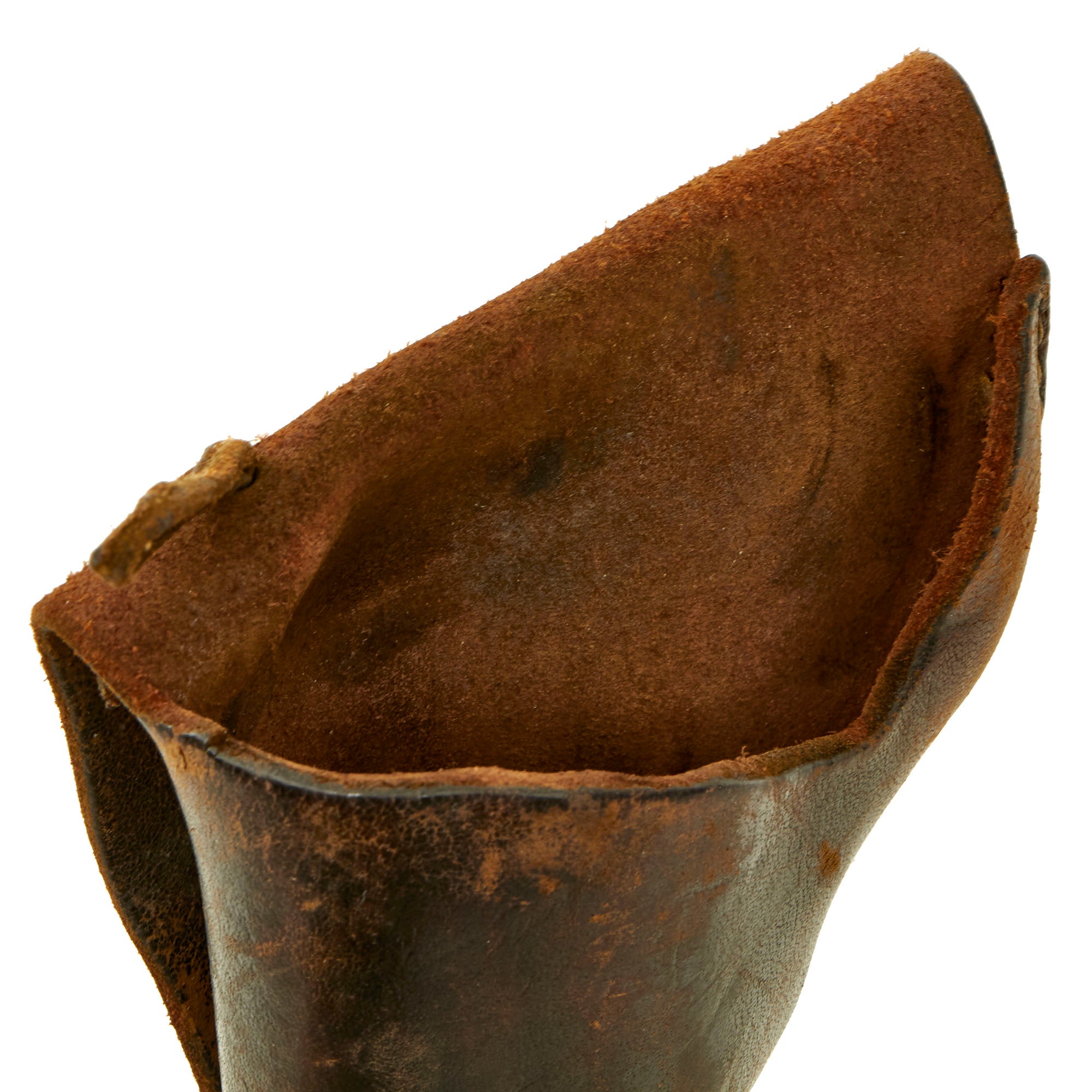 The included holster is just lovely, made from brown leather that is still quite supple. It is a standard open top belt holster, most likely custom made, and is completely unmarked. There was originally a piece of leather at the bottom as seen with most US holsters, but it has had the stitching rot out and was lost. Of interest is the loop on the top of the holster, which both helped keep the revolver in the holster, and also kept the hammer from accidently getting caught on somethin and cocking the pistol. It fits the revolver well.