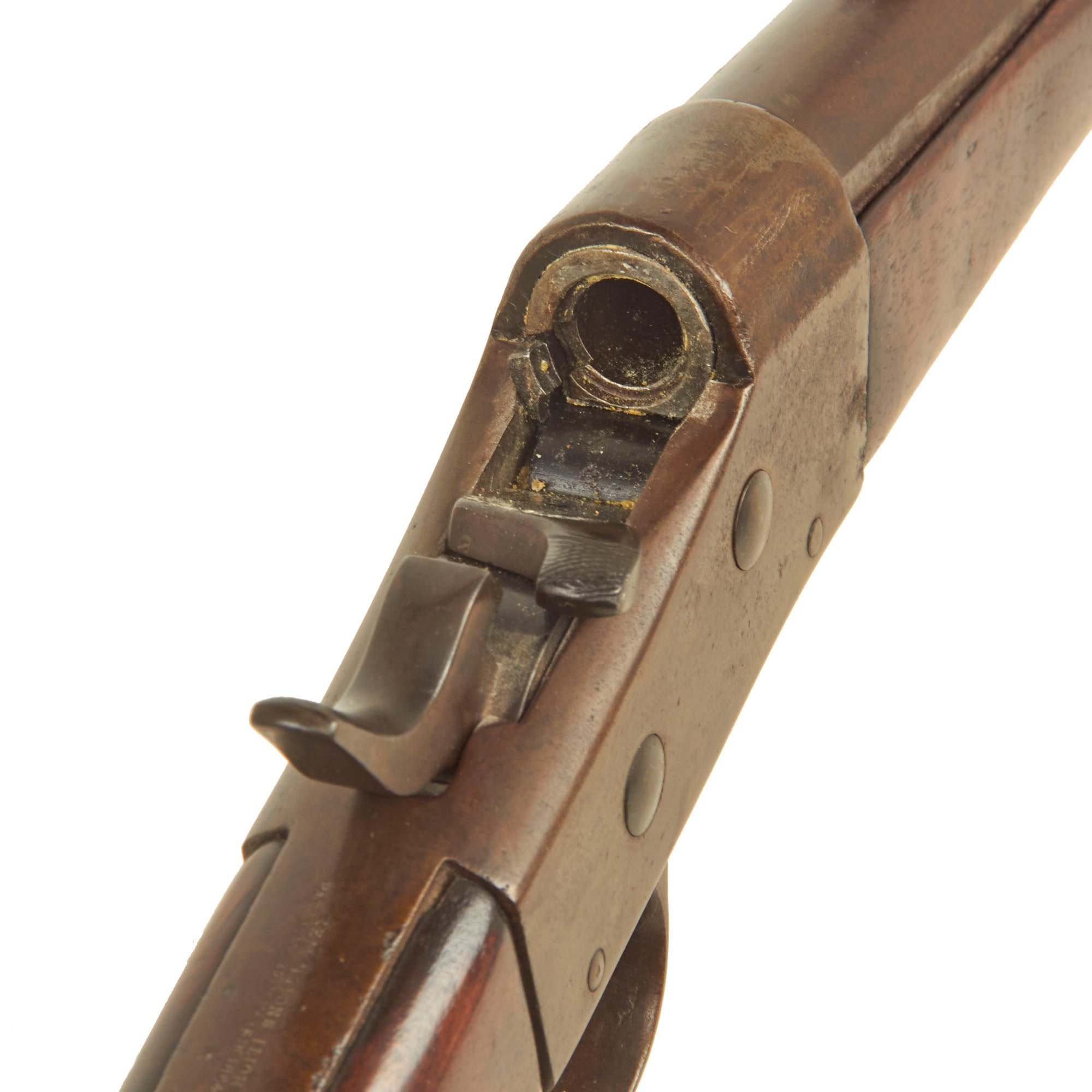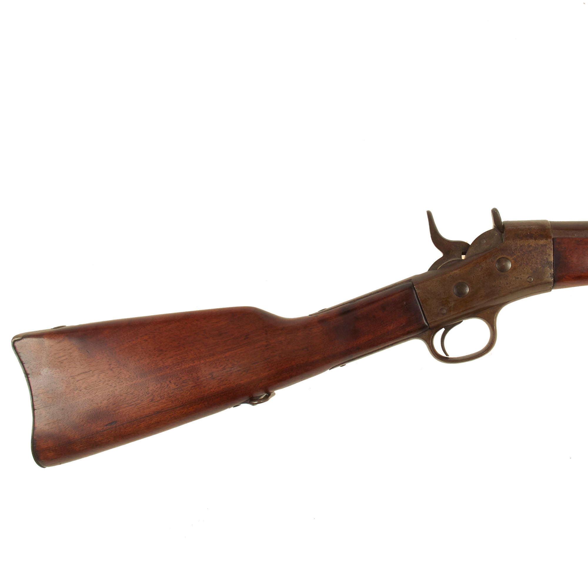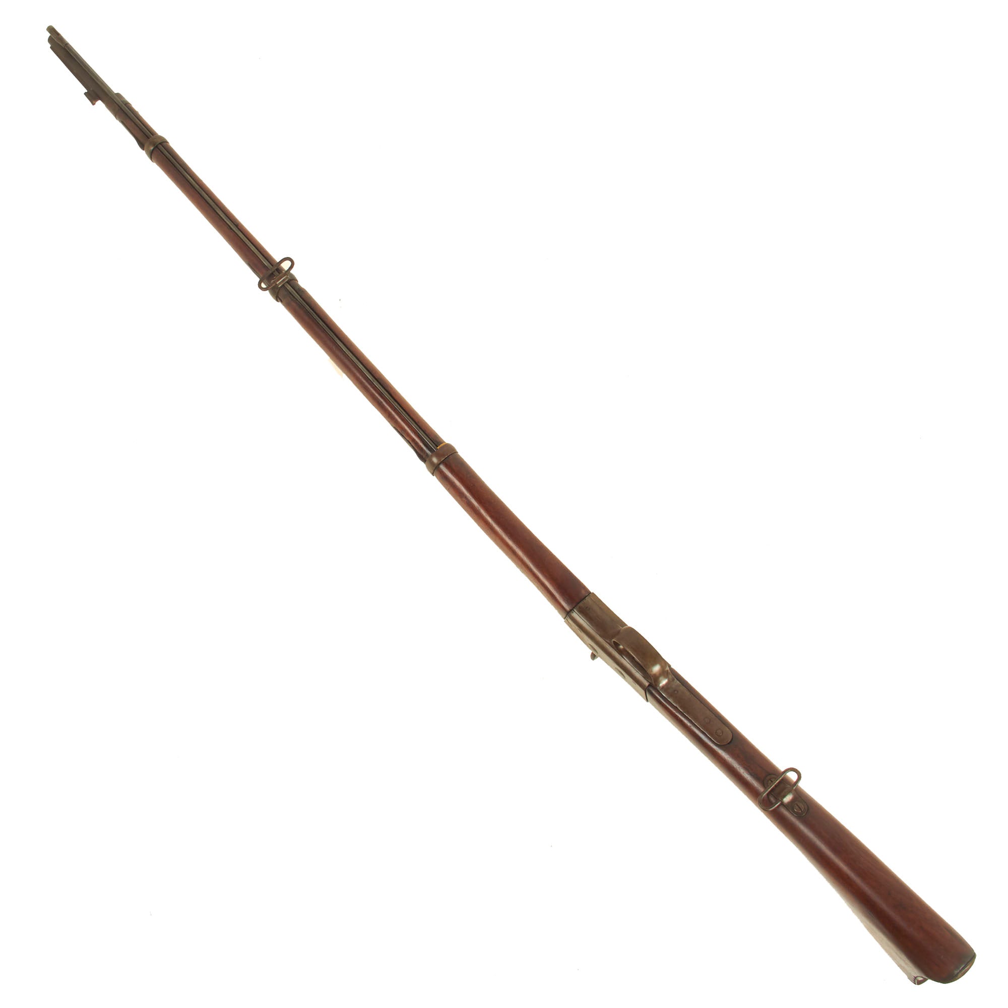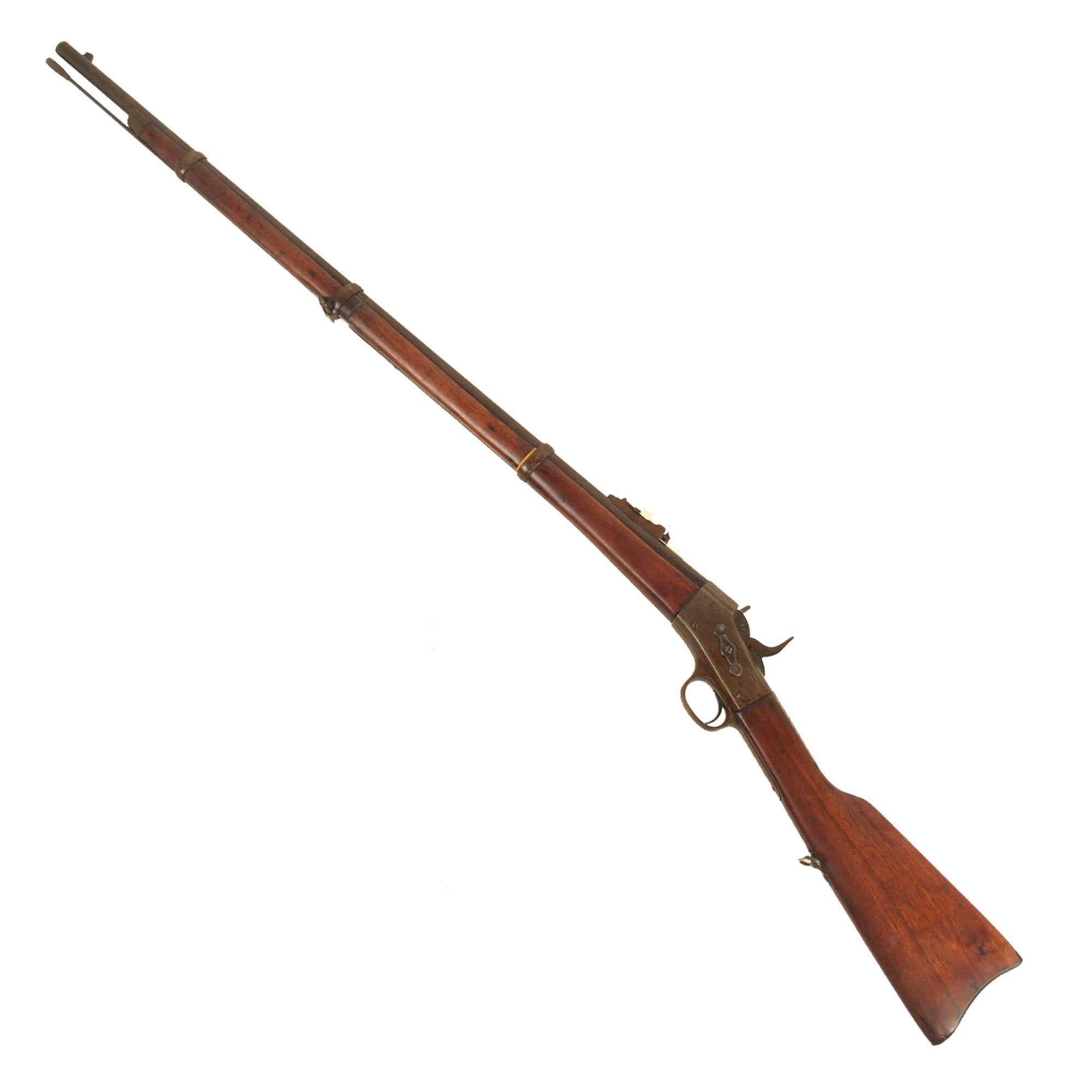 This is a very nice example of the Spanish Fusil Remington Norteamericano Mo. 1870, from one of the most well-known military contracts that Remington received. When people talk about a "Spanish Remington", this is the rifle they are talking about. This is not one of the many made under license at the Spanish Oviedo Arsenal, this is definitely one of the U.S. manufactured rifles. As detailed in The Military Remington Rolling Block Rifle by George Layman, Spain ordered the Rolling Block rifles as part of three contracts: an initial order in 1868 for the delivery of 10,000 rifles to Spain’s colonial army in Cuba, a second 50,000 rifle contract in about 1871, and a third contract placed in 1873.