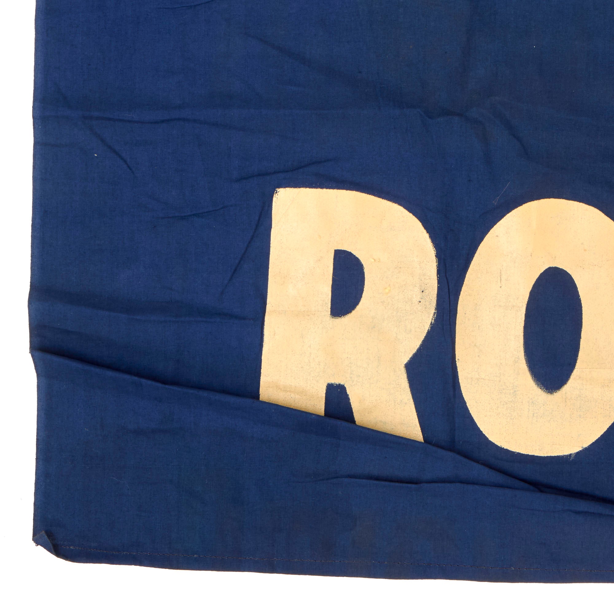 Original Item: Only One Available. This is a remarkable flag that offers a glimpse into the political atmosphere of the 1940 Presidential Election. It was likely one of many that were proudly displayed by Democrats, who were rallying behind their candidate, Franklin D. Roosevelt. The flag, despite its age, is still in impressive condition, with only minor fading and no significant damage. The striking silhouette of Roosevelt dominates the flag, with the text "Retain Roosevelt" boldly printed across it. The imagery and text, though somewhat weathered by time, are still discernible and serve as a testament to the historic political movement that swept the nation during that time.