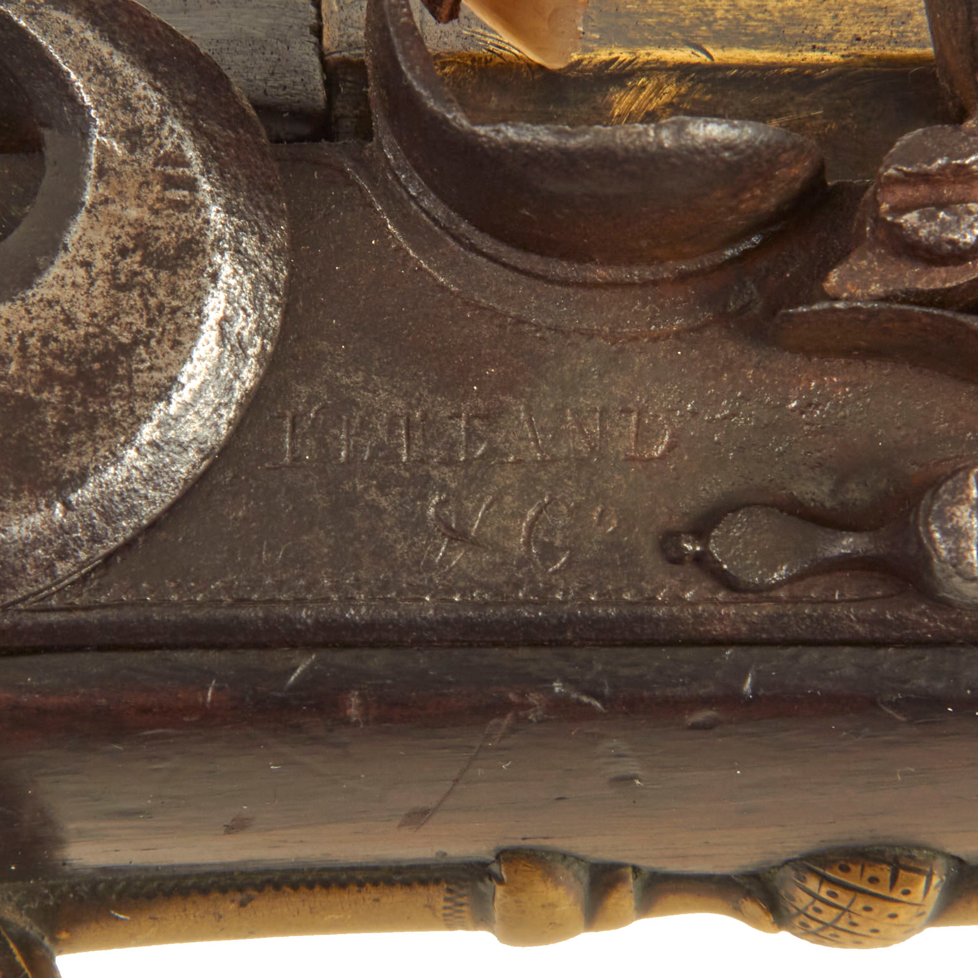 Original Item: One of a Kind. This lovely British Blunderbuss was made to order about 1770, marked on the lock by KETLAND & CO., with LONDON & PORTSMOUTH engraved on the top of the barrel. This family business started in 1740, eventually expanding to have operations in both Birmingham and London, before finally folding in 1831. However it lasted over almost 100 years transacted a tremendous amount of business both domestically and abroad. Their Birmingham markings were so well known that in 1813 they became the official Birmingham Proof marks.