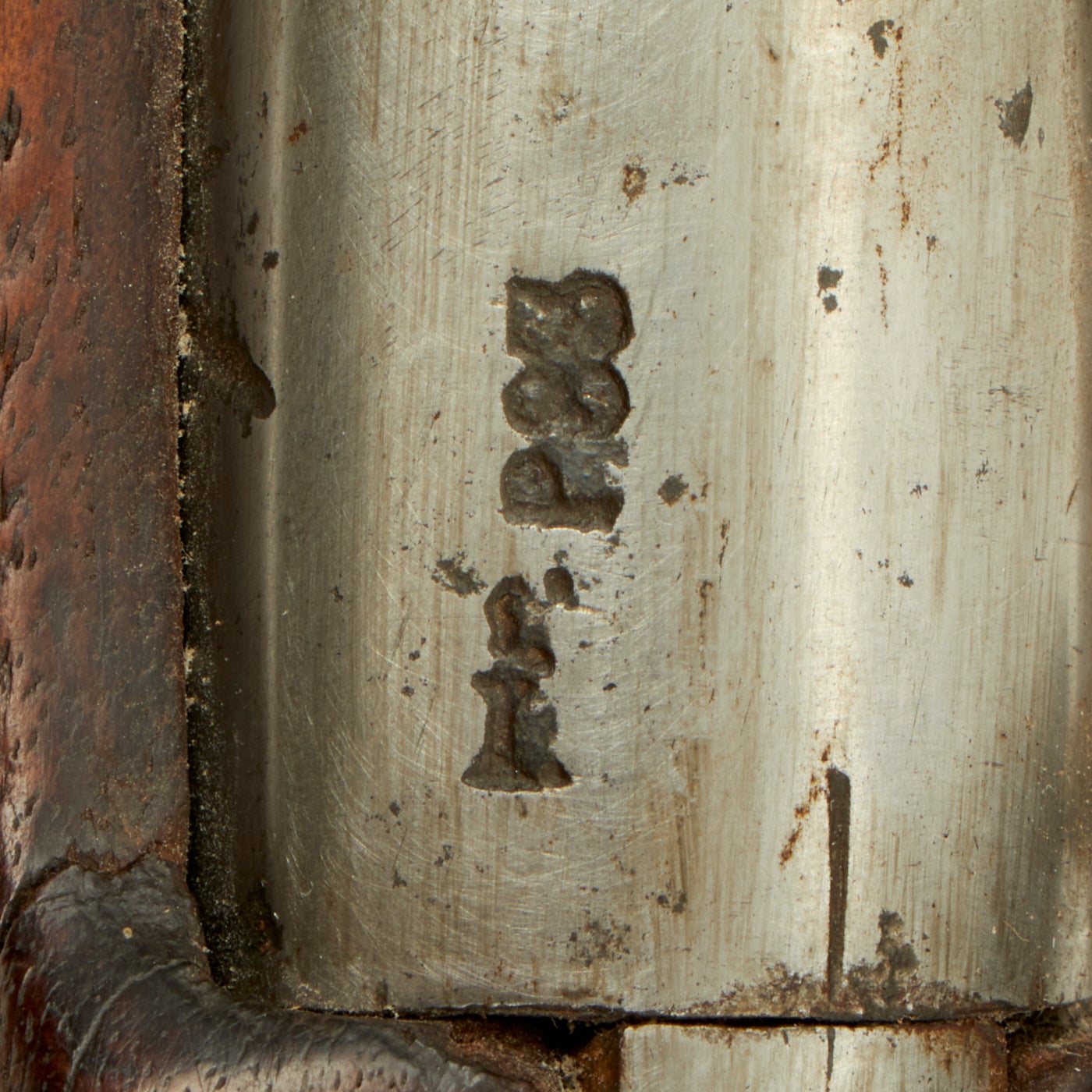 This example is a "lightened" Modèle 1763, sometimes called the Modèle 1766, which did not feature the heavy ramrod cover of the standard M1763. This is the exact model supplied in large numbers to the United States during the Revolution. This is the musket that served as the basis for the Springfield Model 1795 and later American Flintlock muskets. The later model 1777 would feature a new "ribbed" trigger guard and cheek rest for an easier grip on the musket.