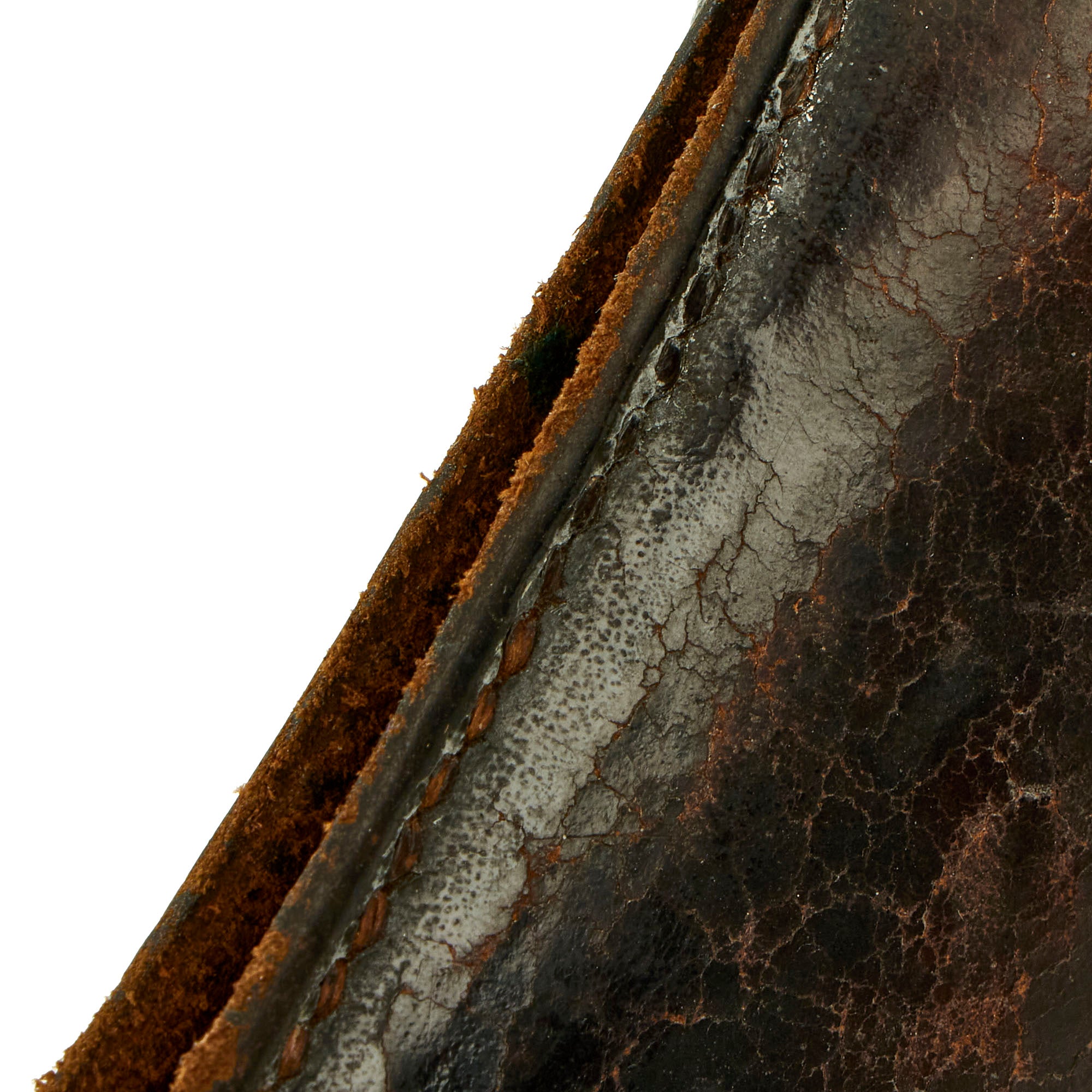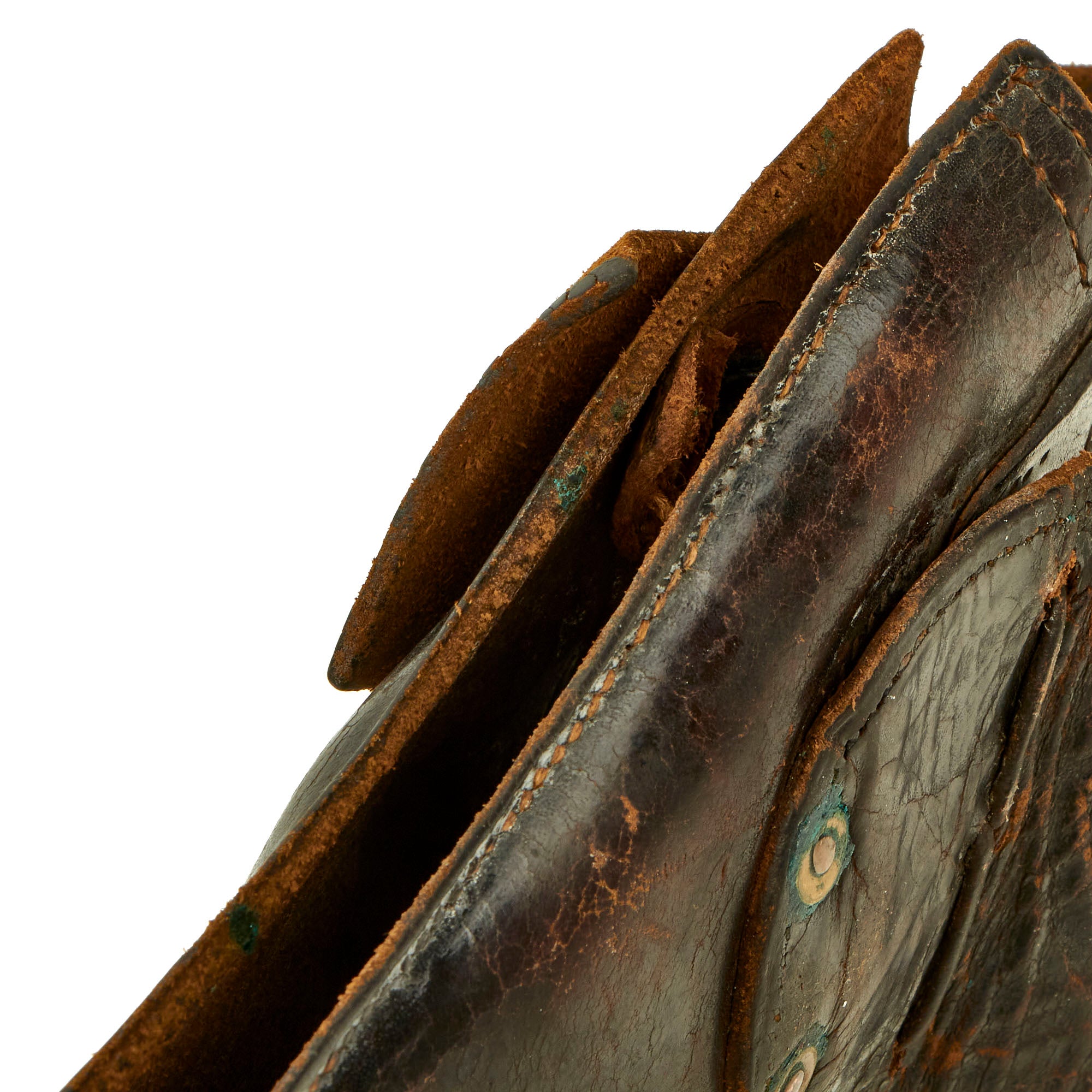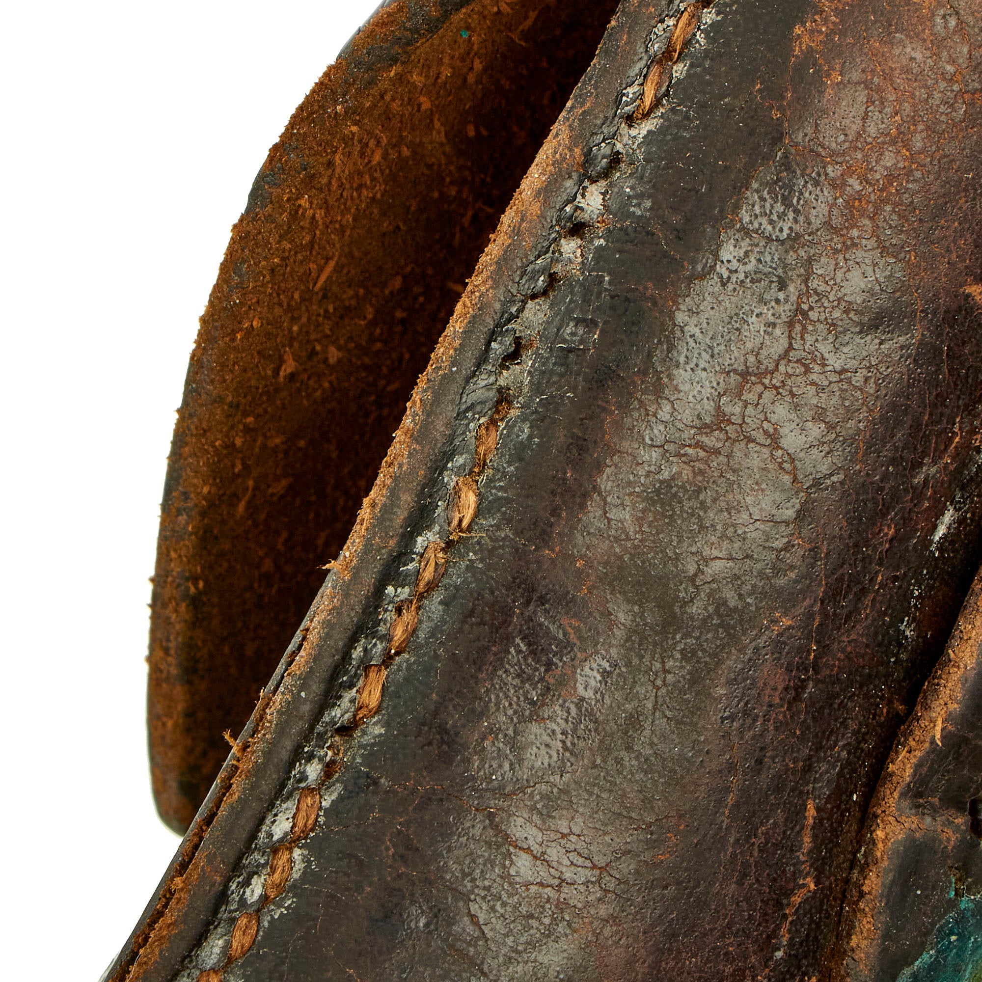 In addition to the surplus market, they were also sold off to state governments for use in their militia and Guard units, and this revolver came to us with a period correct M1881 top flap holster, designed to fit both the Colt Single Action Army AND the Smith & Wesson Schofield revolvers. This is why it has two holes in the top flap for the stud. This well-patinated example has unit markings stamped onto the flap, the most important of which is N.G.W., for "National Guard Washington". The holster is definitely in relic condition, with the finish flaking off and the seams mostly split, but it it came with the revolver and has clearly been with it for some time.