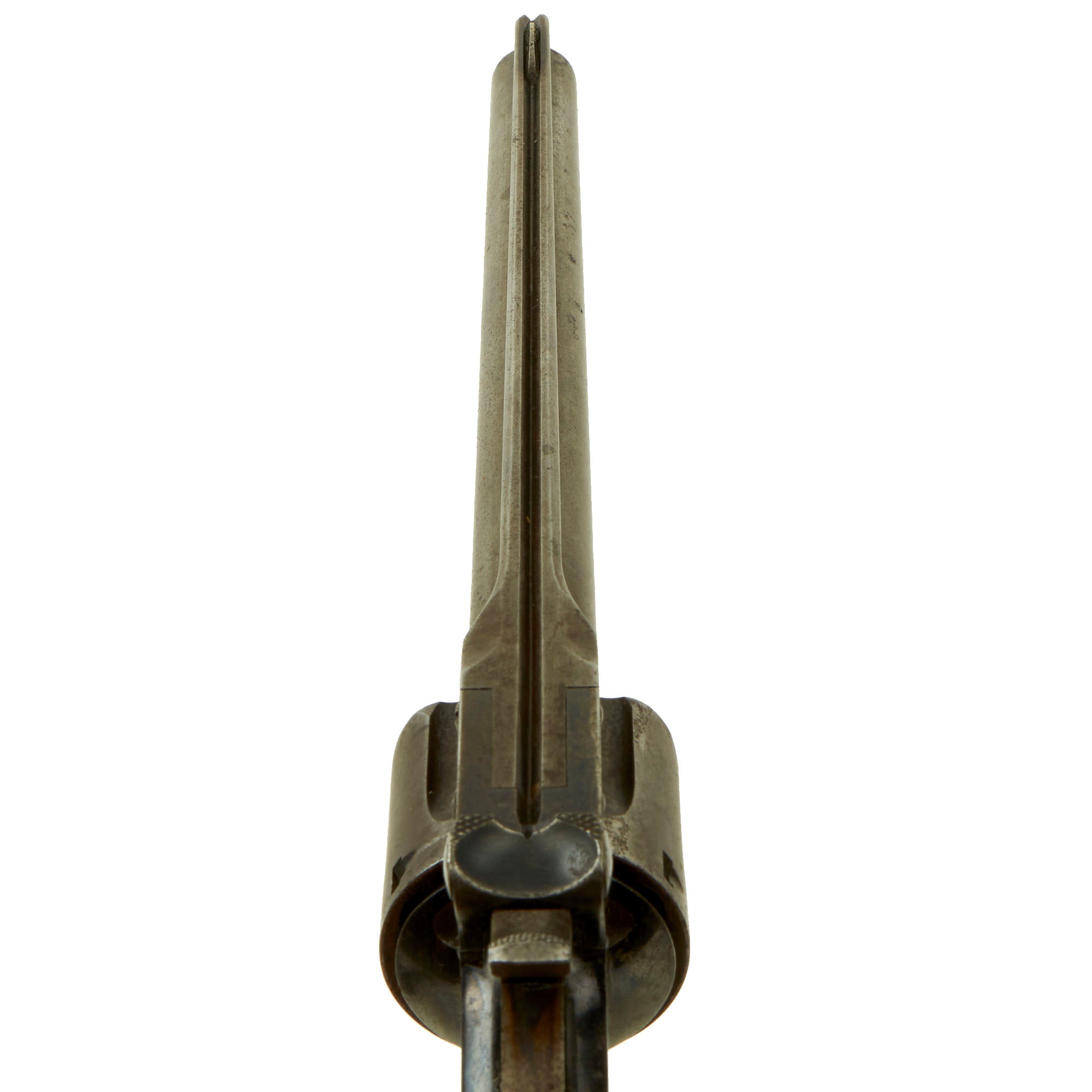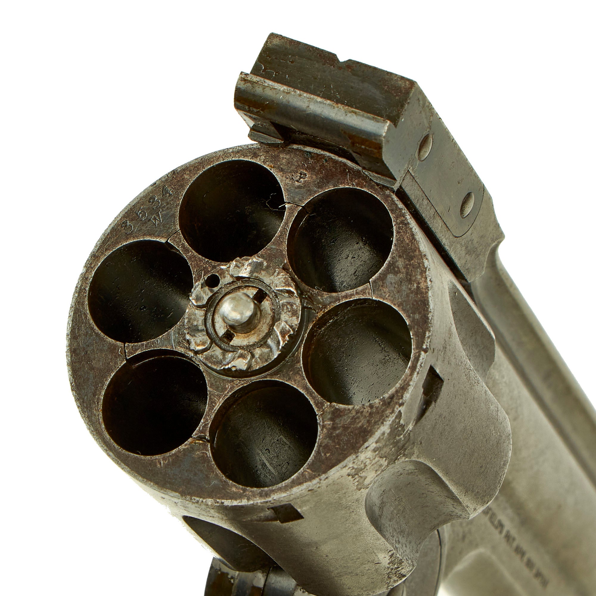 The revolver functions flawlessly, cycling correctly with accurate indexing, a secure cylinder lockup, and a strong dry fire. We did not notice any of the usual finicky behavior we can see from revolvers of this age. The revolver breaks open correctly with ejection, and correctly retracts. The bore is in excellent condition, showing crisp lands and grooves with a mostly bright finish showing just a few areas of light oxidation. The machining marks are still visible on the lands, indicating it did not see much use at all!
