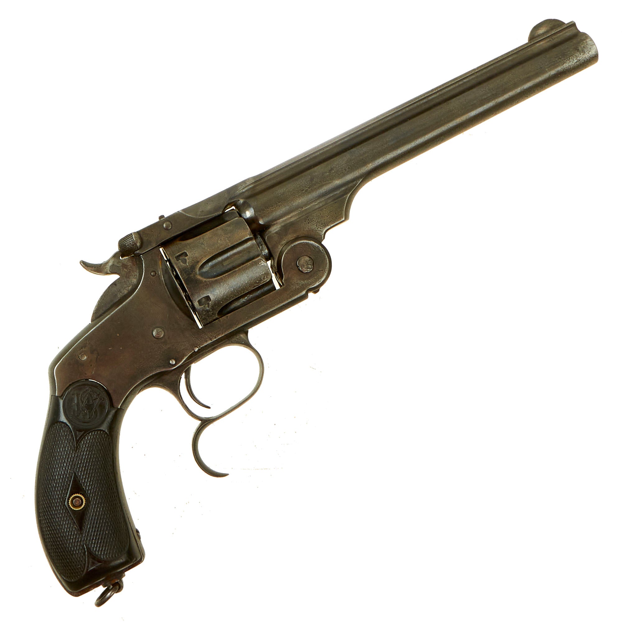 Original Item: Only One available. This is a really nice and rare Revolver to find, and only the second example that we have had the pleasure of handling! This is a very nice Smith & Wesson "New Model" No. 3 revolver in .44 Russian caliber, which bears the "Wavy Anchor" proof of the Japanese Kure Naval District on the underside of the frame forward of the trigger guard.