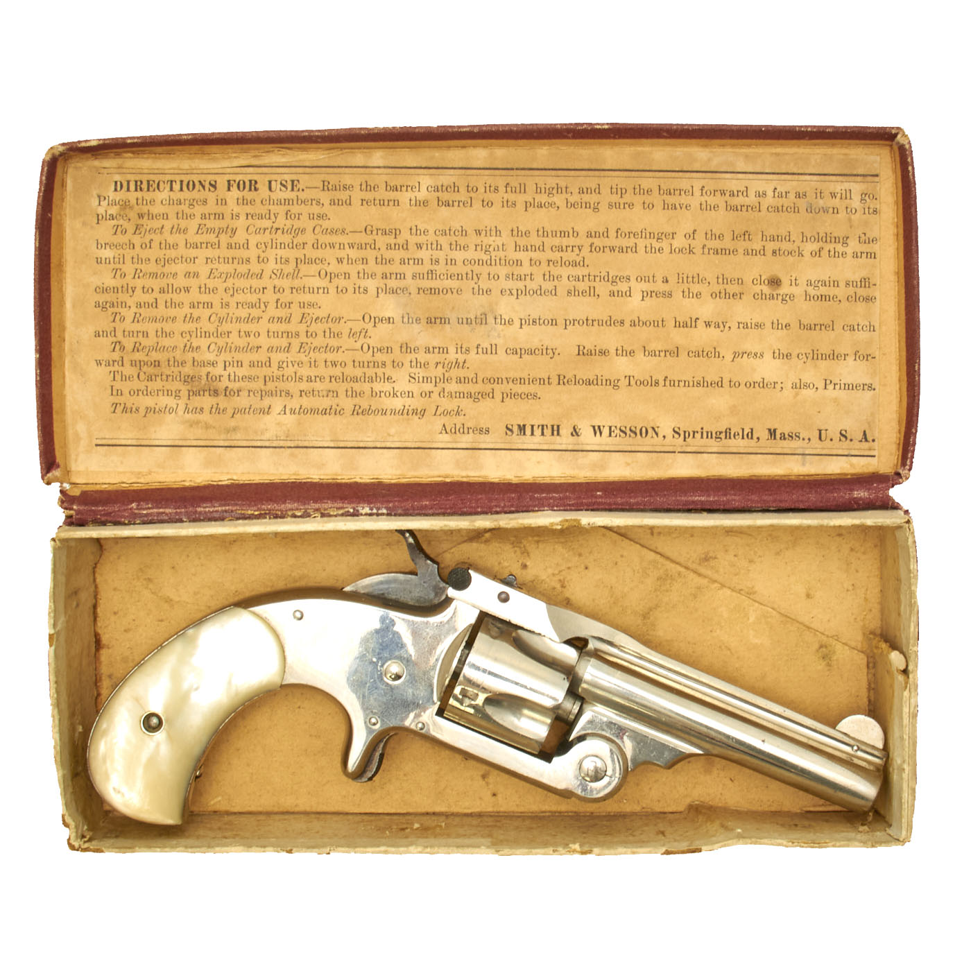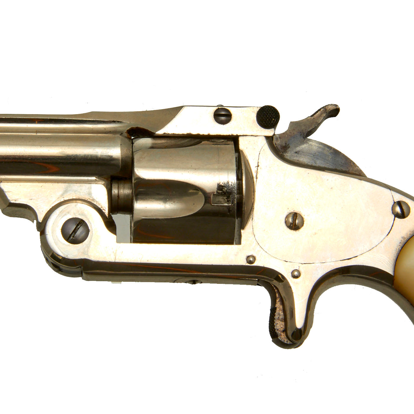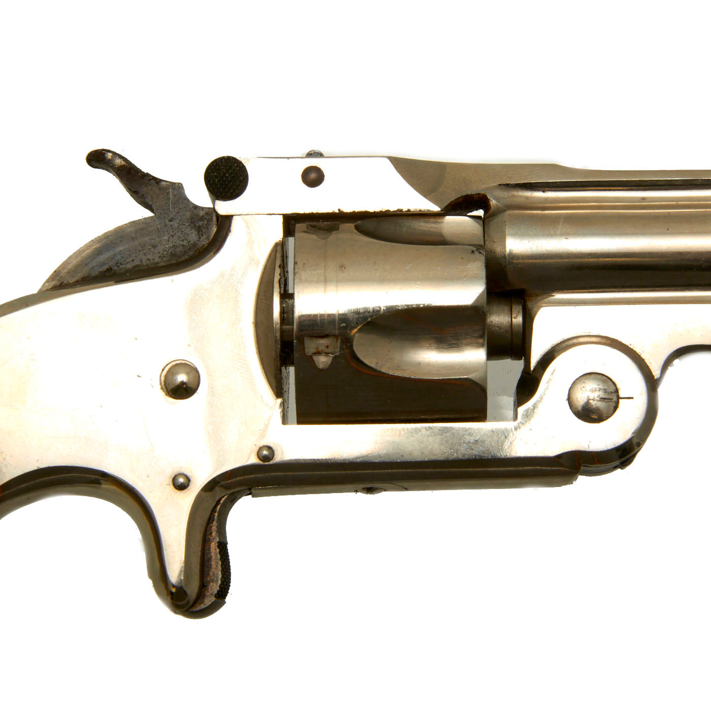 Original Item: Only One Available. This is an American classic, first introduced in 1865 and produced continuously until 1892. The Smith & Wesson Model 1 1/2 was Smith & Wesson's second .32 caliber revolver, intended to combine the small size and convenience of the .22 caliber Model 1 with the larger caliber of the 6-shot "belt sized" Model 2, which was introduced in 1860. Chambered in .32 cal, its cylinder held 5 shots. It was produced in three varieties, termed "issues" by S&W, with total production exceeding 223,000.