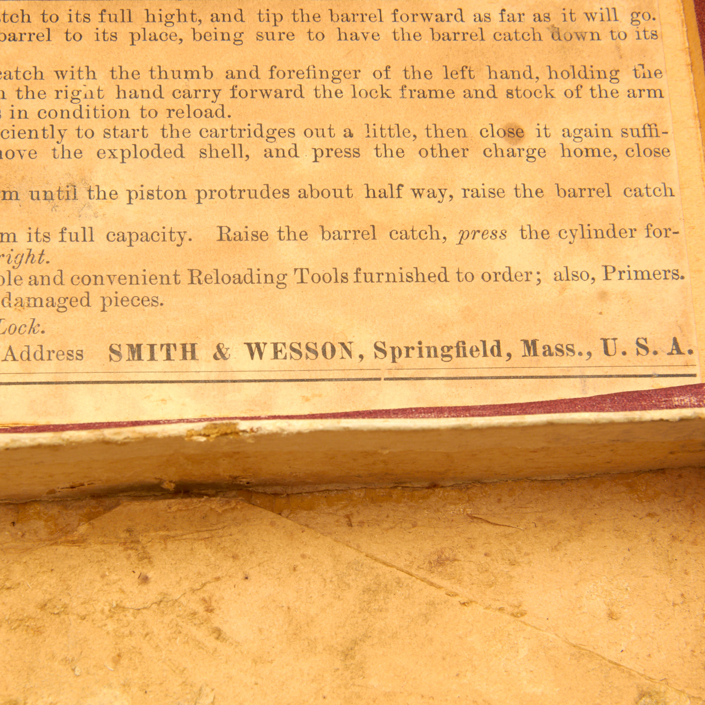 Included with the revolver is what looks to be an original box, with the Smith & Wesson instructions glued on the inside of the lid. It is in good condition, but definitely does show age, being not nearly as resilient to time as the revolver is.