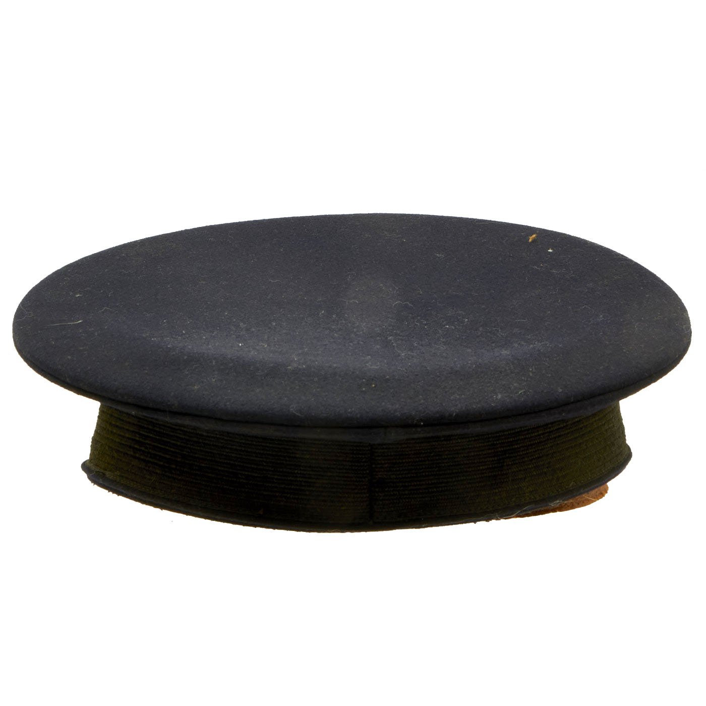 Condition of the cap is very good, though there is a bit of "melting" and crazing on the top of the visor. The sweatband has also degraded a bit, with the stitching having pulled through about 2/3 of the way, except on the front hear the visor. We see this quite often with caps of this age.