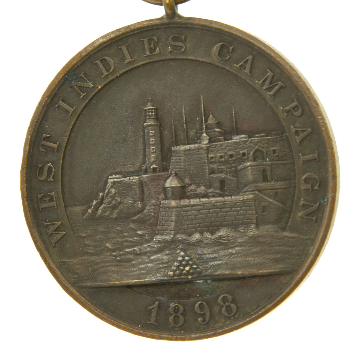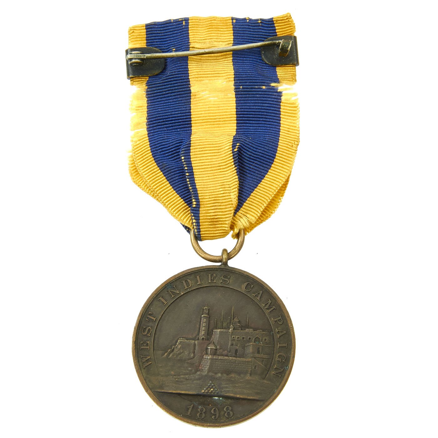 - Original West Indies Campaign Medal with ribbon numbered on the rim 111. Rim number is correct as confirmed by documentation. The medal was a United States military medal of the Navy and Marine Corps issued for service in the West Indies campaign theater of the Spanish–American War. The medal was established on 27 June 1908 and the first recipient of the award was Rear Admiral John E. Pillsbury. To be awarded the West Indies Campaign Medal, a service member must have performed sea duty in the West Indies between the dates of 1 May 1898 and 16 August 1898. The award was a one time decoration only and there were no devices authorized for multiple engagements or combat participation. The decoration was rarely bestowed, since most Navy and Marine Corps personnel received the Sampson Medal for West Indies service, and Navy regulations prohibited the bestowal of both the Sampson Medal and West Indies Campaign Medal for the same period of duty.