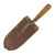 The tool measures 12 3/4 inches overall, with a 8 1/4 inch long and 3 1/2 inch wide blade. This is fitted with an upturned spine and a rounded steel guard bar at the base. The ribbed grip is branded U.S. on the obverse, as is the leather covered steel sheath, which has a brass top fitting fitted with a an iron hanger loop.