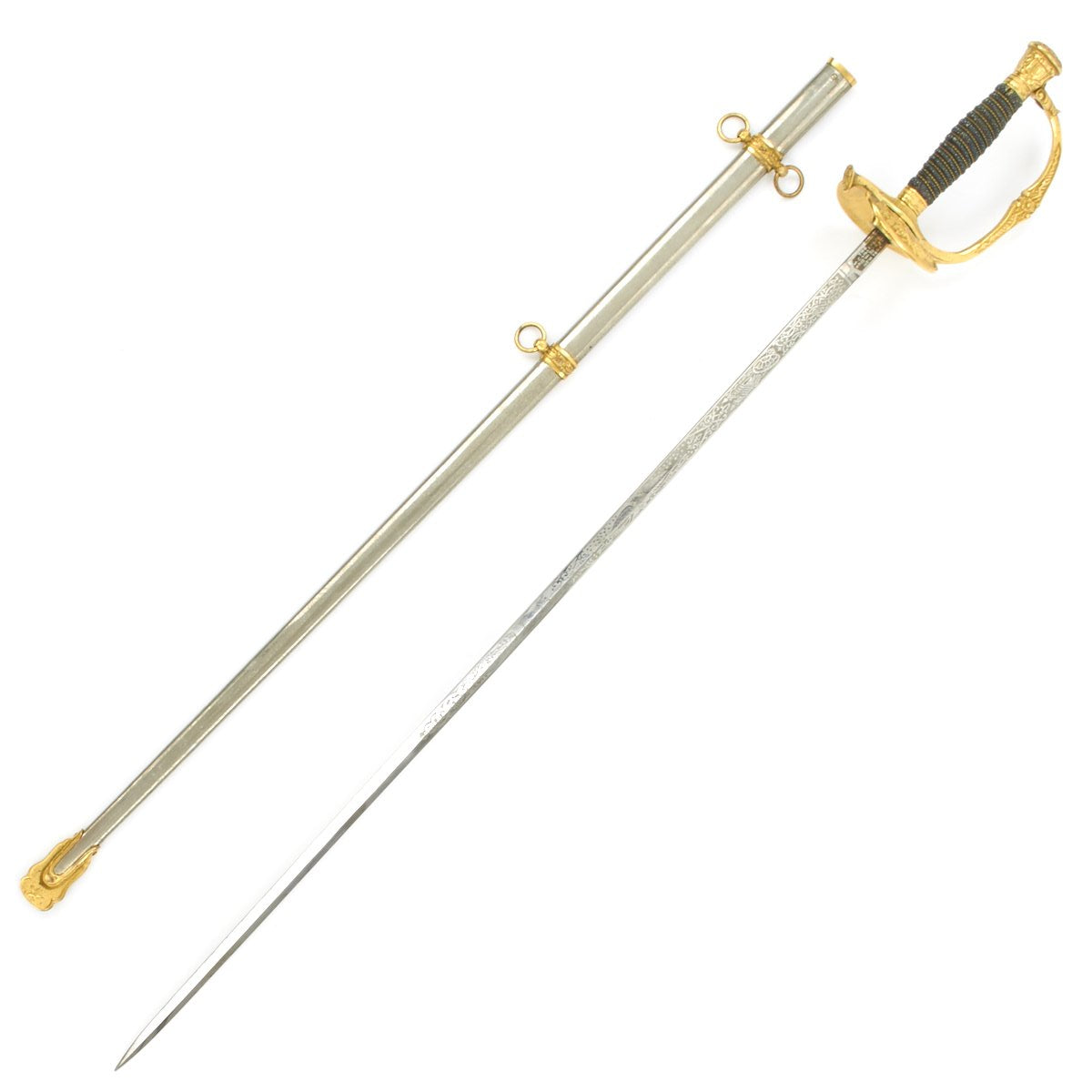 Original Item: Only One Available. This is the standard U.S. Staff and Field Officer's Dress or Parade Sword Model 1860, a pattern first used during the Civil War, which was in service until 1902. This example however is a particularly upmarket version, with and etched nickel-plated blade and many high end gilt brass alloy appointments. Officer's were usually responsible for purchasing their own dress swords, so they varied considerably in quality and style. This sword is marked on the ricasso by the company that marketed it as part of the etching: