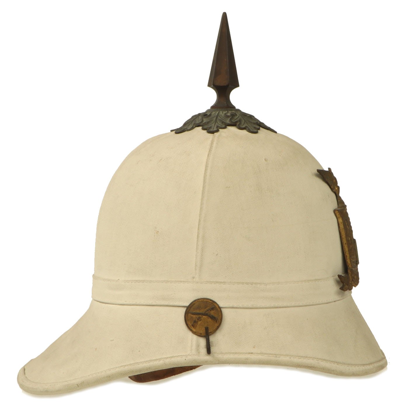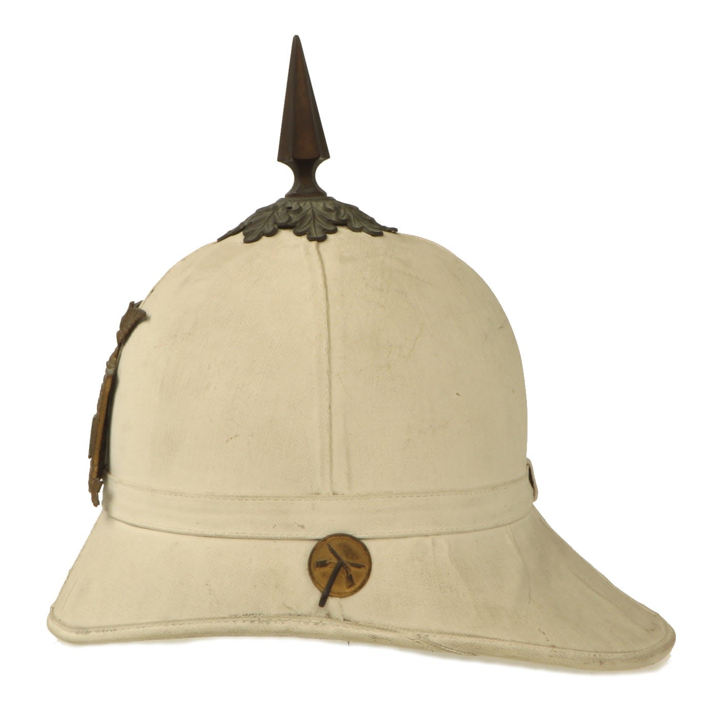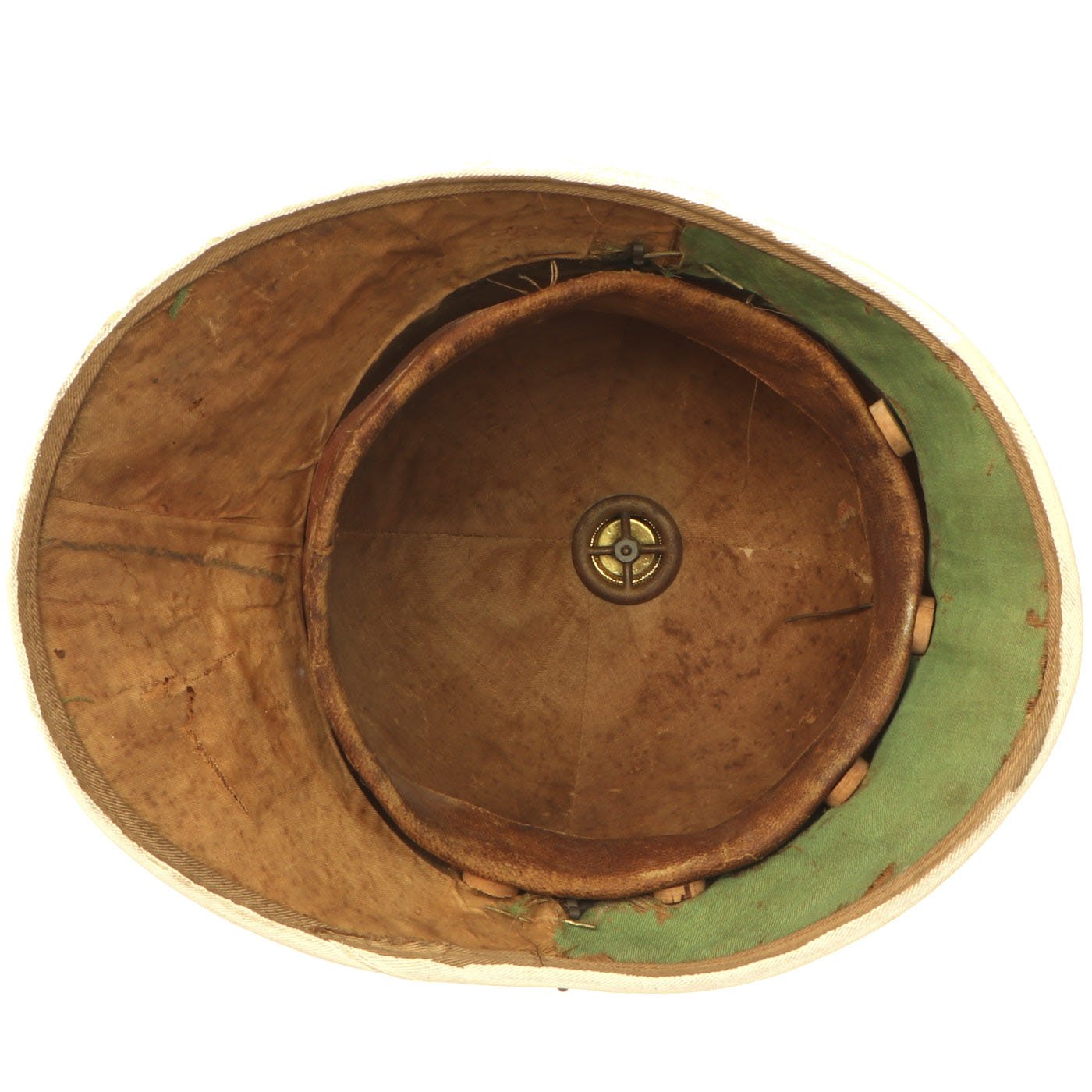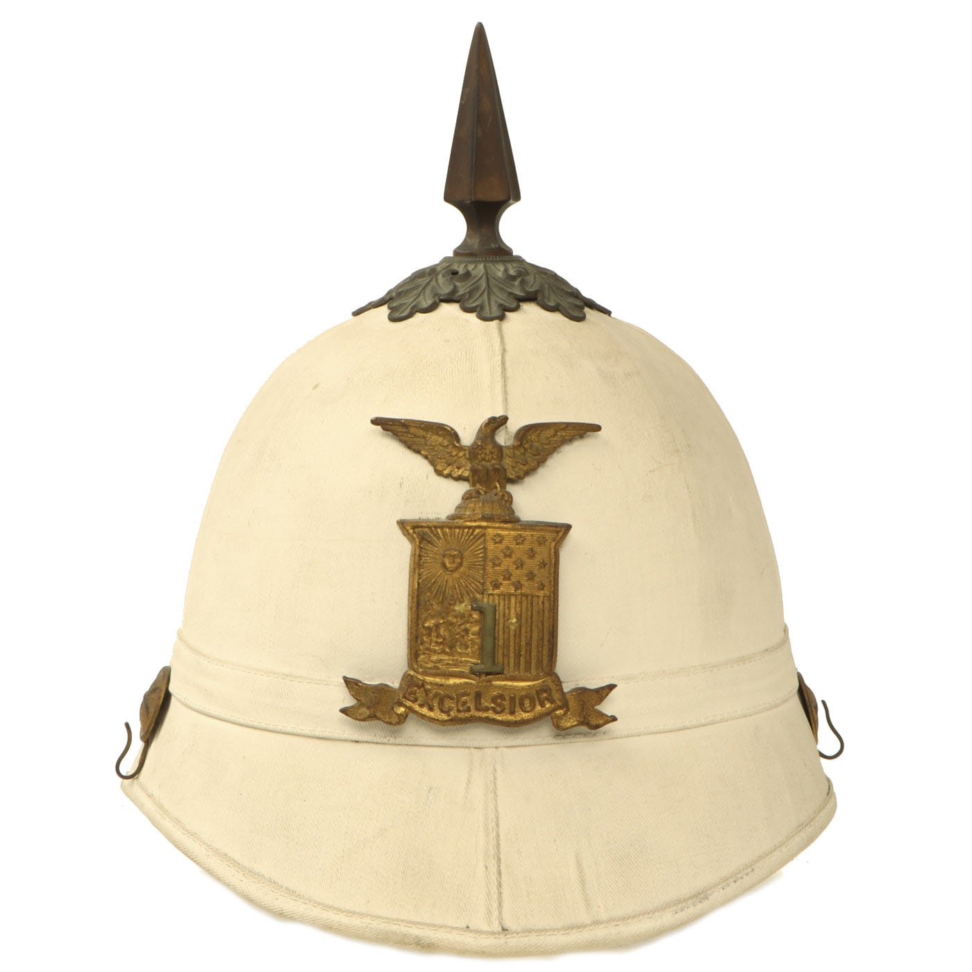 Original Item: One Only. Much like our European cousins in the 1880s, the U.S. Army started to adopted spiked pith helmets, sometimes in white, with all brass mounts and occasionally plumes. These saw active service in the Spanish American War of 1898 especially in the tropical climate in Cuba. While often called "Pith Helmets", the U.S. variety was usually made of cork or other materials.