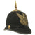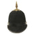 This helmet is in black, and it really is quite striking. This is not the type of helmet that was worn in the field, but instead one intended for use with the "dress" uniform for ceremonial occasions. It beautifully made from cork covered with black fabric, with out any hooks for chin scales, indicating that it is for an enlisted soldier. The Maker's name is marked inside under the liner leather sweatband :-