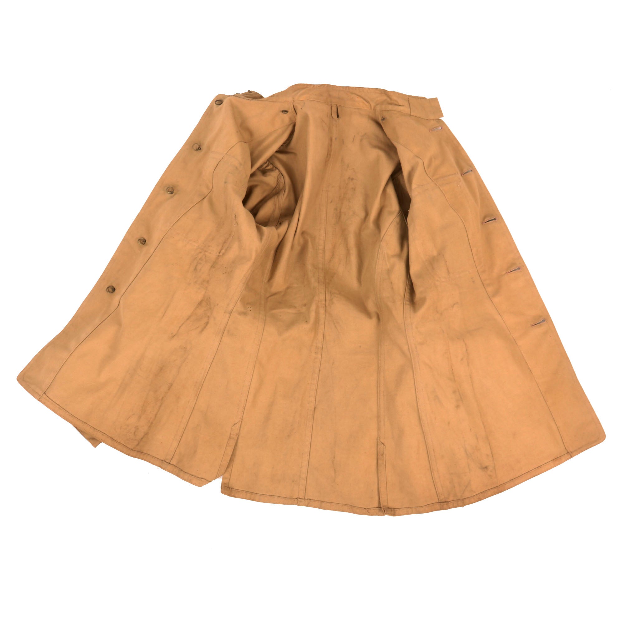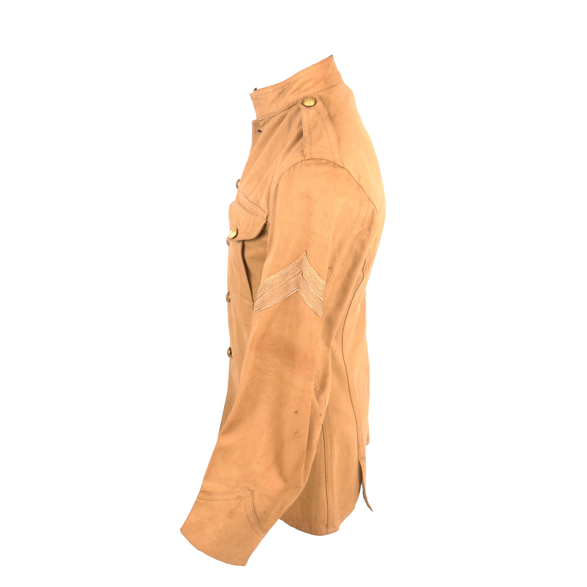 There is no name or set of initials in the uniform that we could find. Specifications from this period are particularly murky, but from what we have found, this is an earlier pattern jacket. For some, these circa 1900 khaki coats are considered the “holy grail” for collectors of U.S. Marine Corps material.