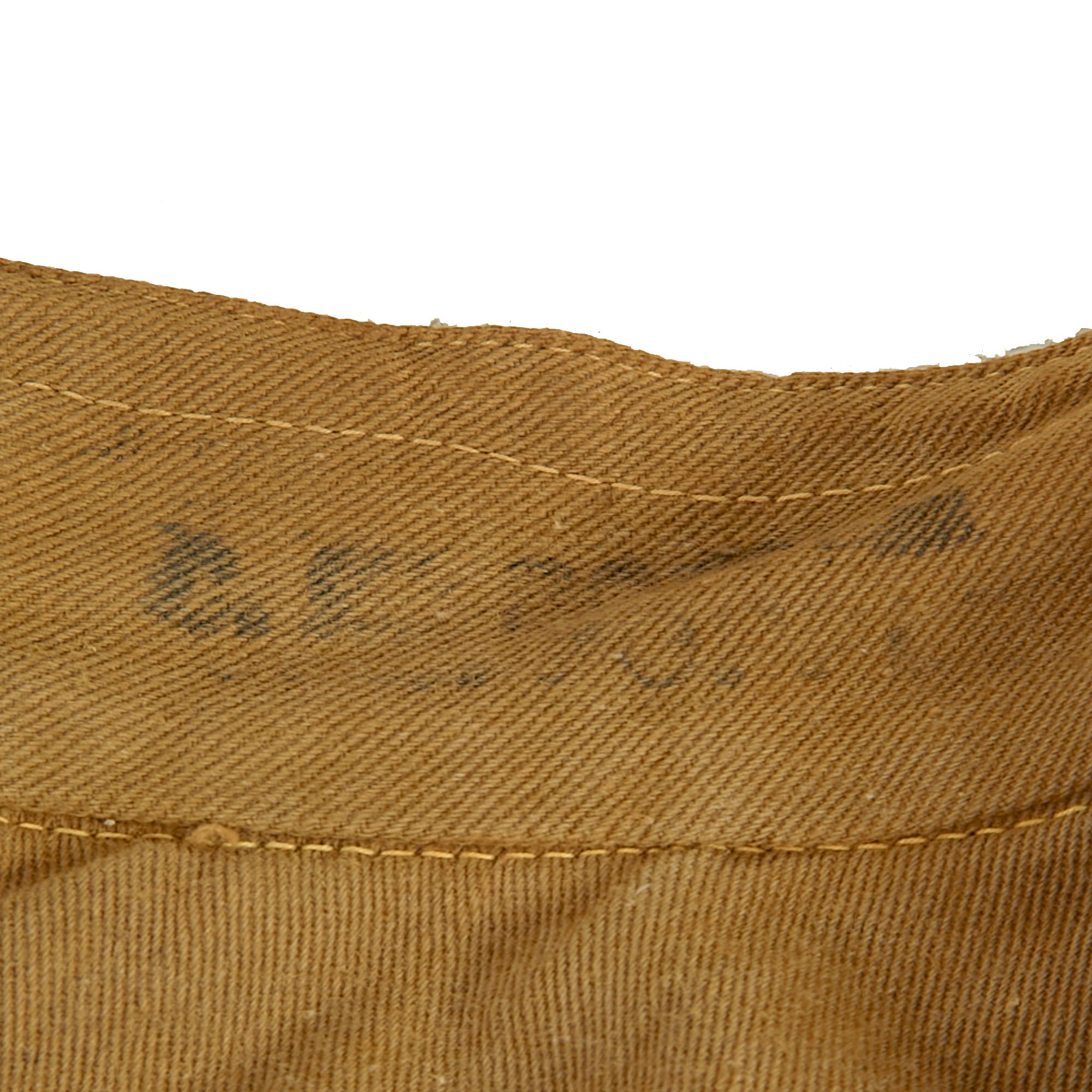 The tunic is in wonderful condition and does show signs of wear in a hot, humid climate. There is staining present and the tunic itself presents itself as “salty” with a starch like feel to it. There is no extensive damage present and this is honestly one of the best we have seen lately.