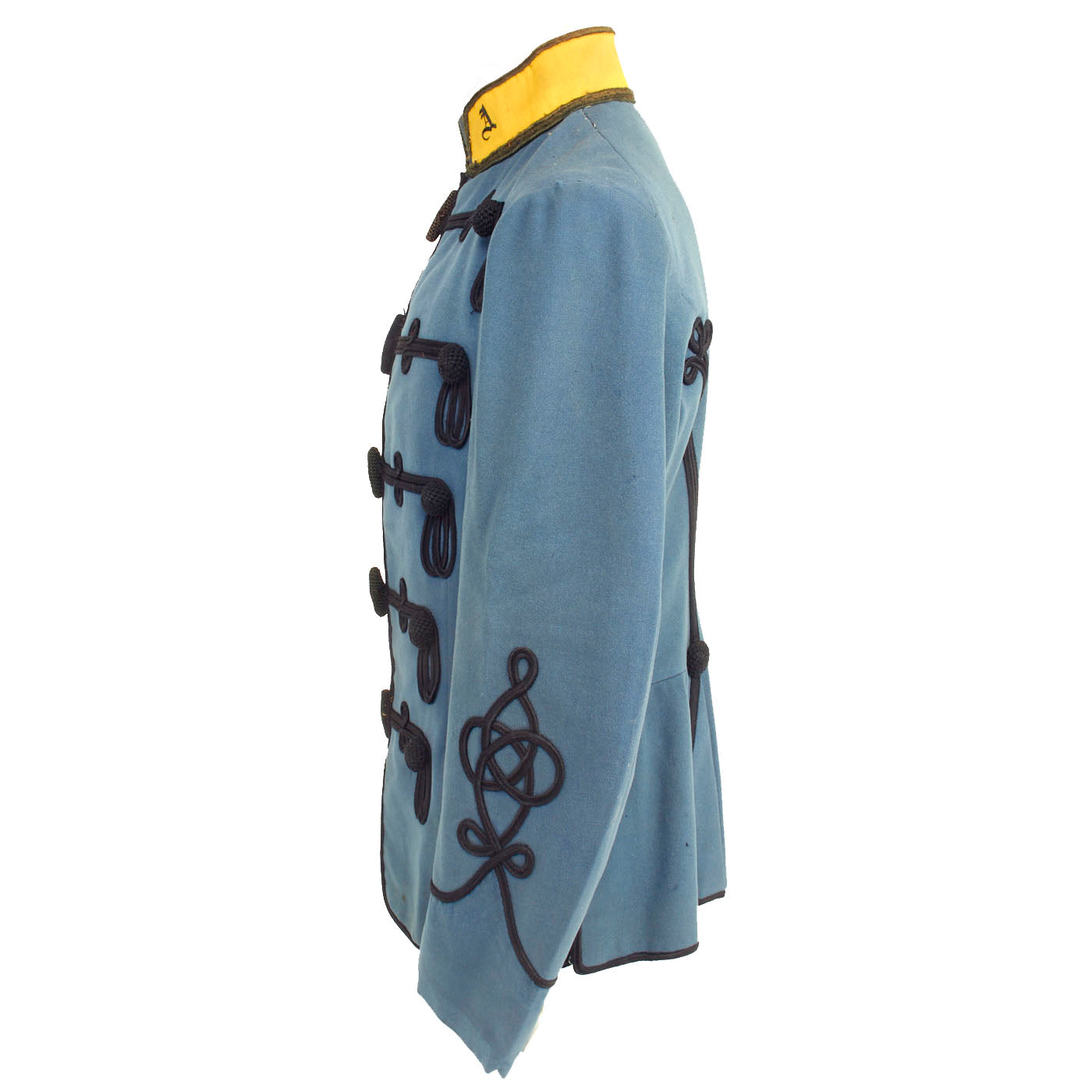 Original Item: Only One Available. This European inspired Hussar uniform was worn with pride by a member of Squadron A, New York Hussars in the year 1900. The squadron was established in 1884 by a group of wealthy young men as an equestrian club, however, after membership was extended to Captain Charles F .Roe, US Cavalry, their efforts were recognized by having 53 of their members inducted into the New York National Guard in 1889. They were frequently called for duty to provide escorts for Presidents and other notables visiting New York City. During the Spanish-American War Squadron A served in Puerto Rico and during WWI members of Squadron A earned 3 Medals of Honor, 17 Legions of Honor and 24 Croix de Guerre.