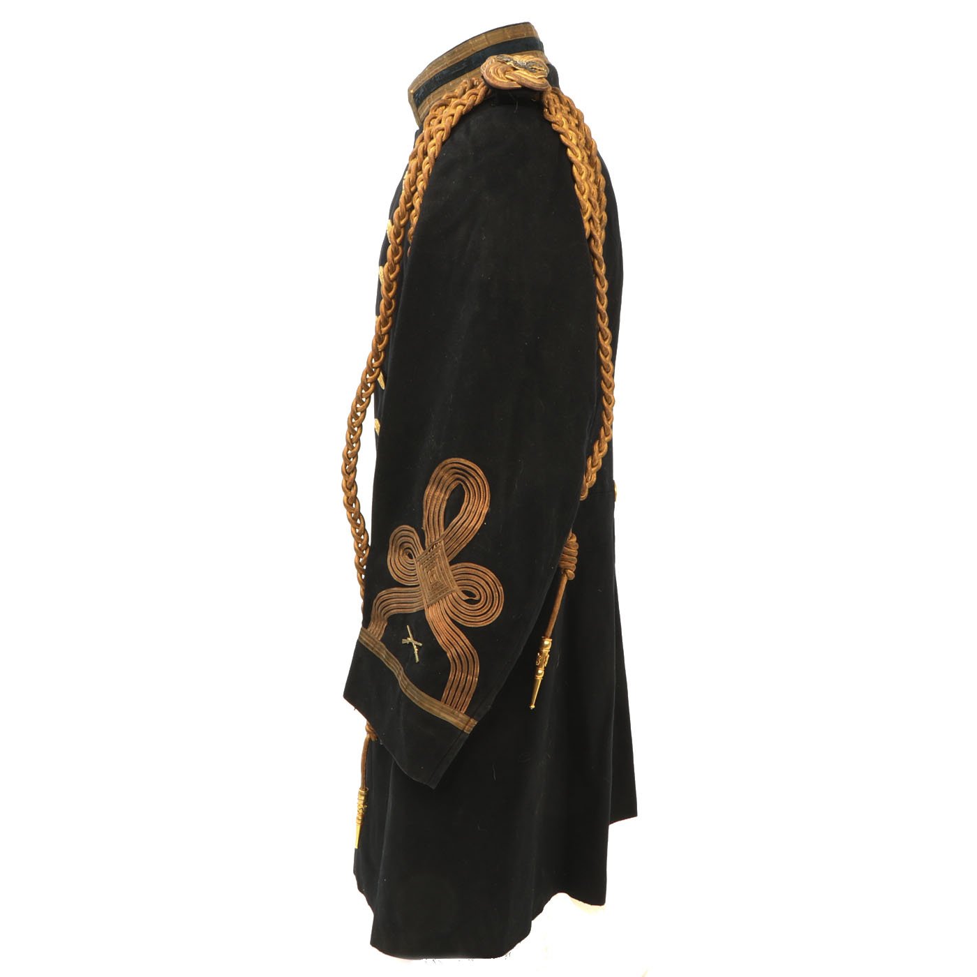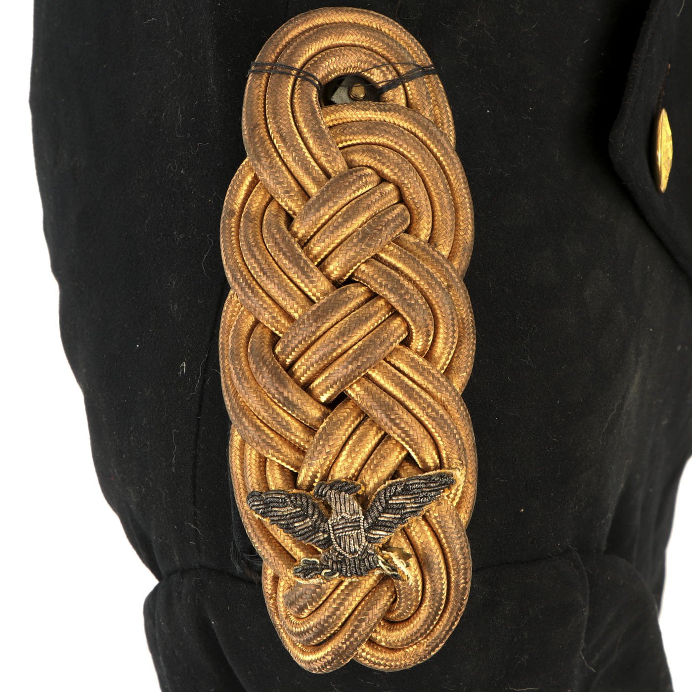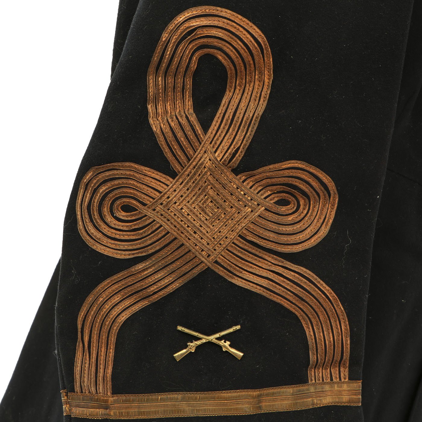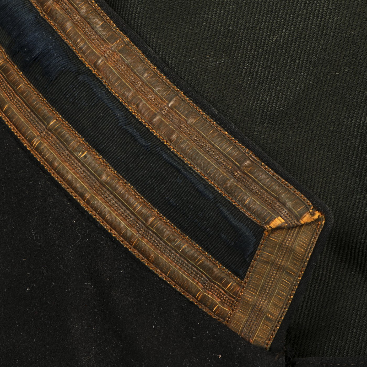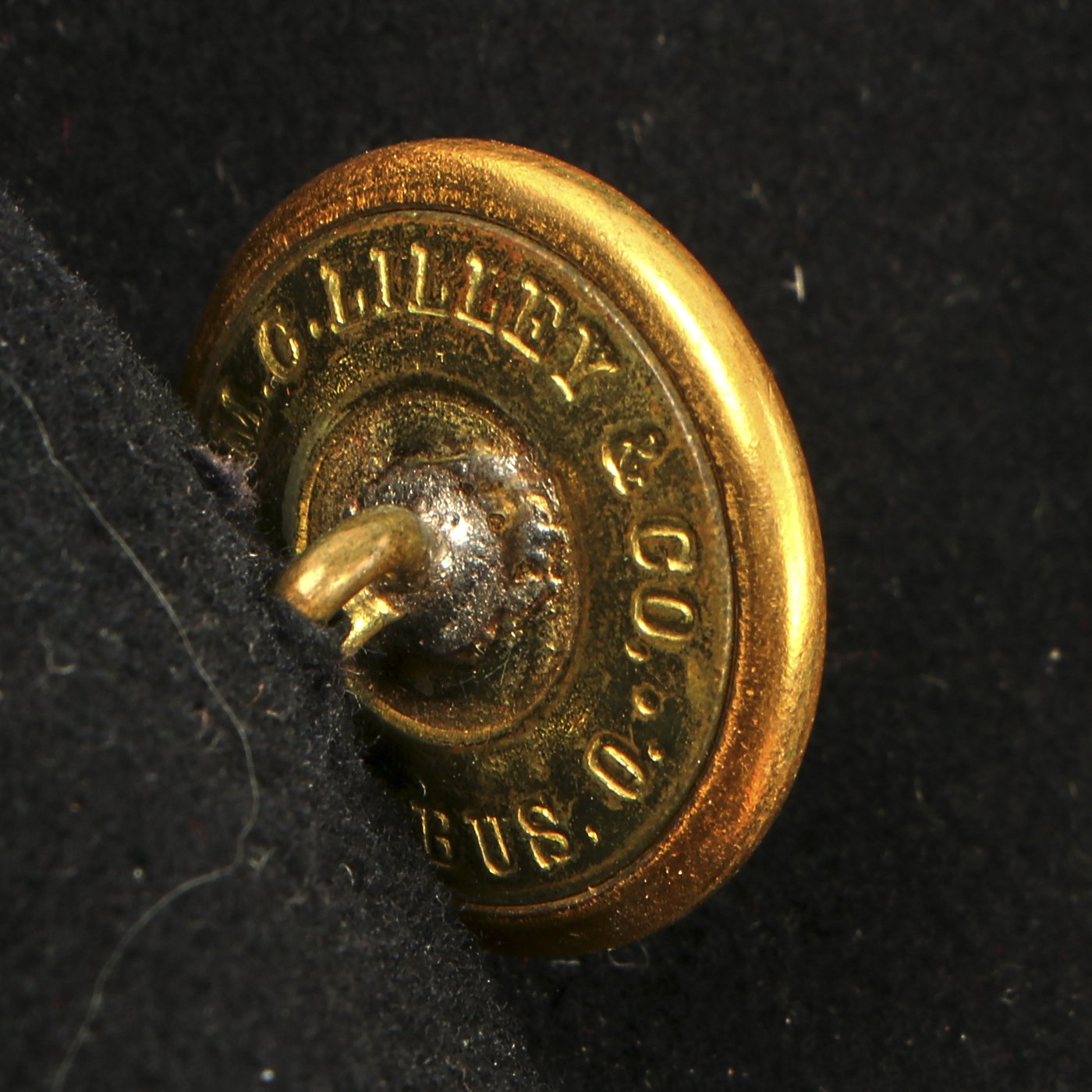 Original Item: Only One Available. U.S. Army 1902 Officer's Blue Wool Frock Coat. Bullion embroidered crossed rifles pins on each sleeve. Collar bordered with gold bullion tape. Heavy gold bullion interwoven shoulder boards with bullion Colonel insignia on both. Gold bullion entwined tape on sleeves to show rank, four rows for rank of Colonel. The buttons back marked and all present but one. It has a very nice quilted lining with two breast pockets and two hidden rear skirt pockets. The condition is very good with little wear.