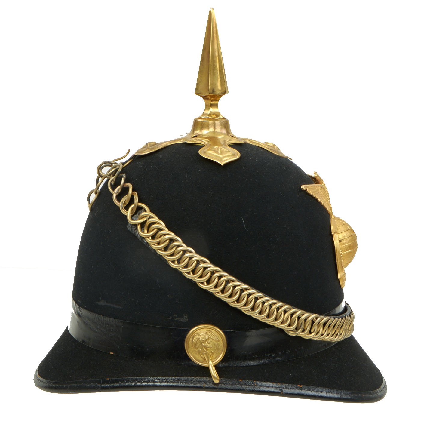 Original Item: Only One Available. Much like our European cousins in the 1880s, the U.S. military adopted spiked pith helmets, often in white, with all brass mounts and occasionally plumes. These saw active service in the Spanish American War of 1898 especially in the tropical climate in Cuba. While often referred to as "pith helmets" in the broad sense, it was made from cork, like many European variants, such as the Wolseley pattern used by the British.