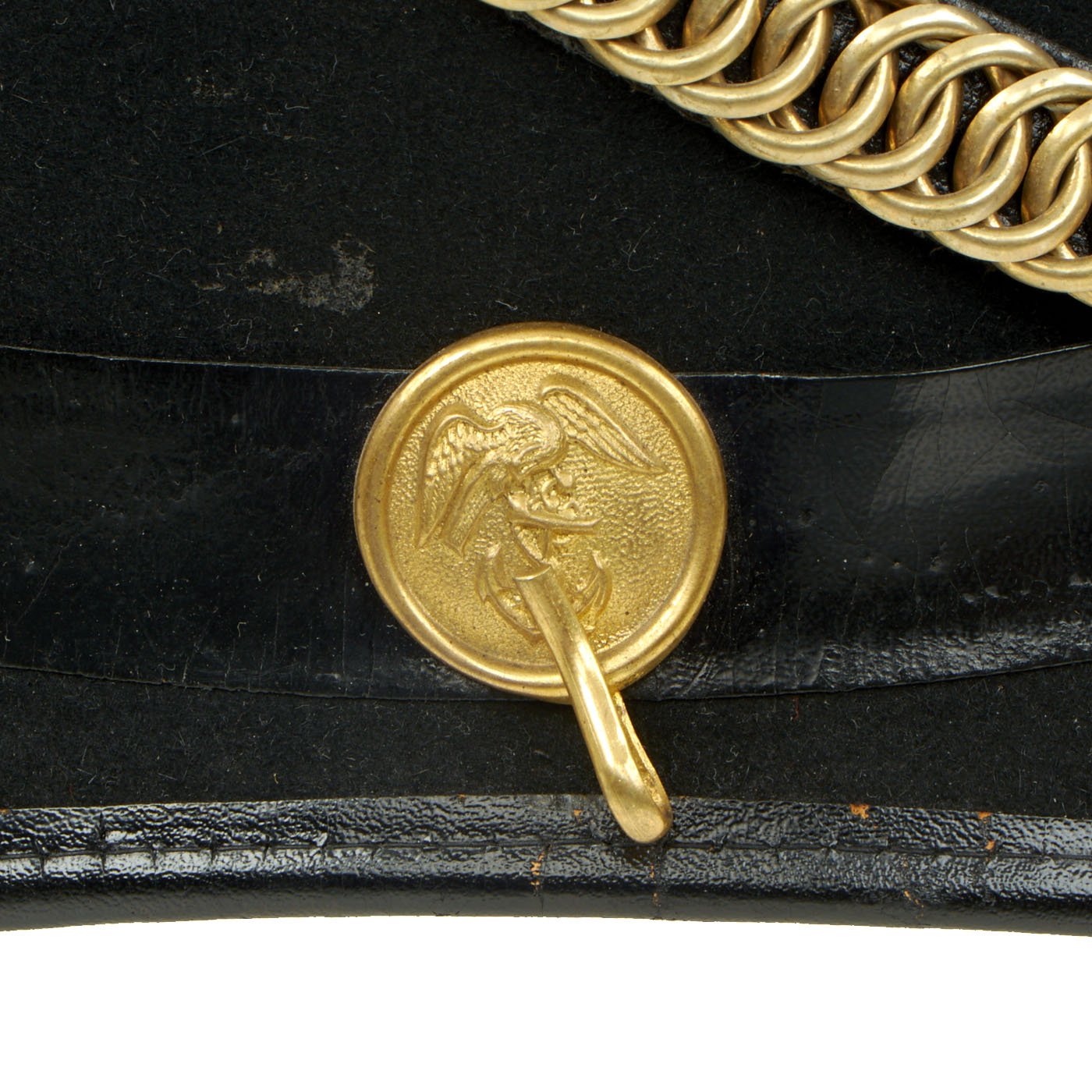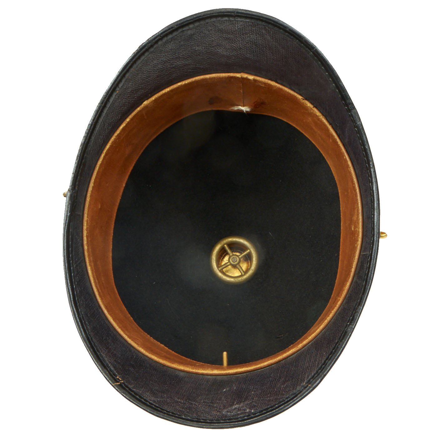 The Helmet plate displays the Eagle Globe Anchor device to the front, gilt spike and concentric ring chinstrap. Size is approximately US 7 (56cm).