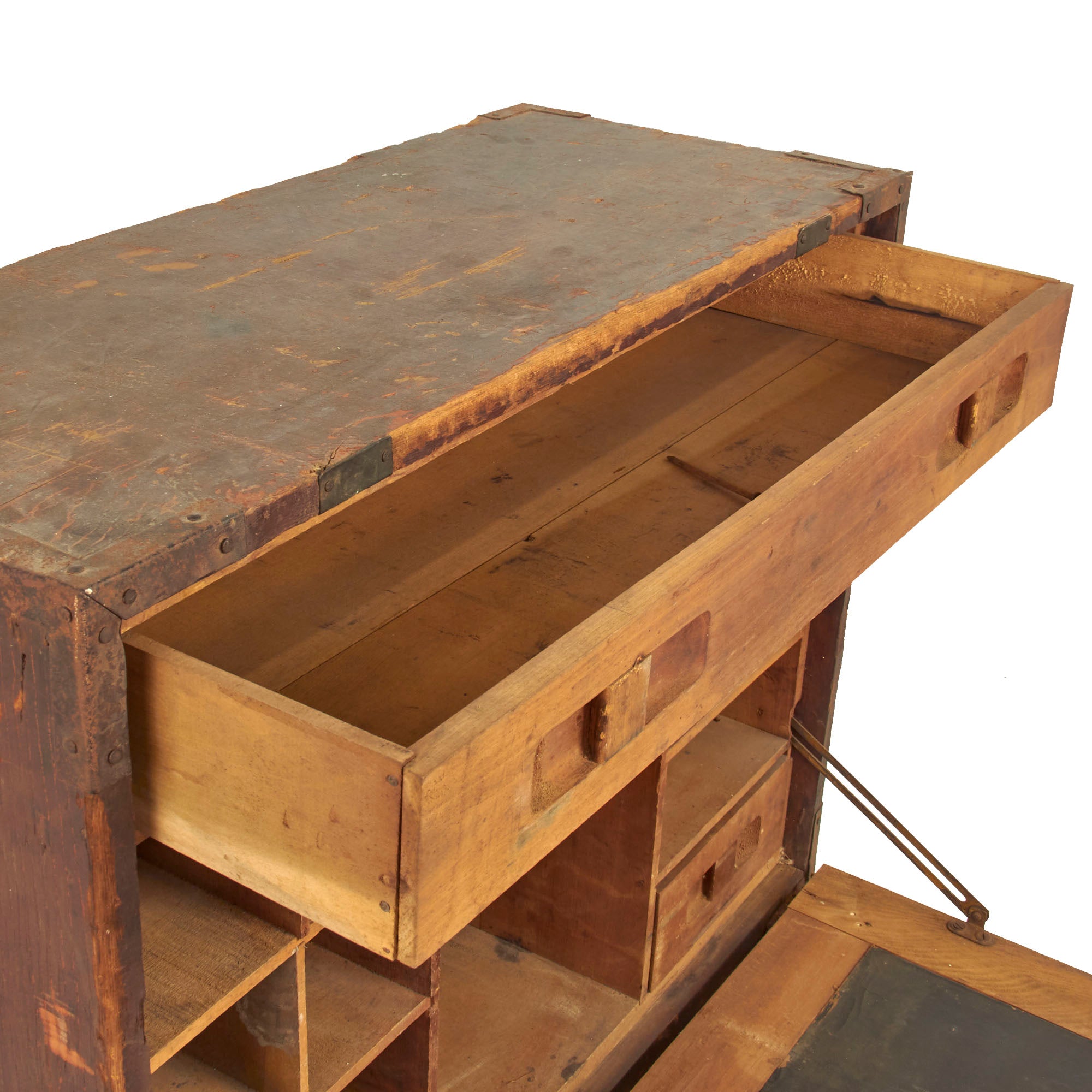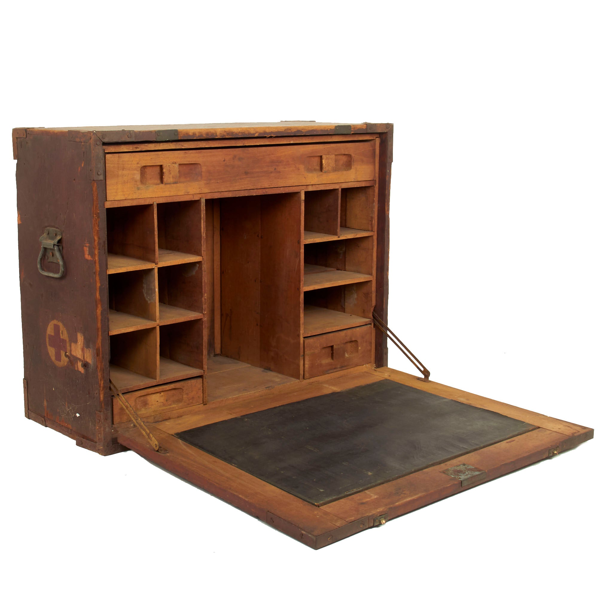 Original Items: Only One Available. Now this is a wonderful piece of military history! This may not seem like much but this is one of the most crucial elements you can find in the rear on any battlefield. These desks has a wide variety of uses, whether it be military planning, storage or in this case for medical purposes. A field desk is a portable desk which is meant to be used in rear areas near a battlefield and moved around rather frequently in difficult conditions. It is in contrast to the campaign desk, which is usually heavier and meant for areas further in the rear.
