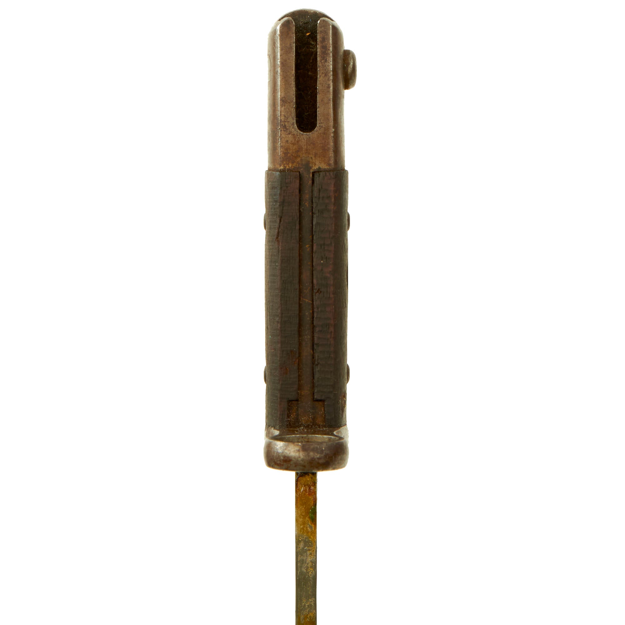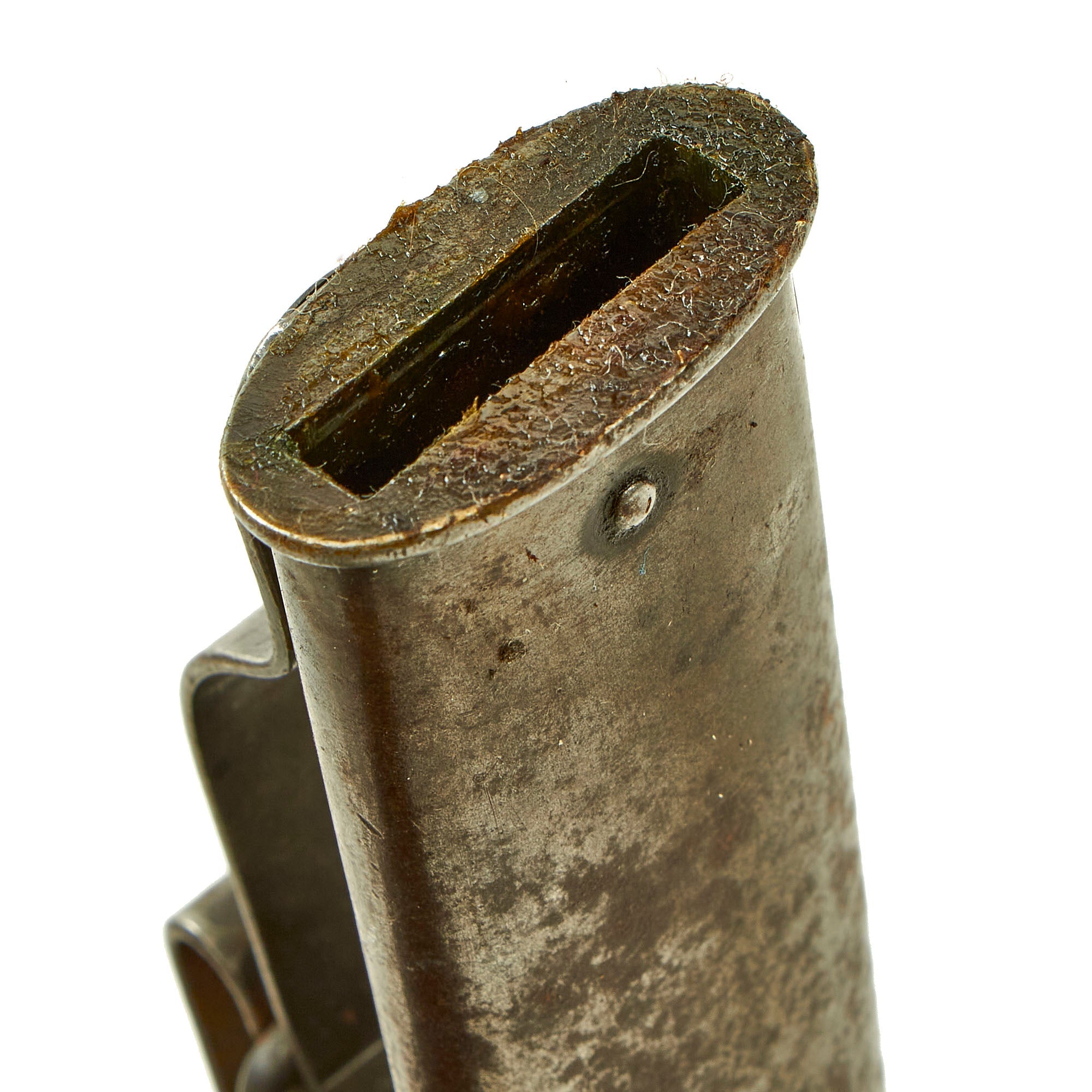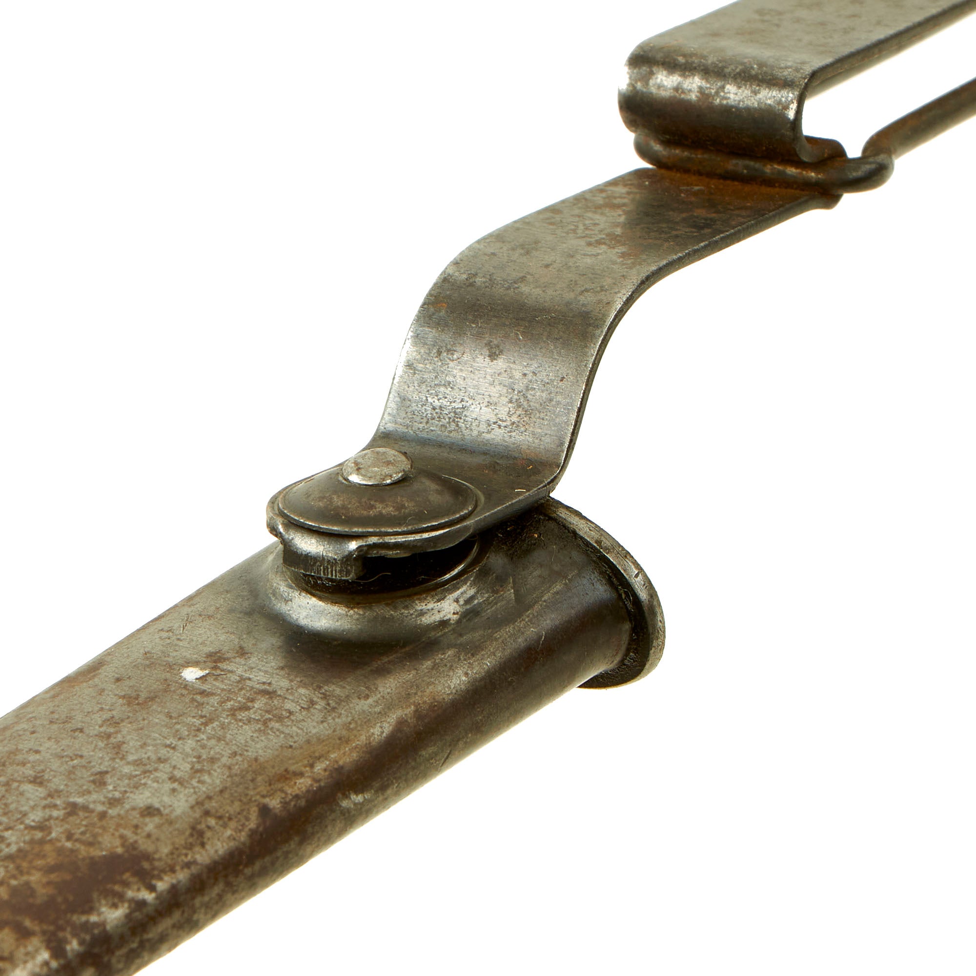 Original Item: Only One Available. These are something that we have only ever had very few of but appear to be making a comeback! It is a Pre WWI, Spanish-American War dated U.S. M1892 bayonet, made for the Springfield Model 1892–99 Krag-Jørgensen rifles, some of which were still in use during WWI. It is fitted with its original all steel scabbard with a swivel belt loop on the back. These are very rarely seen on today's market, especially with the scabbard included and fully intact.