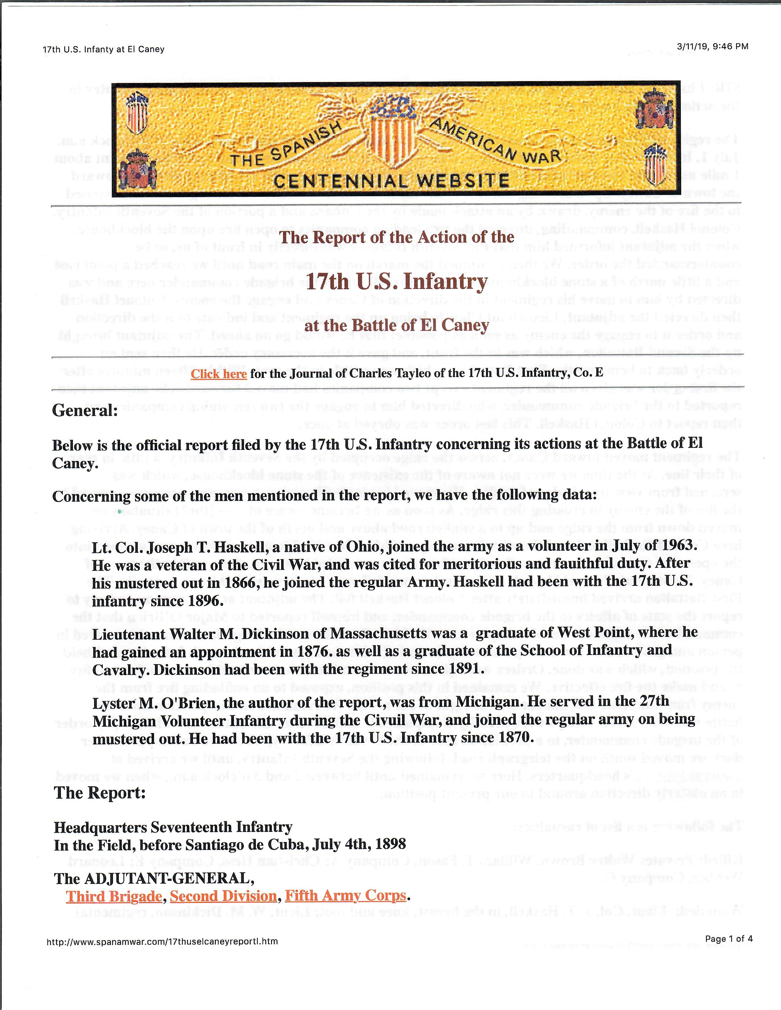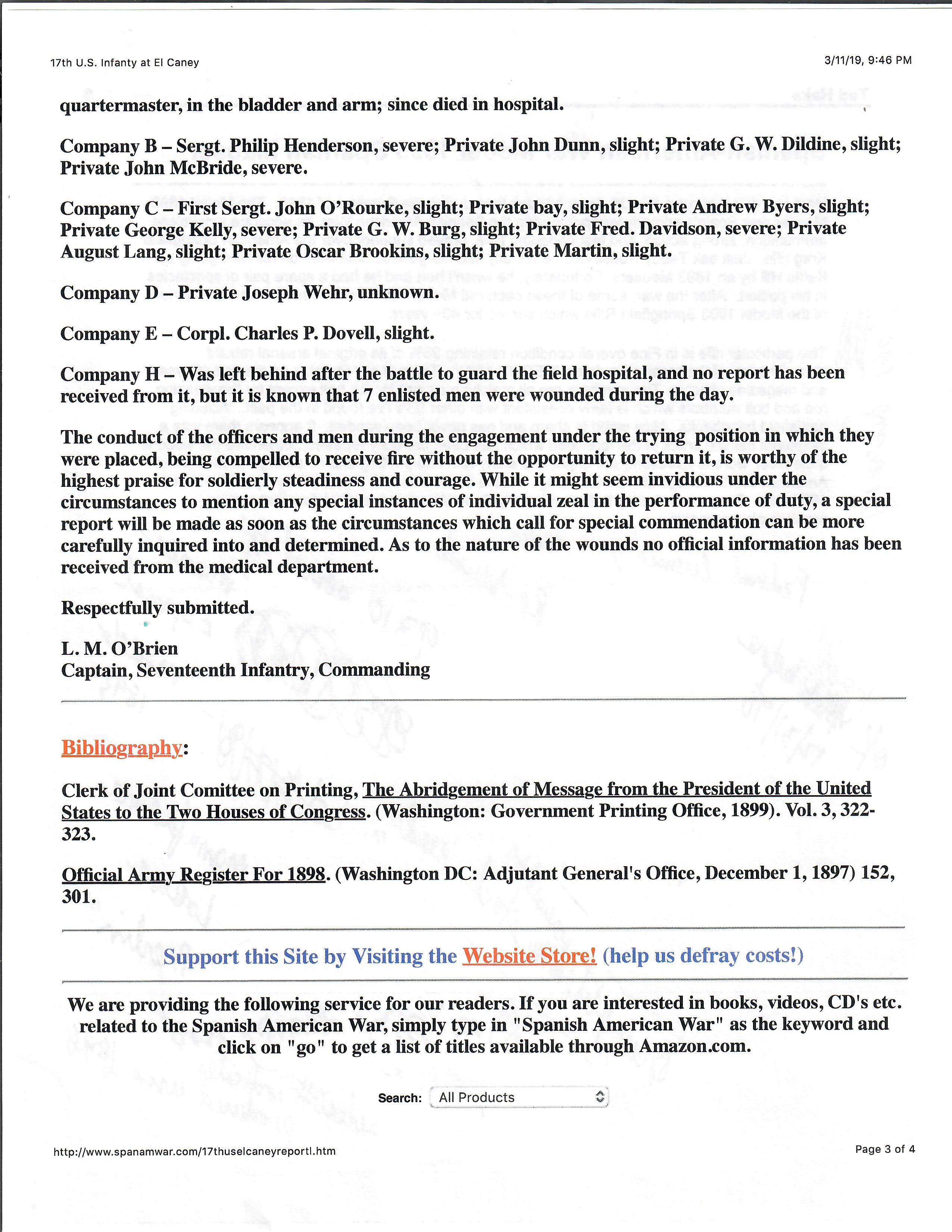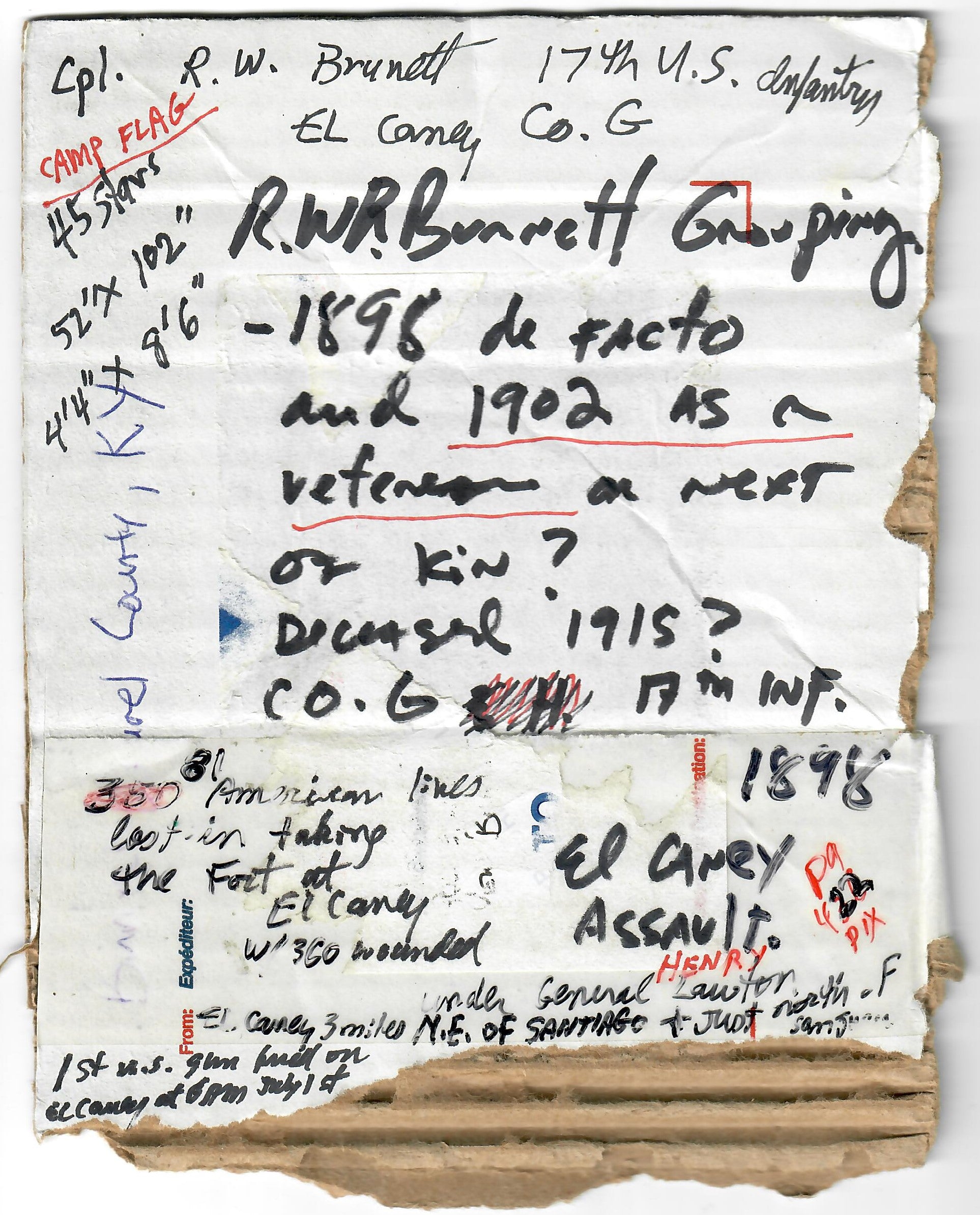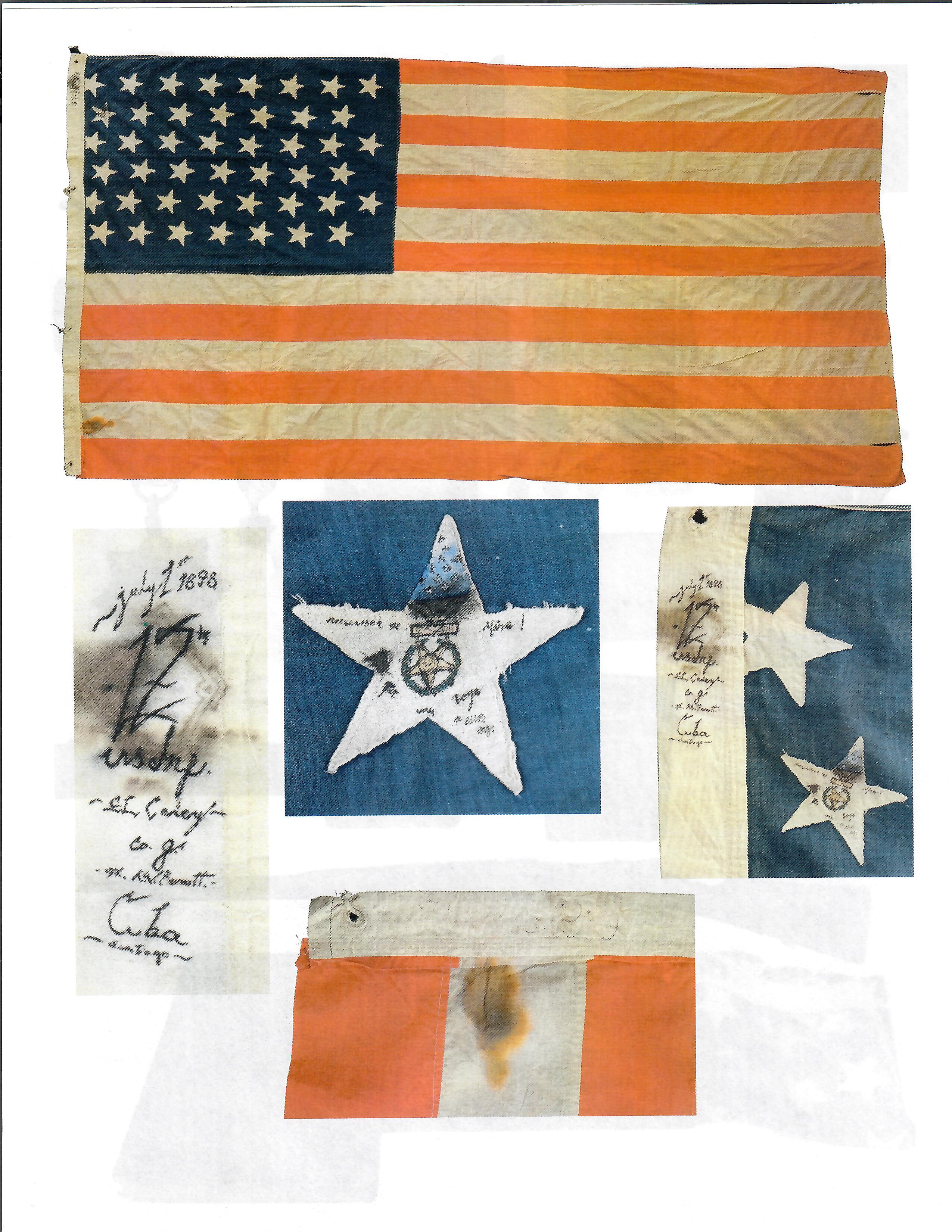 Corporal R.W. Burnett of Co G of the 17 US Infantry brought home this remarkable group, 45 Star Camp Flag, a captured Mauser Rifle, and several period books and pictures. The 17 U.S. Infantry Regument as part of the 3 Brigade (Brig. Gen. Chaffee) of 1" Division and was one of several regular regiments which captured the Spanish blockhouse at El Caney on July 1, 1898 and was home stationed at Columbus, Ohio.