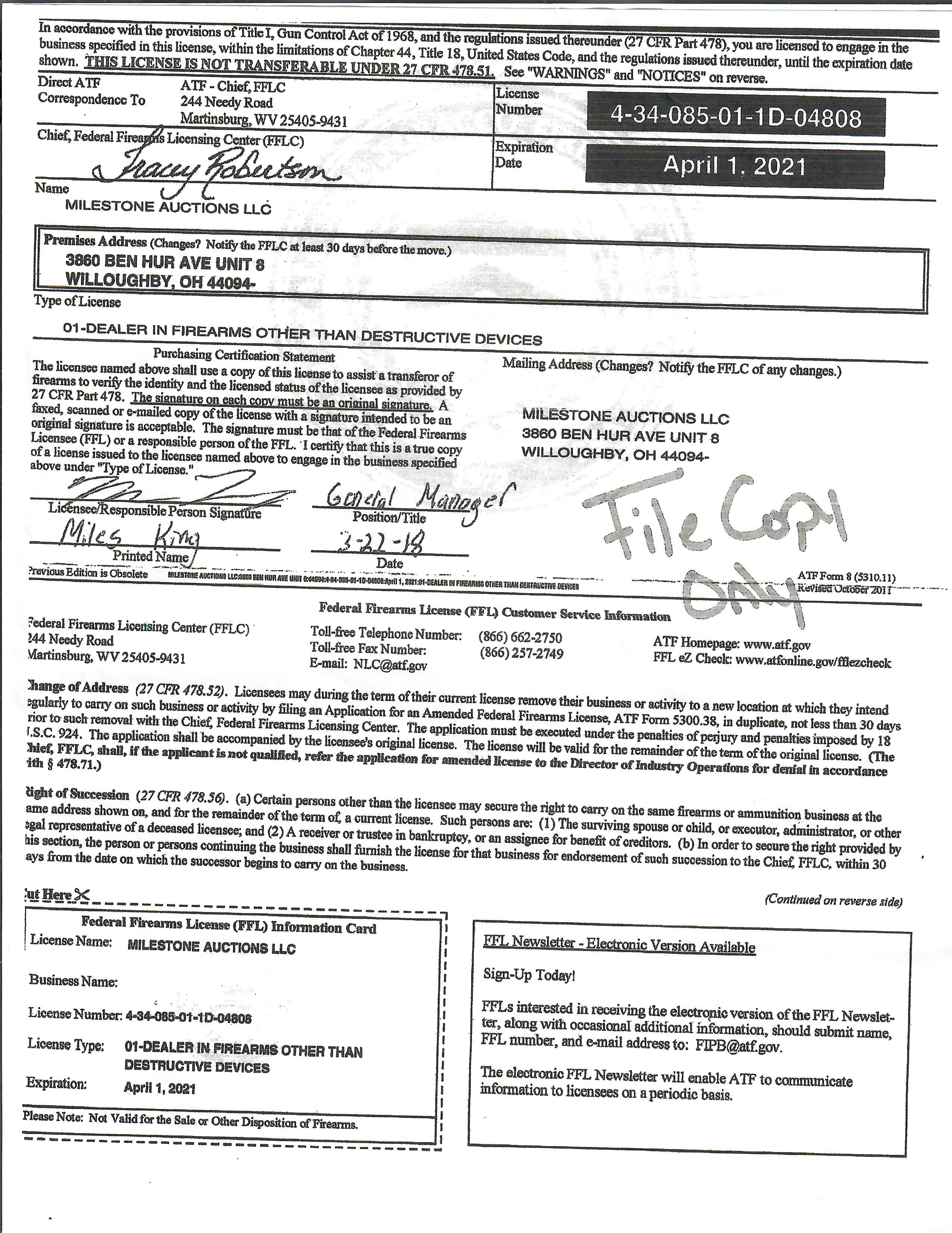 IMA considers all of our antique guns as non-firing, inoperable and/or inert. Title 18, U.S. Code, Section 921(a)(16) defines antique firearms as all guns made prior to 1899. This law exempts antique firearms from any form of gun control or special engineering because they are not legally considered firearms. No FFL, C&R or any license is required to possess, transport, sell or trade Antique guns. All rifles and muskets sold by IMA that were manufactured prior to 1899 are considered Antiques by the US BATF (United States Bureau of Alcohol, Tobacco & Firearms). Therefore, all of IMA's Antique guns may be shipped to most US States and most U.S. territories.