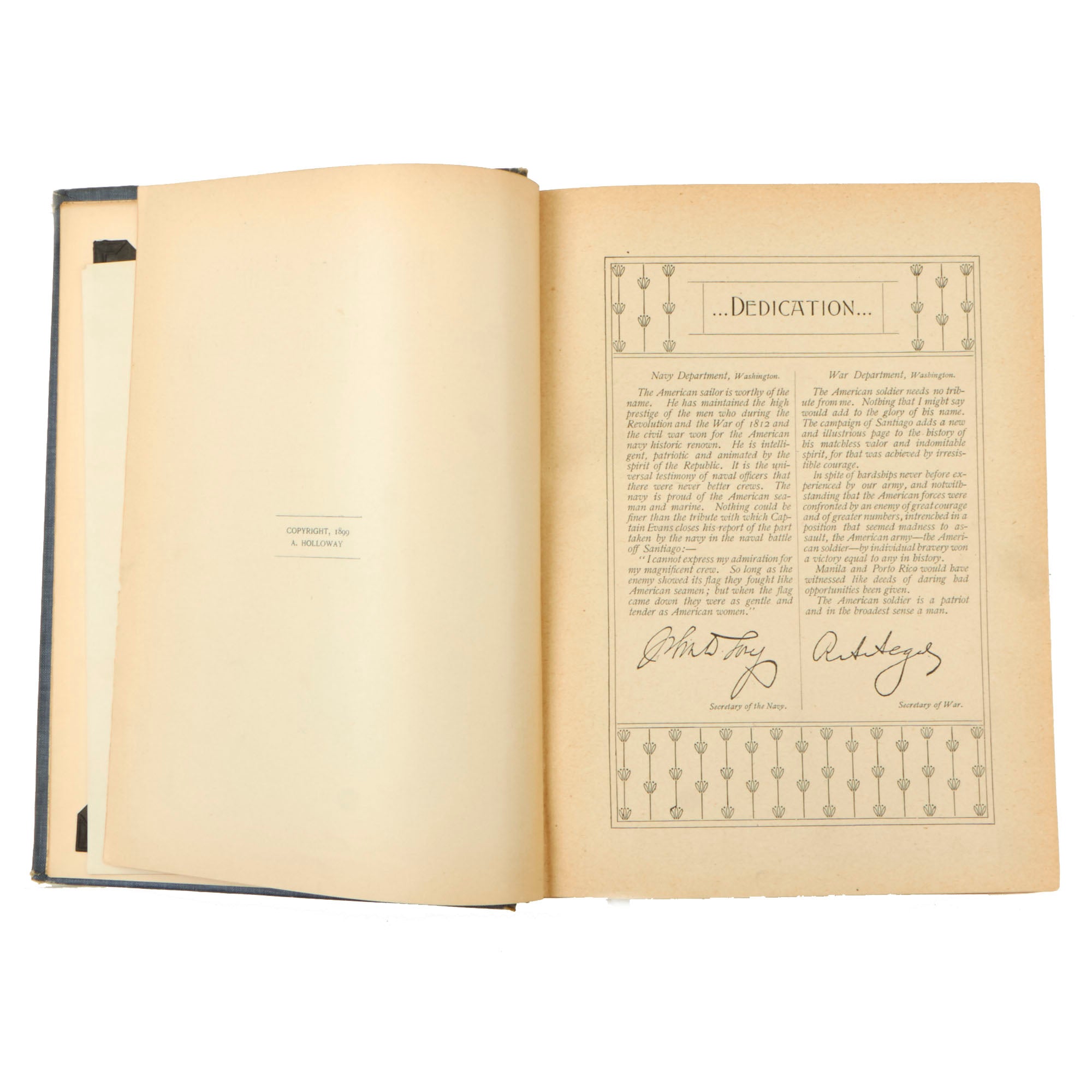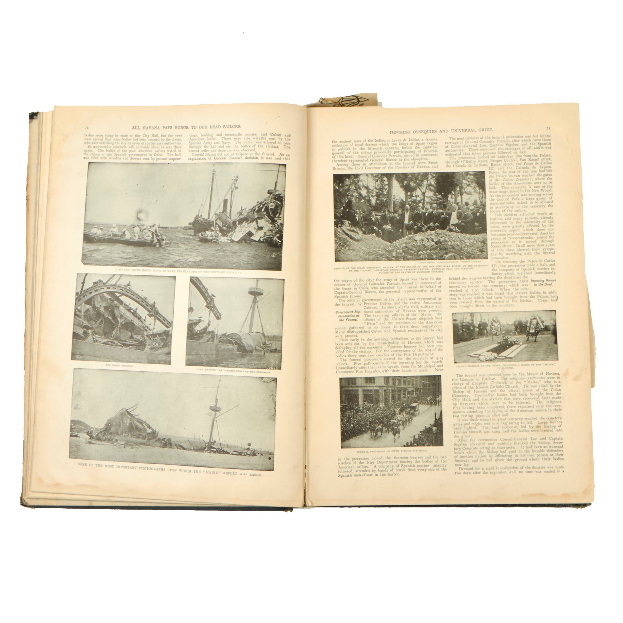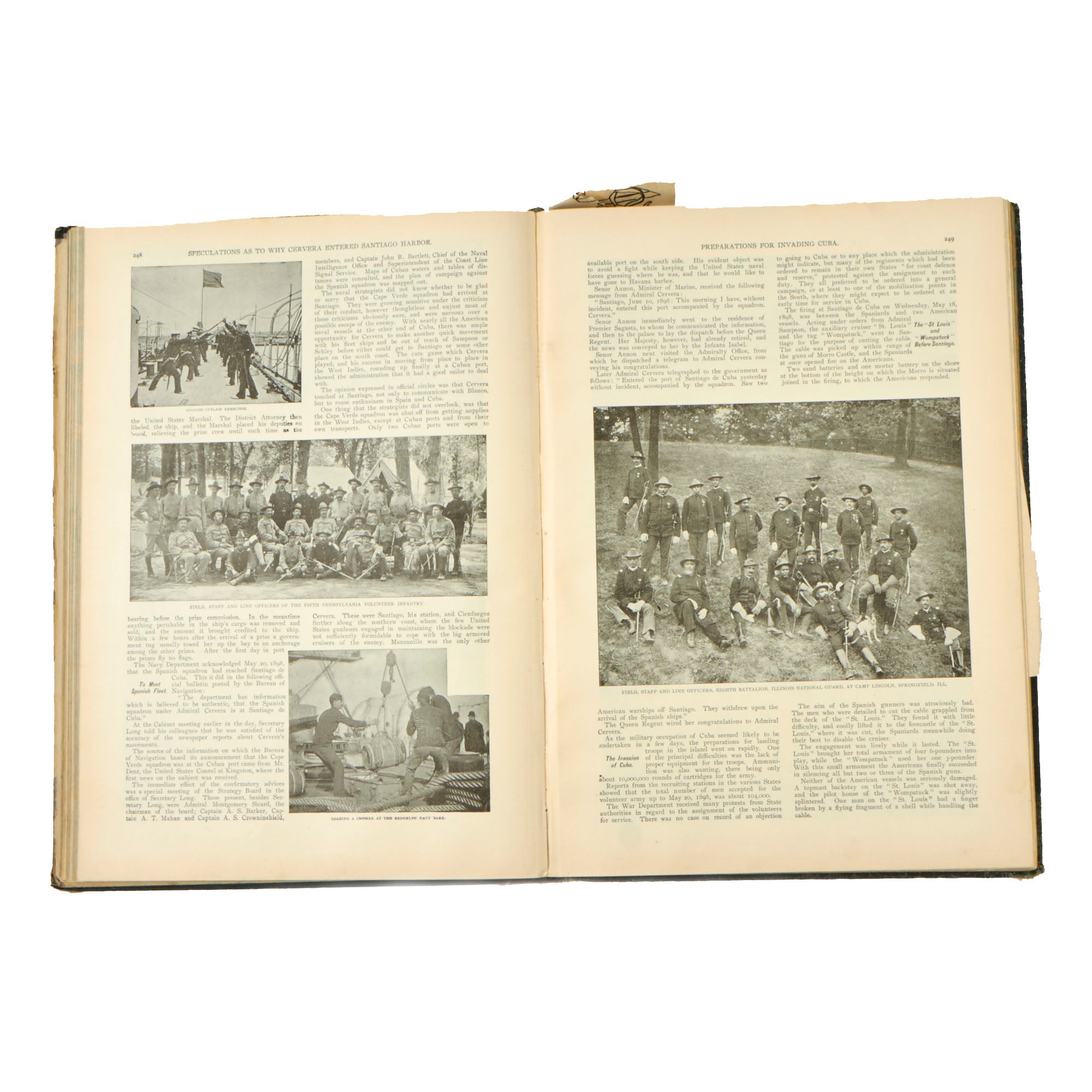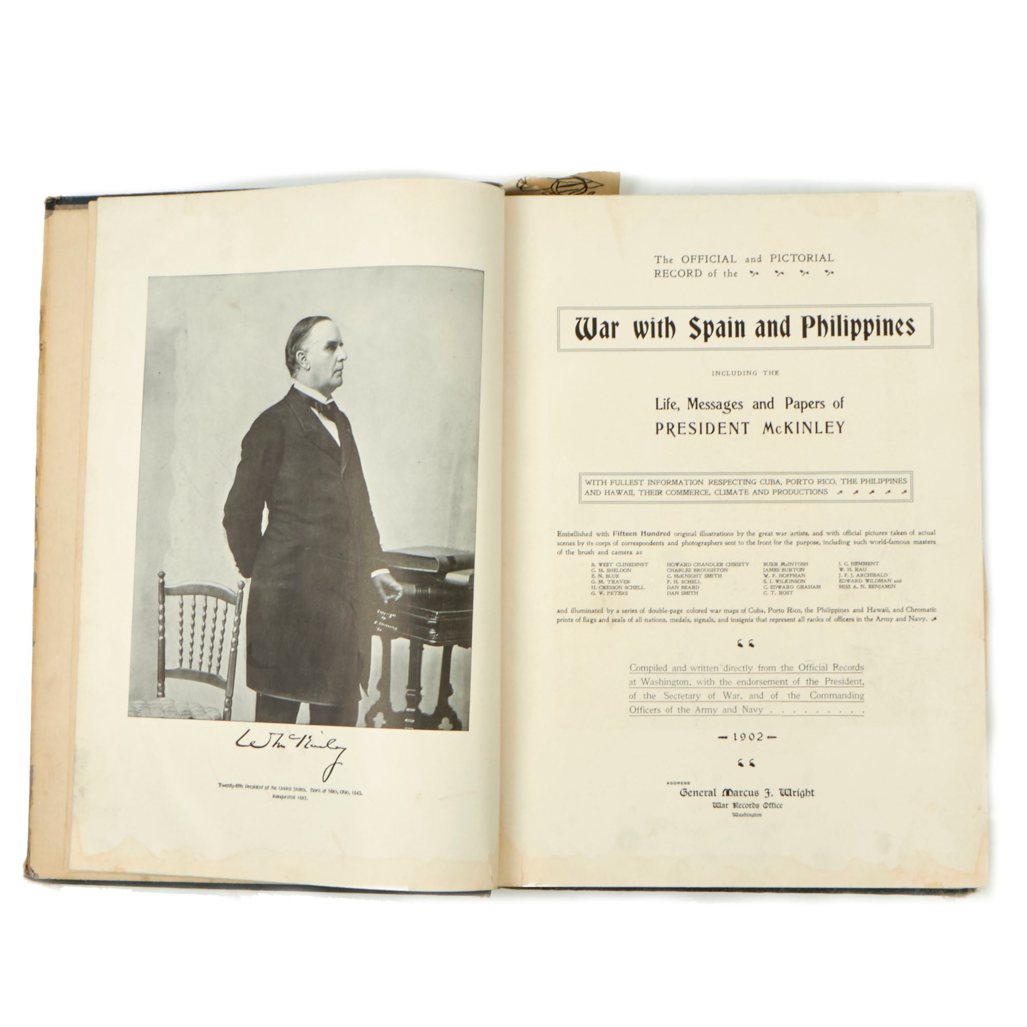 -Three books accompany, as found with the above items: two general histories of the Spanish- American War and Wright's massive Pictorial Record of the War with Spain and Philippines, containing 631 pages and published in 1902.