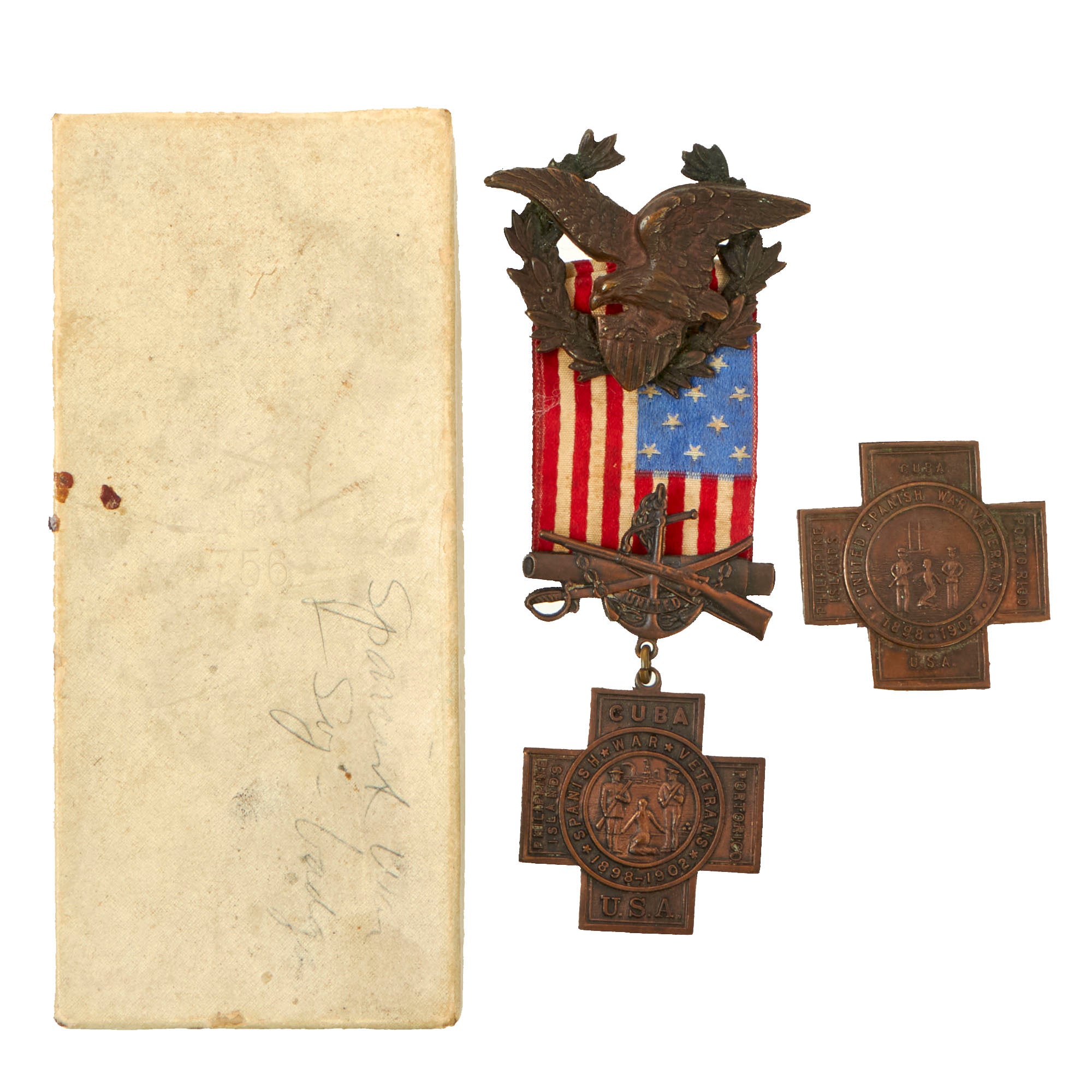 Original Items: Only One Group Available. This is an excellent grouping for Corporal GW Burnett of the 17th Infantry Regiment who fought during the Spanish-American War. The grouping is centered around an incredible captured Spanish Mauser Model 1893, which has a fantastic “souvenir” brass plate on the buttstock. The rifle was captured at Santiago De Cuba during the Battle of El Caney.
