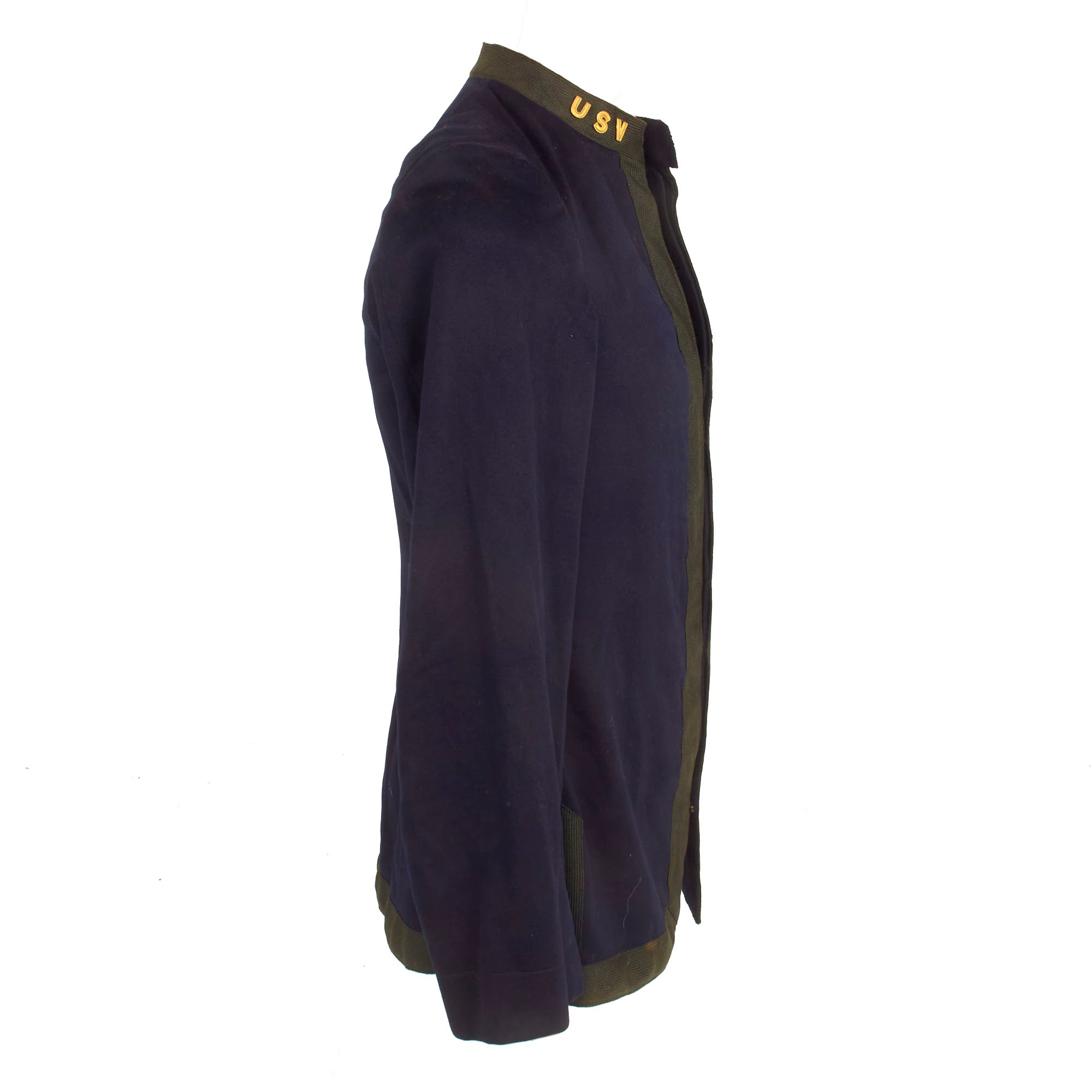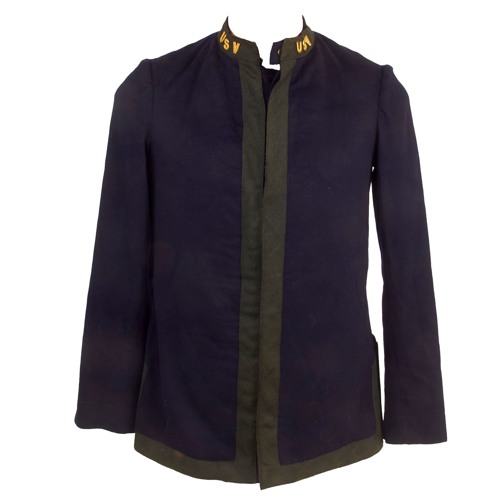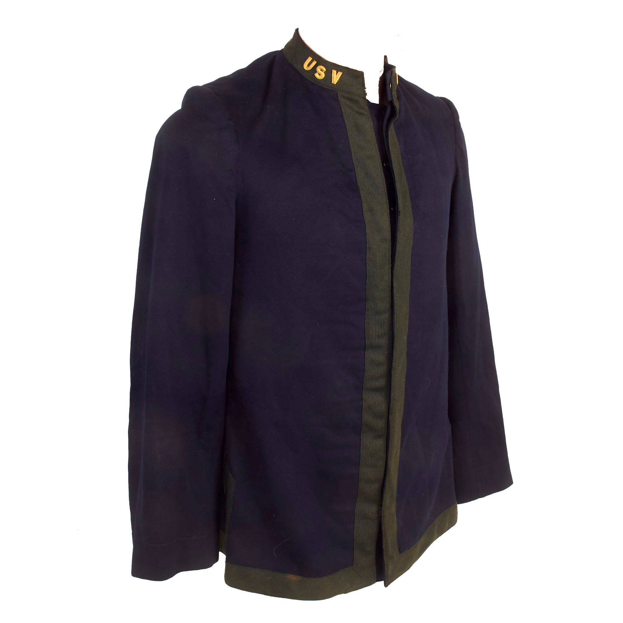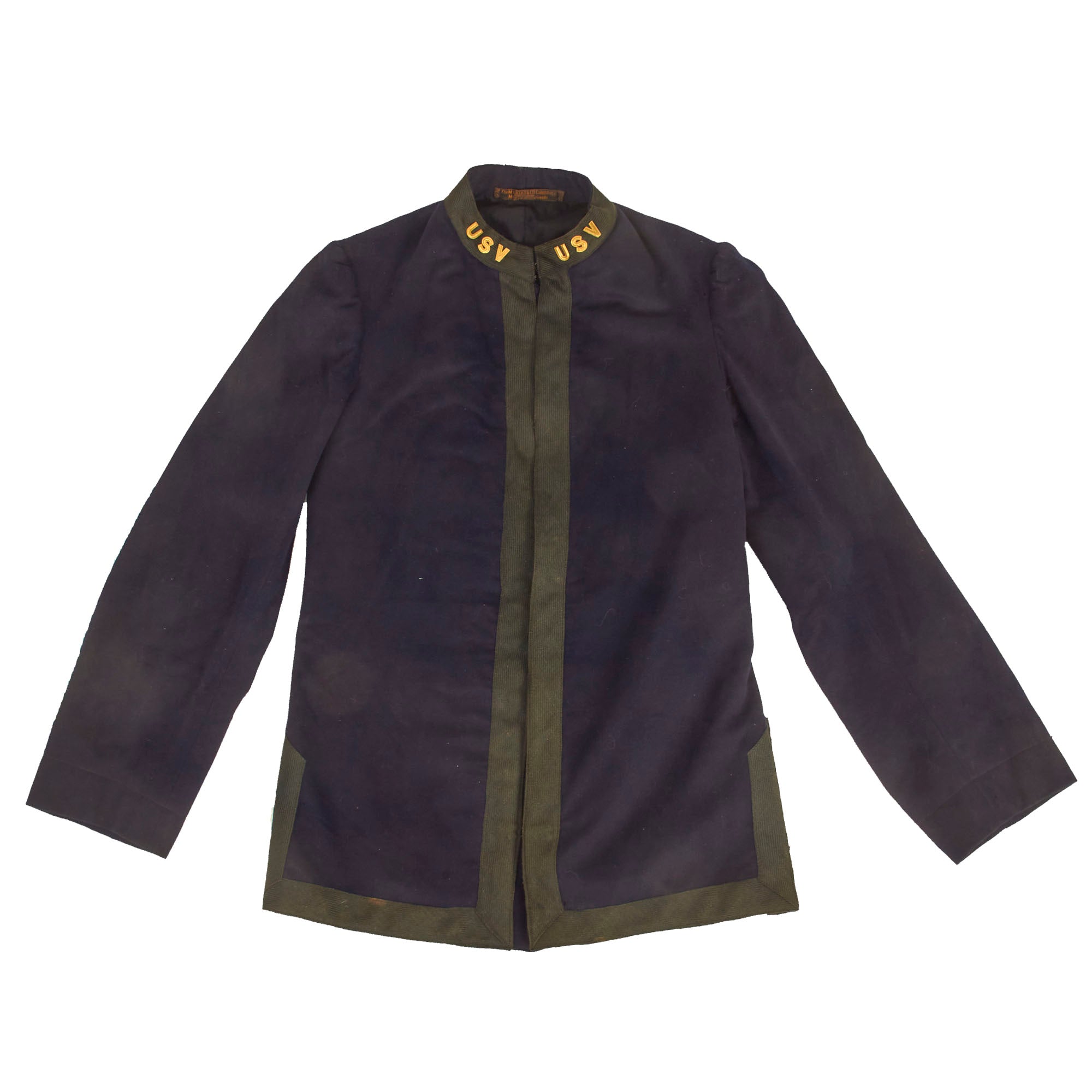 Original Item: Only One Available. This is a fantastic example of an excellent condition Model 1895 Officers Tunic, worn by a member of the United States Volunteers. The uniform is constructed of dark blue wool with a polished black cotton lining. The collar devices on this fine tailor made tunic is for the United States Volunteers and reads simply as U.S.V.