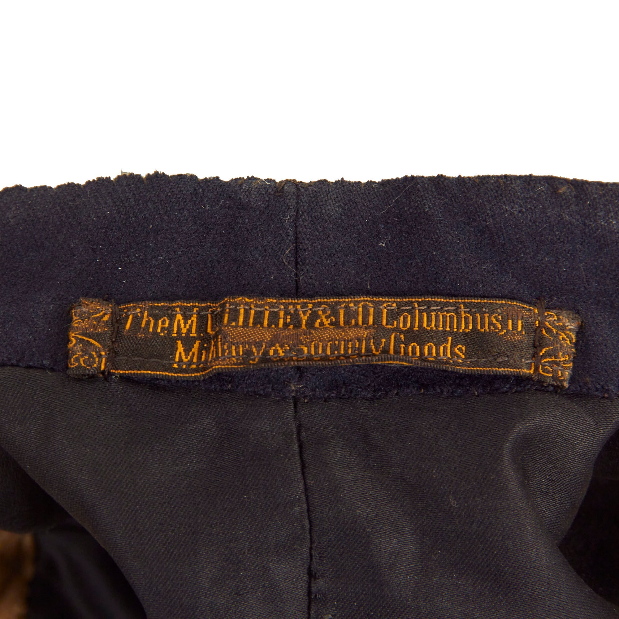 The tunic itself still retains the manufacturer label fro The M.C. LILLEY & CO MILITARY SOCIETY GOODS. M.C. Lilley & Company was another Columbus business that would benefit greatly as a manufacturer of ready-made uniforms after the war. By 1870, the company already occupied an entire four-story building on S. High Street, with a glass-fronted showroom and retail store on the first floor. This size of an operation positioned the company for tremendous growth and success in the coming "Golden Age of Fraternalism." During this period, from 1870-1910, over 20 percent of men in the United States belonged to a fraternal organization, which served various purposes such as mutual aid and insurance, political interests, social functions, and the comfort of stability and belonging in a dynamic post-war society that was rapidly industrializing. Clothing played a very important role in the ritual ceremonies for these societies, and M.C. Lilley & Co. capitalized on this influx of demand by manufacturing ritual costumes and attire. The most demanded and most commercially profitable form of military regalia, however, was the military-style uniform, which the company also produced for state militias, telegraph operators, and railway workers. In addition to the clothing for fraternal societies, the company also produced metal decorations and fasteners to embellish the garments, such as buttons, buckles, studs, and grommets, along with custom-designed suitcases to hold and store elaborate and odd-shaped artifacts, like feathered hats, shoulder epaulets, capes, and gauntlets.