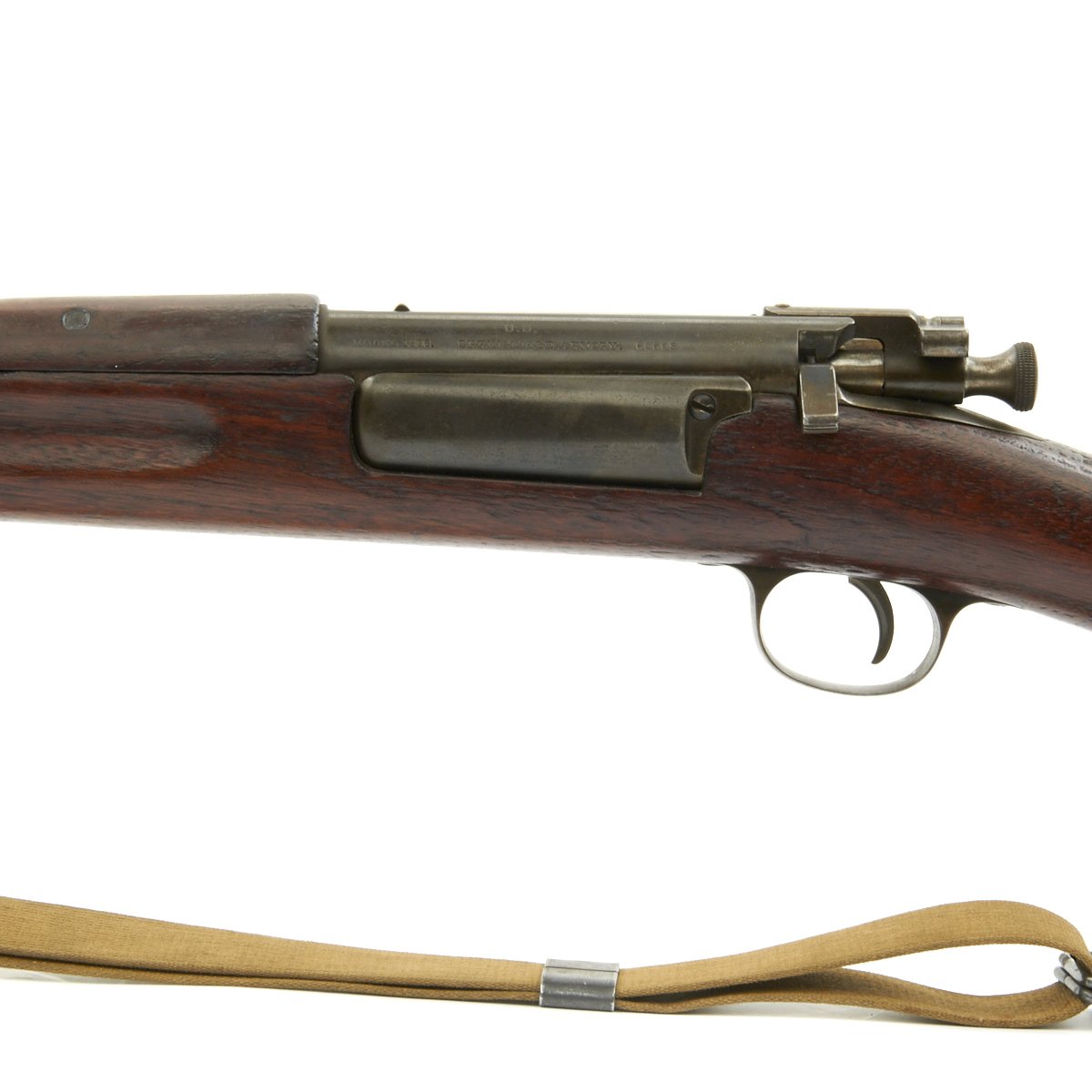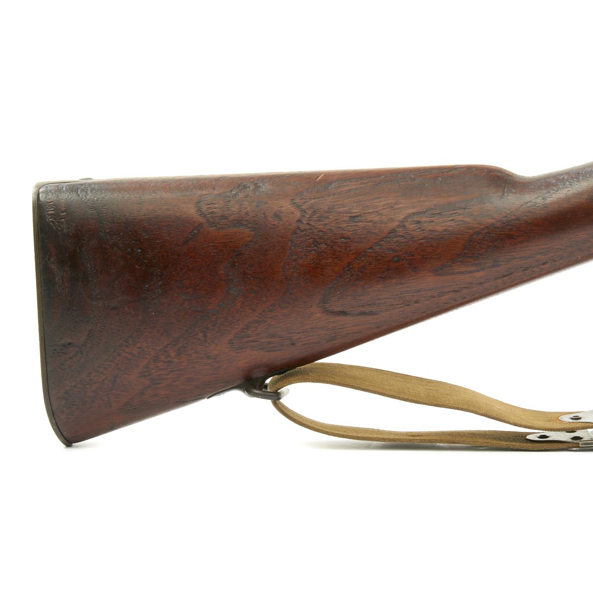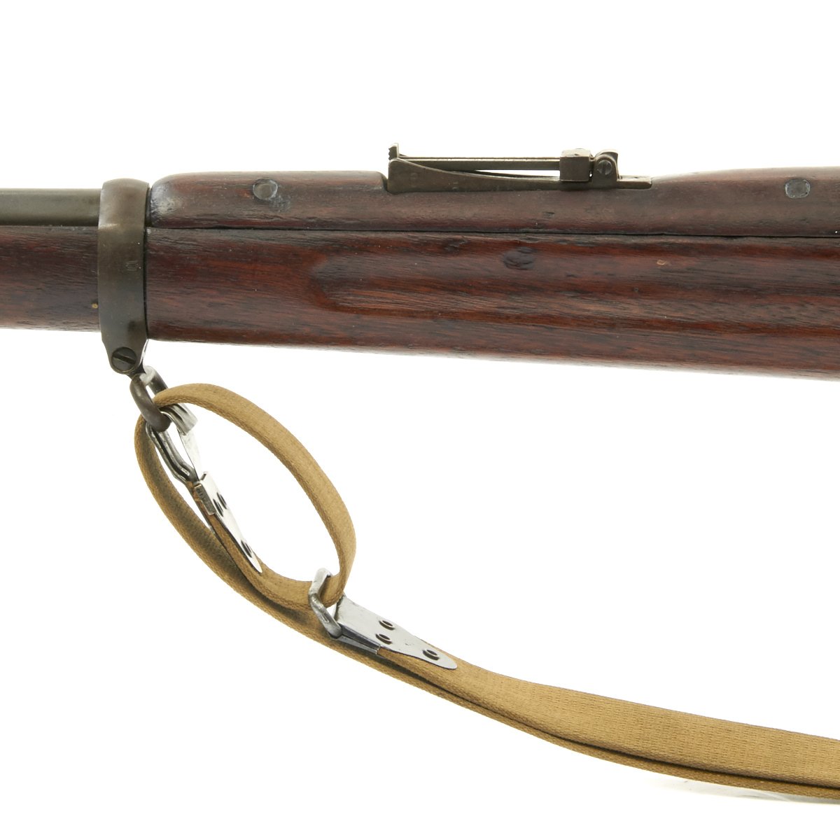 The included Model 1892 bayonet is in good condition, with the expected wear from age and use. It is dated 1902 on the ricasso and marked U.S. on the reverse. The Kerr Extension sling is most likely the model for the Springfield, and is in very good condition, with solid canvas and all fittings present and functional. We've only seen a few of these slings before, and it would most likely indicate that this rifle was in service domestically, either for training or for police use, as obsolete weapons were often dispersed to law enforcement.