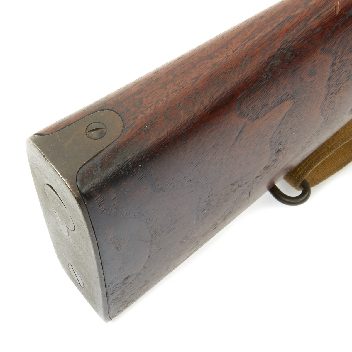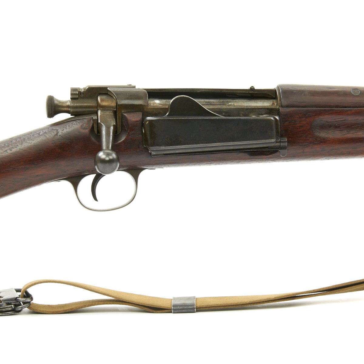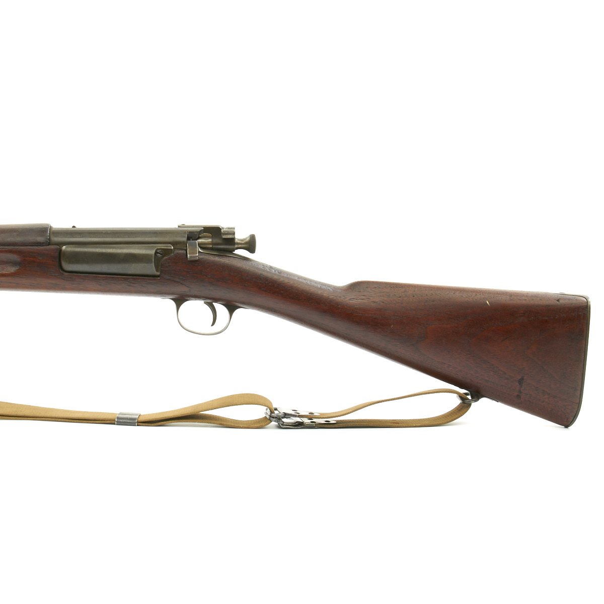 The included Model 1892 bayonet is in good condition, with the expected wear from age and use. It is dated 1902 on the ricasso and marked U.S. on the reverse. The Kerr Extension sling is most likely the model for the Springfield, and is in very good condition, with solid canvas and all fittings present and functional. We've only seen a few of these slings before, and it would most likely indicate that this rifle was in service domestically, either for training or for police use, as obsolete weapons were often dispersed to law enforcement.