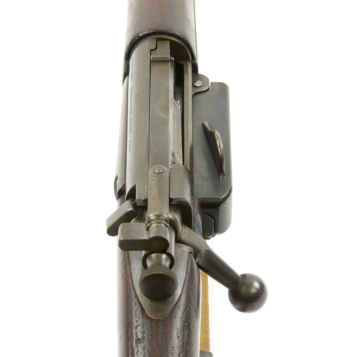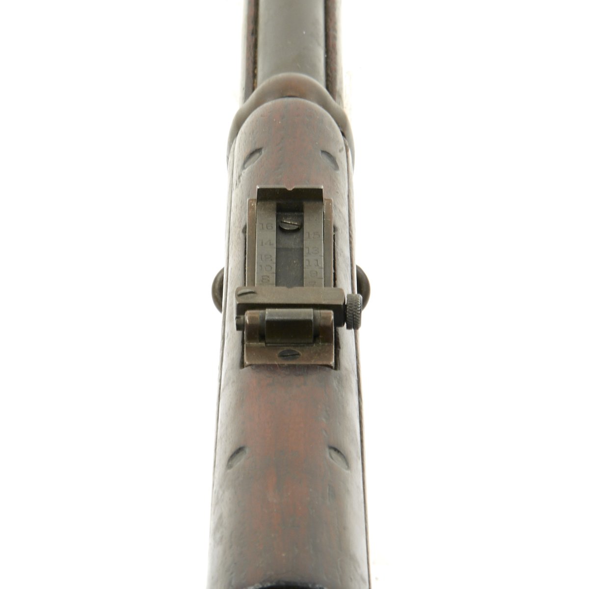 Condition is very good, with a lot of the original metal finish present, with the usual wear around the magazine door and bolt. The stock and handguard are in good condition, and have a nice matching deep red walnut color, though the stock has definitely been sanded a bit, which has faded most markings. The stock shows handling marks and light impressions in some areas. Both sling swivels and the stacking swivel are present and in very good condition. Action works smoothly and all components have a nice finish, with a bit of oxidation on the bright areas. Bore is bright, with clear lands and grooves, with just a few areas of oxidation.