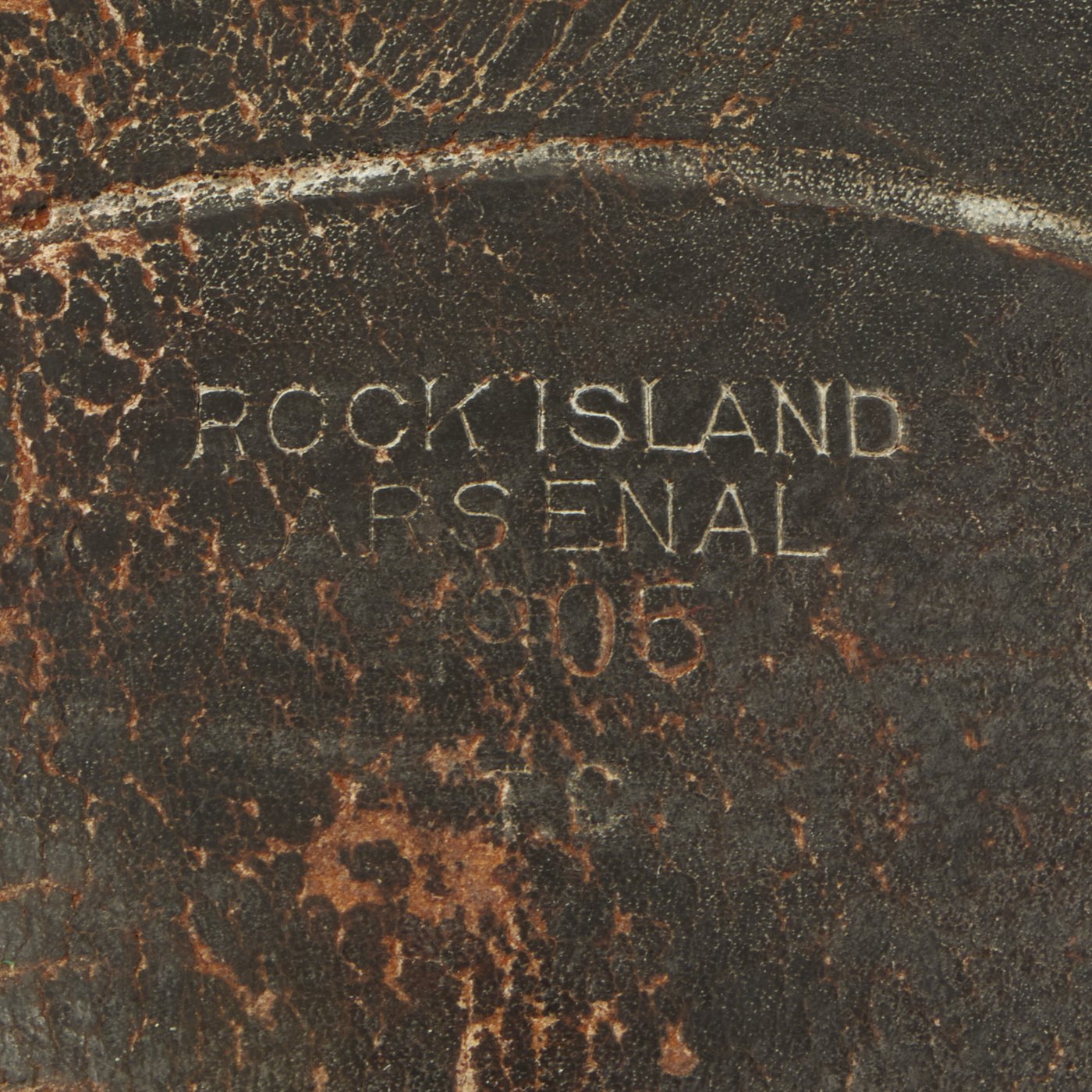 Rock Island Arsenal in Illinois has been of the major producers of U.S. Arms and Ordnance from after the Civil War until present day. As the name suggests, it is located on Rock Island, on the border of Illinois in the Mississippi river. "T.C." are the initials of the inspector who examined it. Condition is good, though the securing straps are missing, and the stitching is failing on a good portion of the seam.